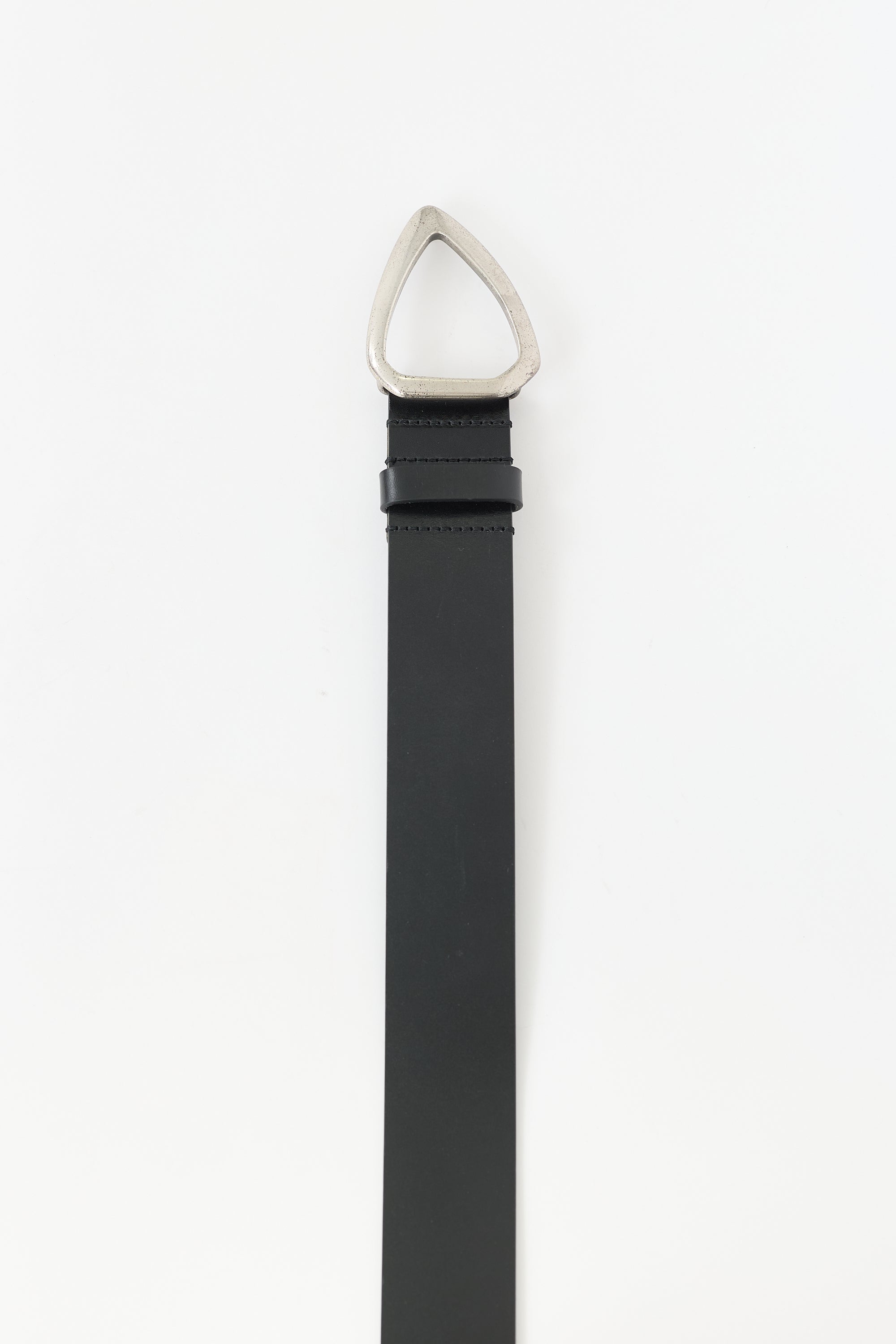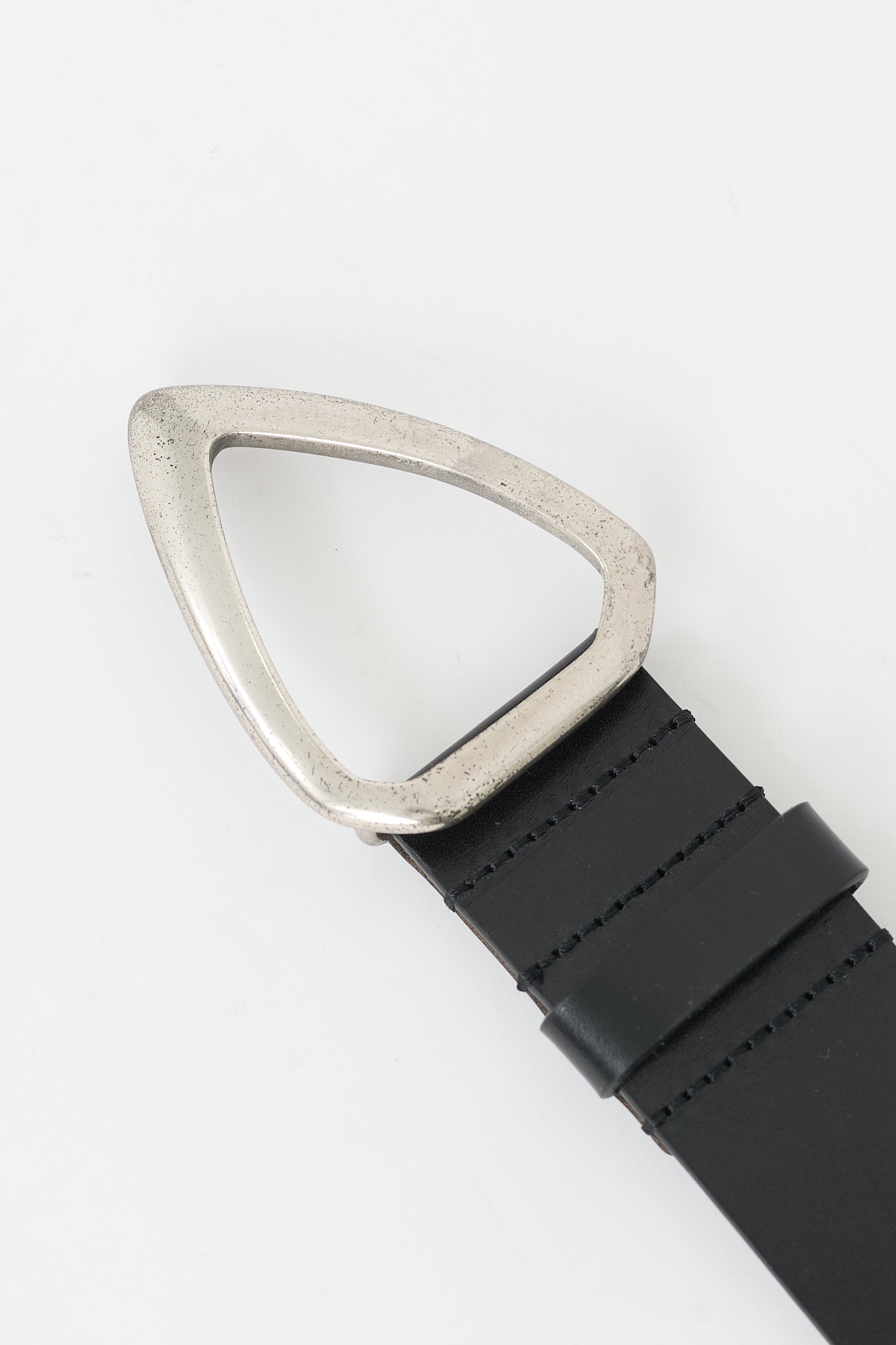 Pre-owned Isabel Marant black leather Idiani belt featuring silver tone hardware, sculptural buckle, push pin closure, and five hole adjustment.