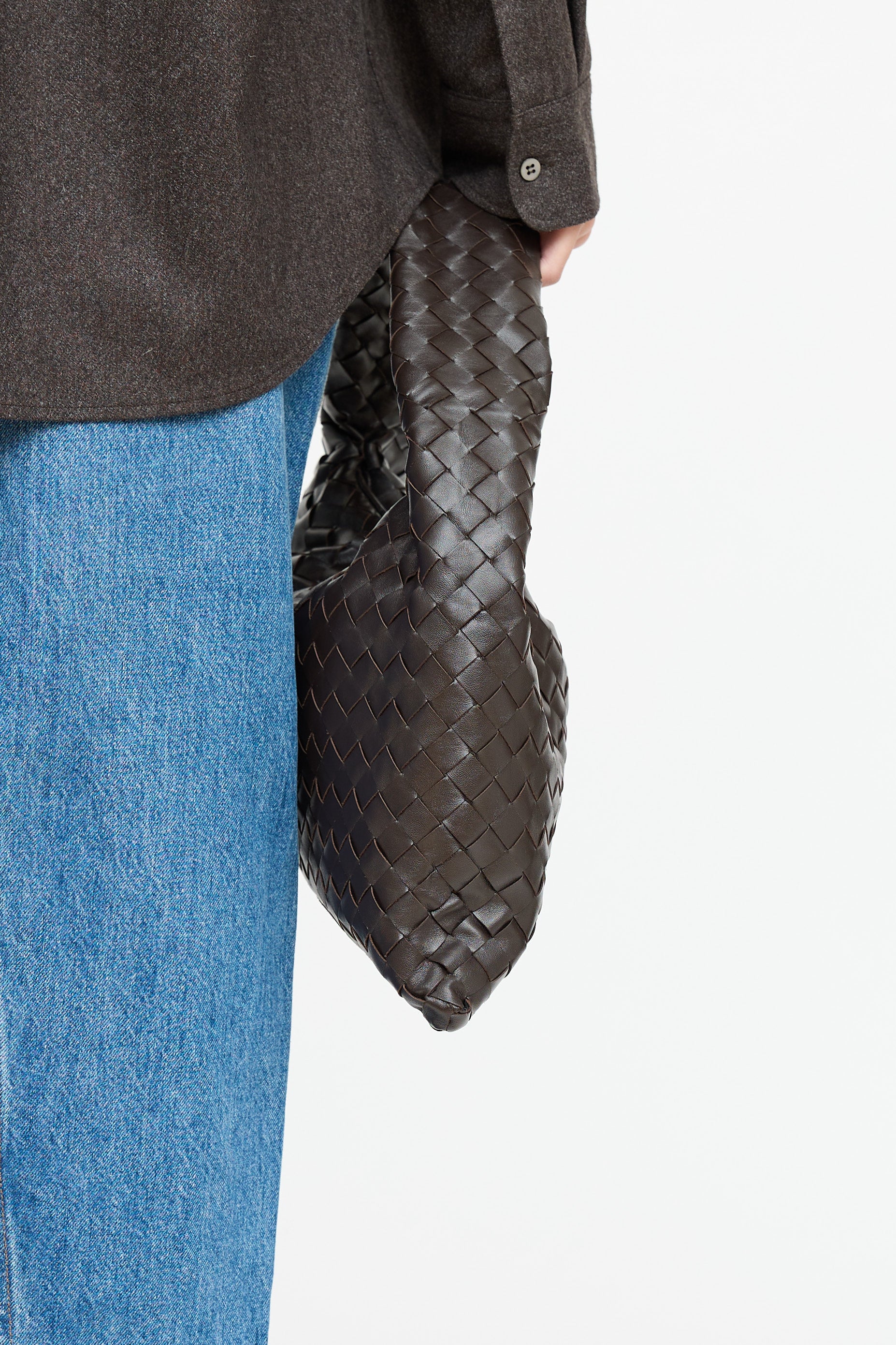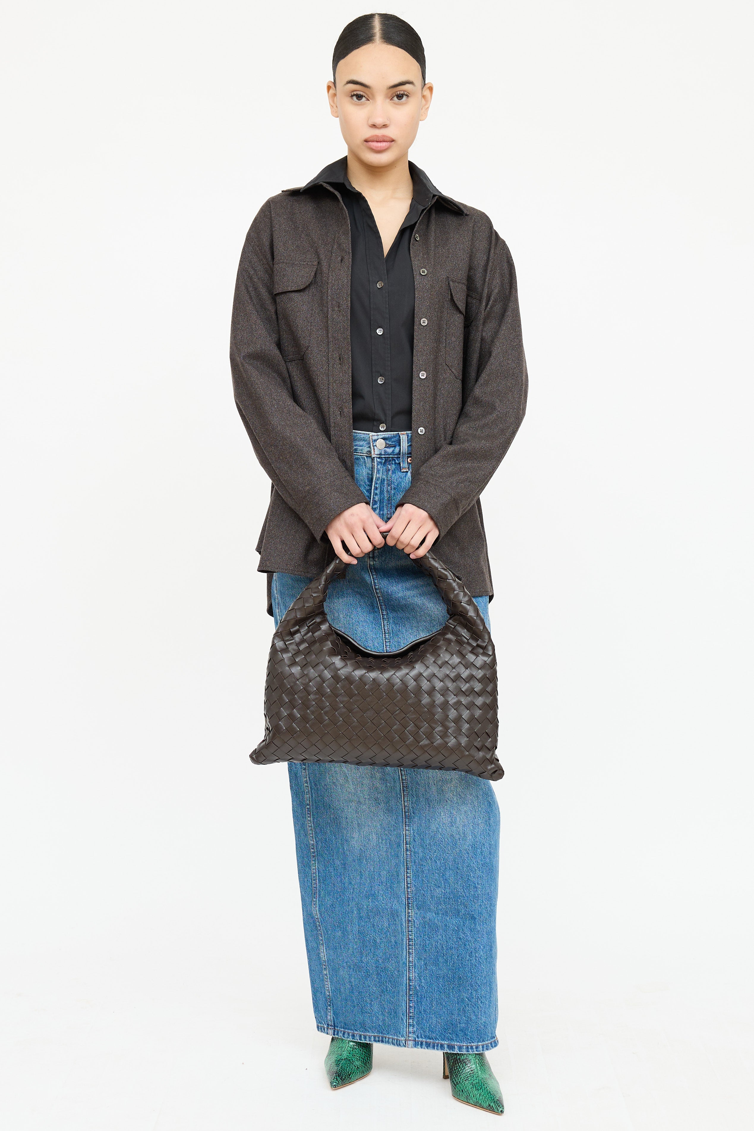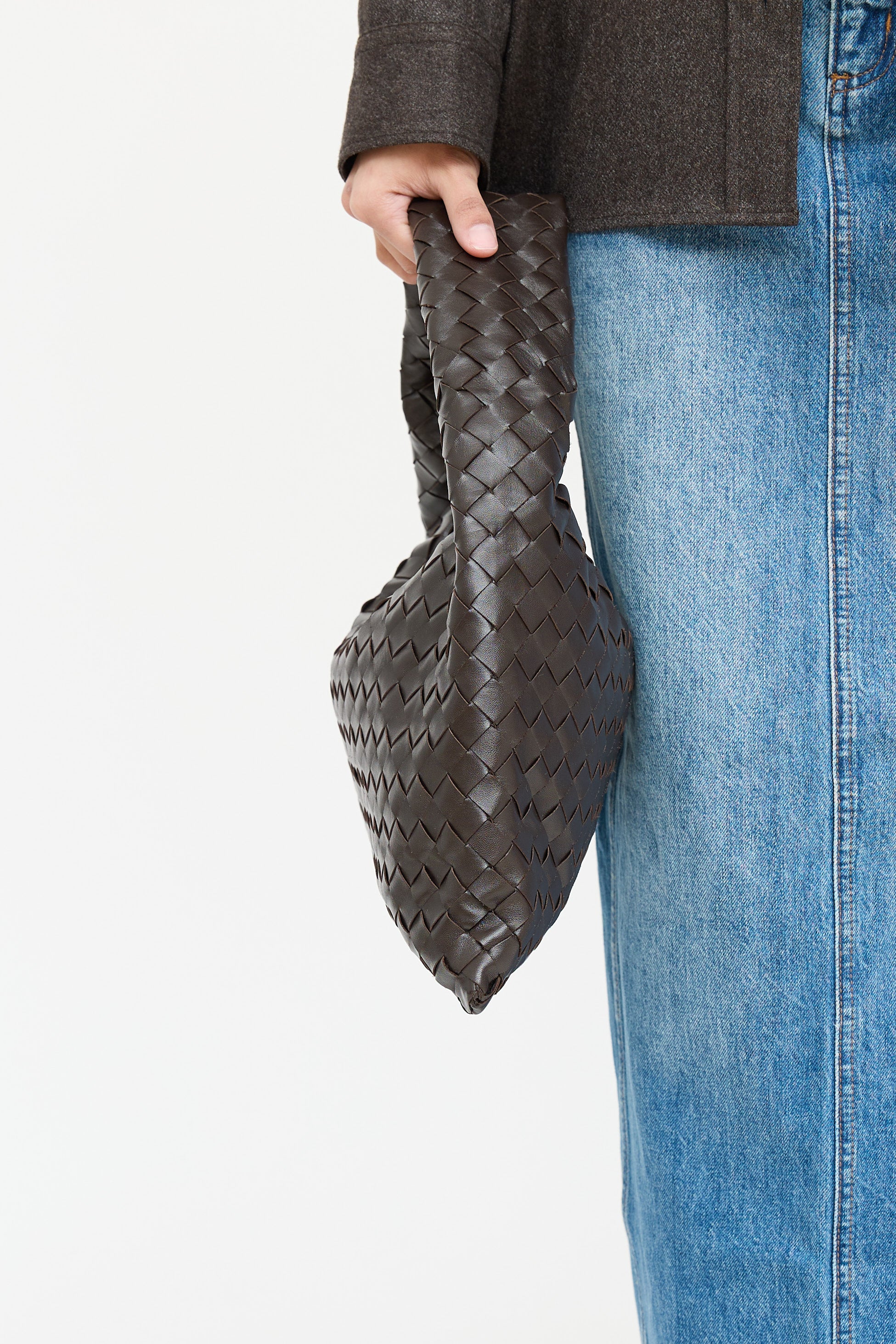 Pre-owned Bottega Veneta Hop shoulder bag in brown Fondant colour, Intrecciato craftsmanship in calf leather, singular top handle and magnetic closure with singular zip pocket at interior.