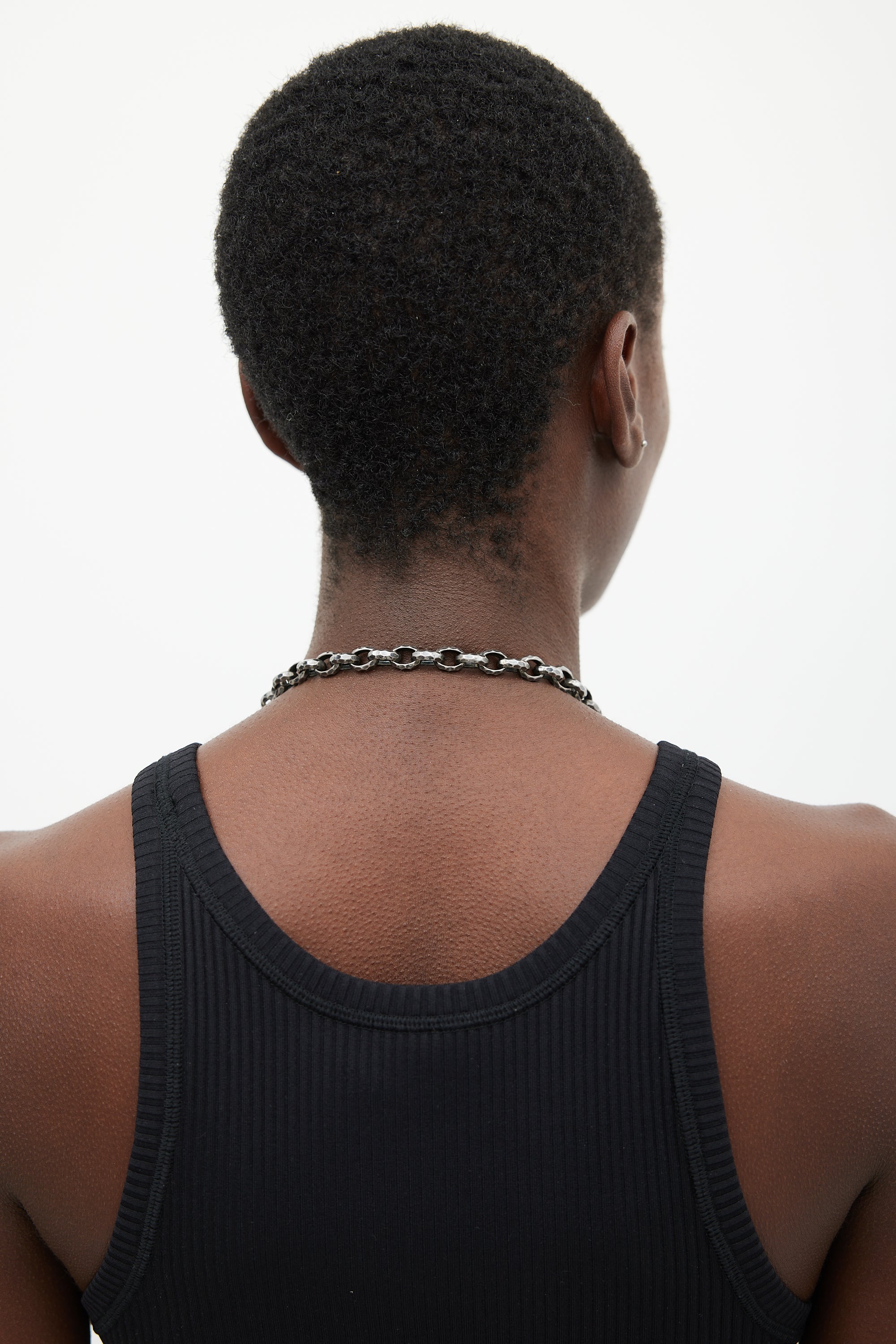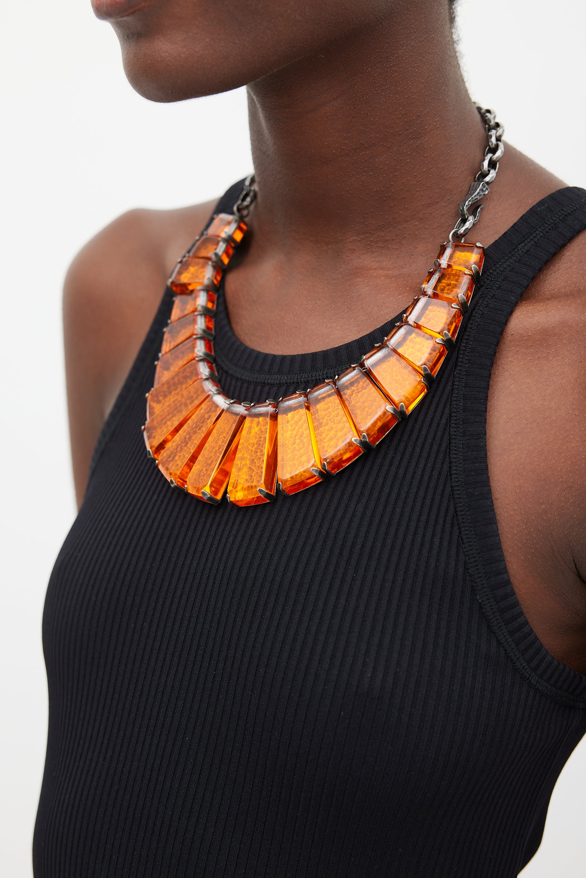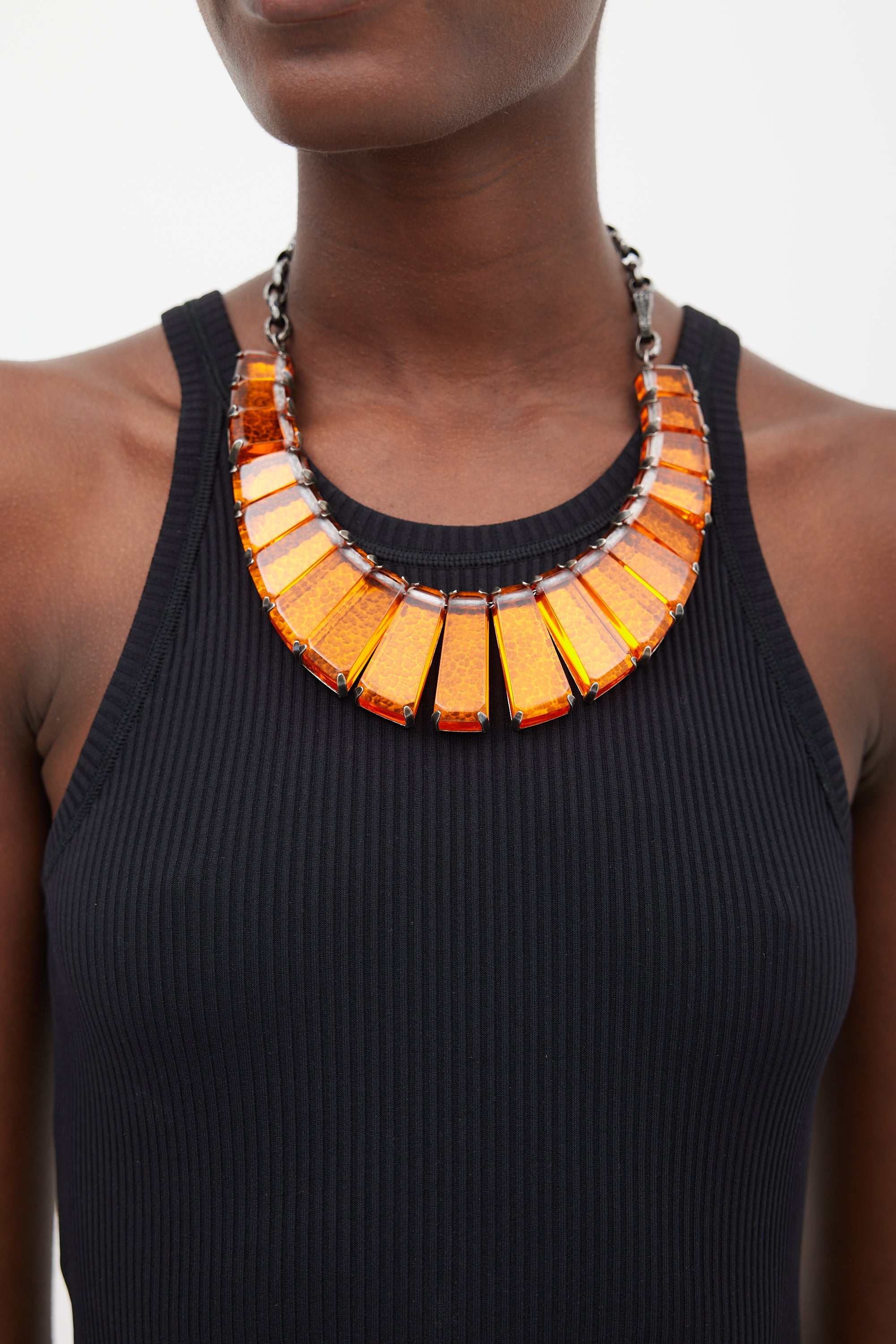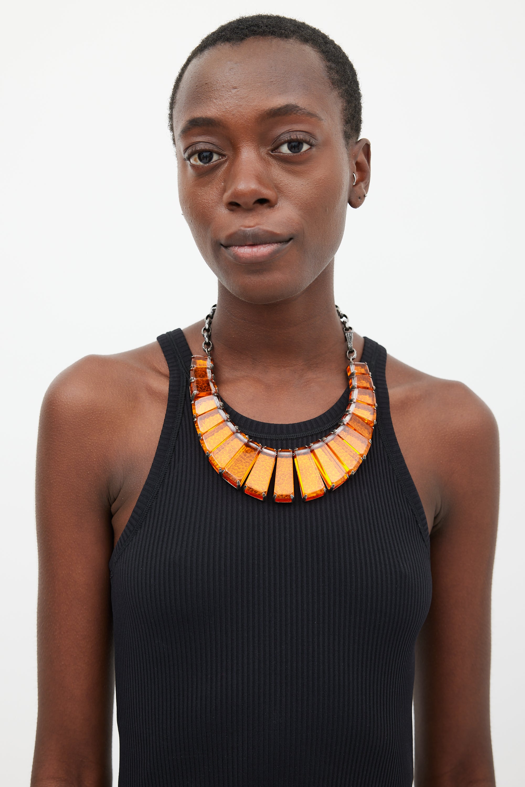 Pre-owned Marni sterling silver necklace featuring rectangular orange acrylic jewel detailing, chain link, "925" stamps at interior, and hook closure.