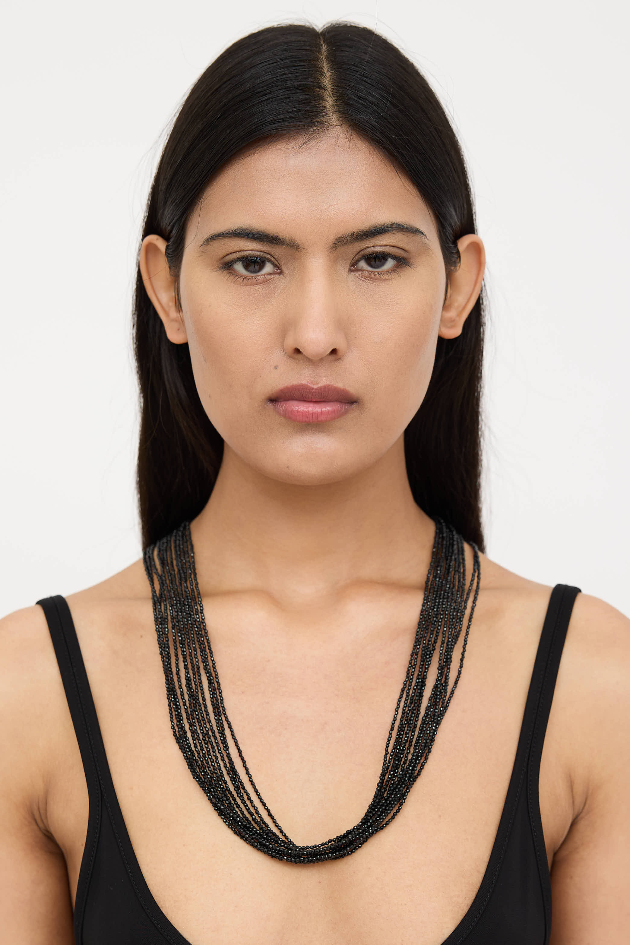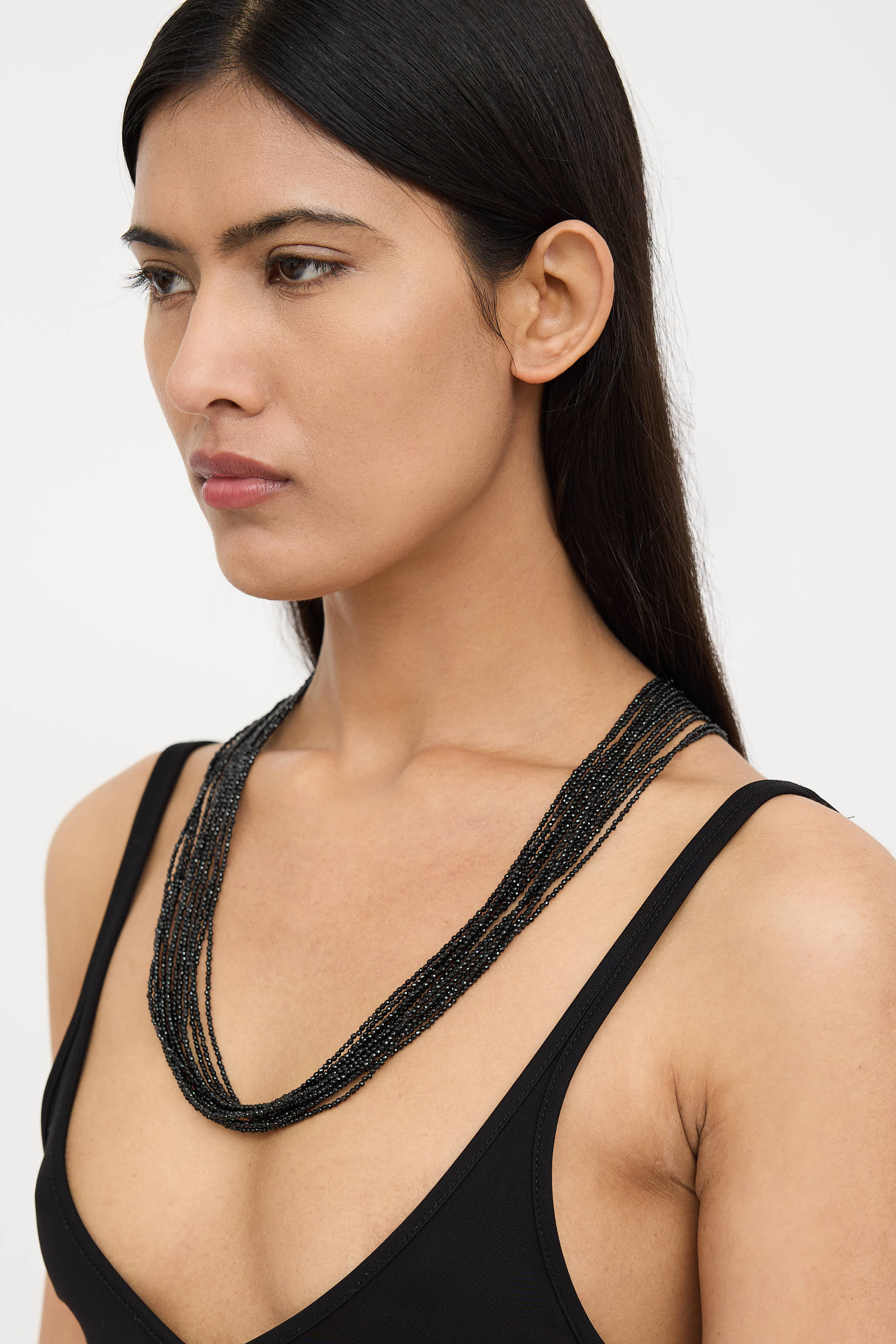 Pre-owned Brunello Cucinelli black beaded necklace featuring layered strands, wrap styling, and toggle closure.