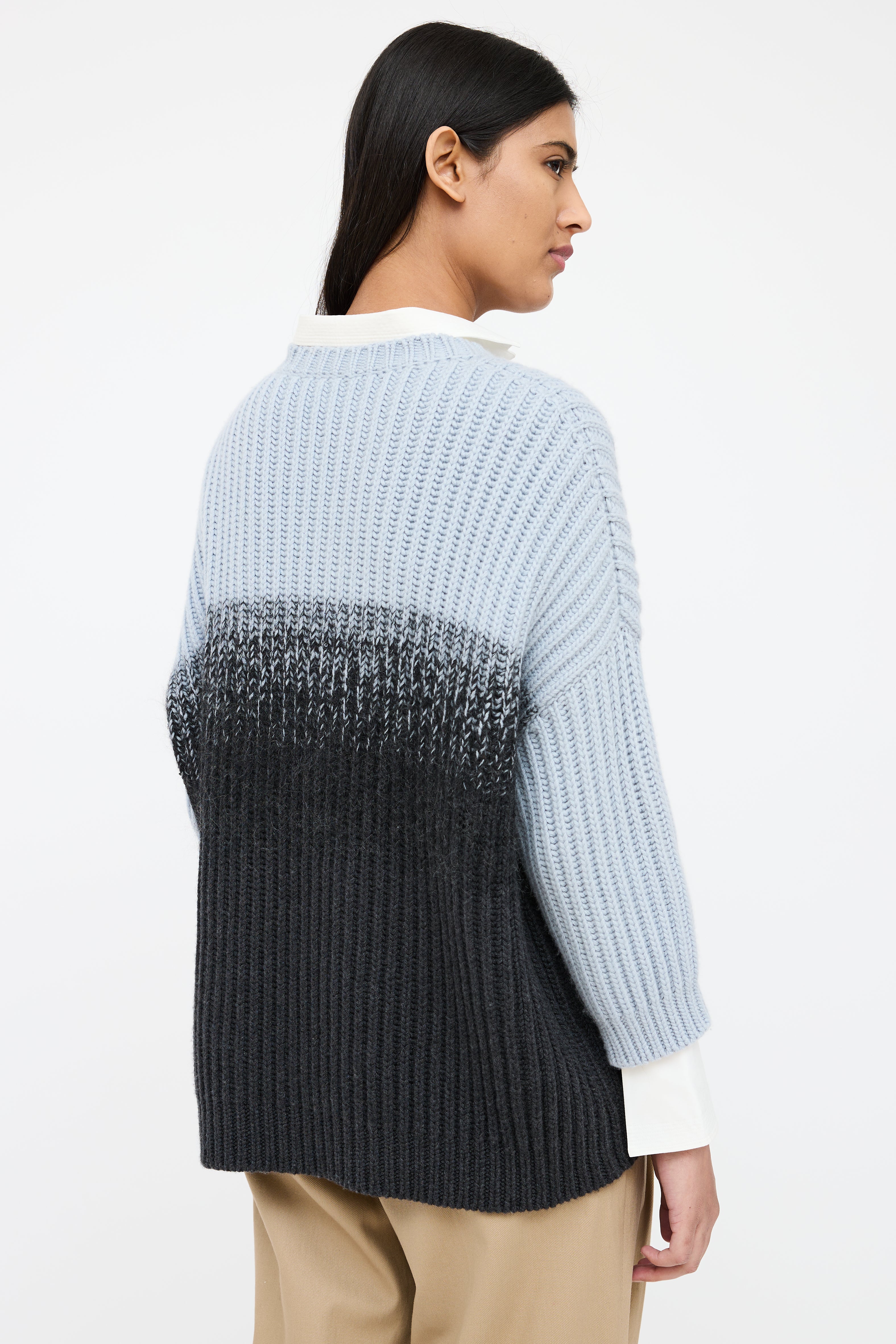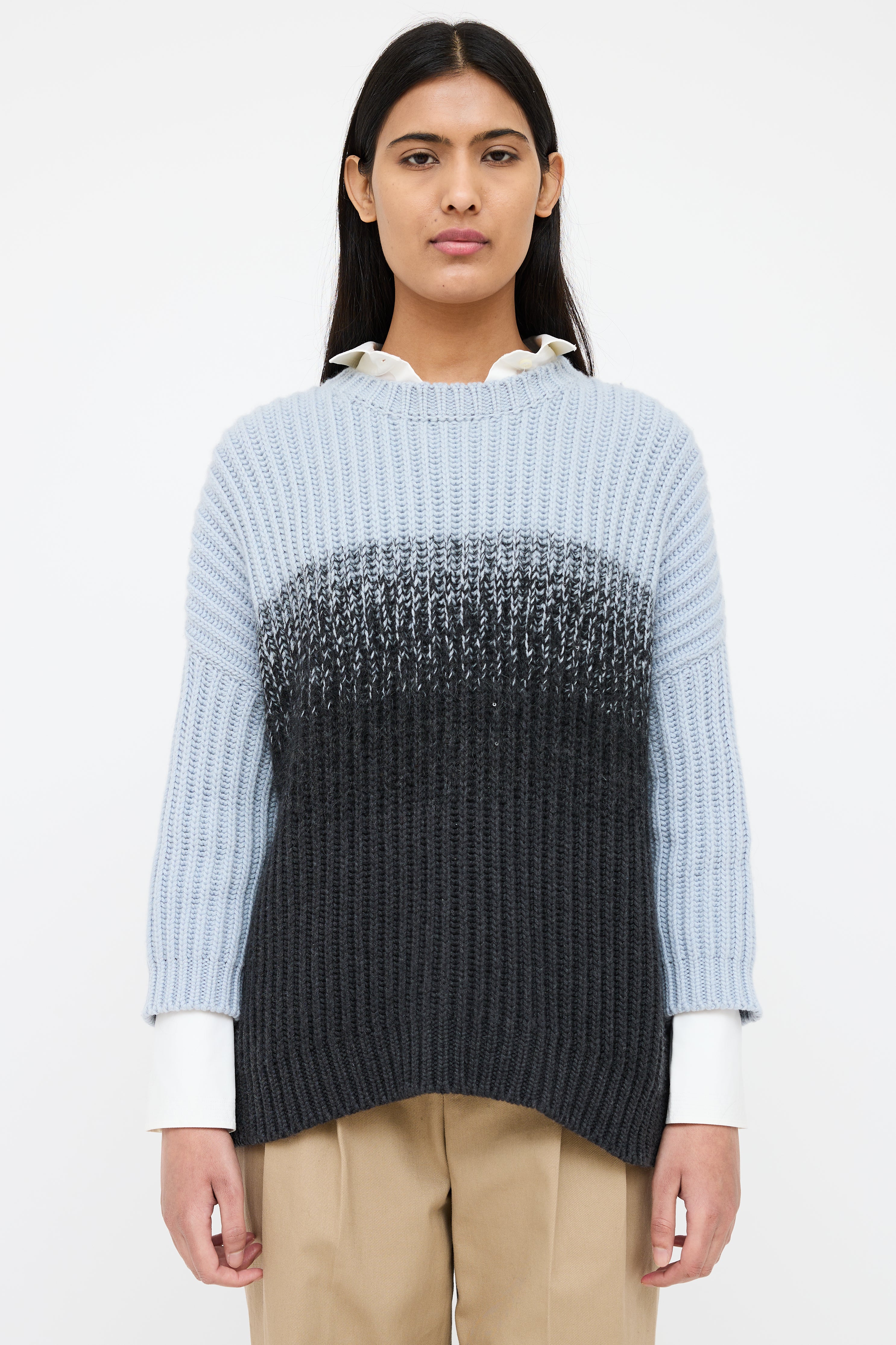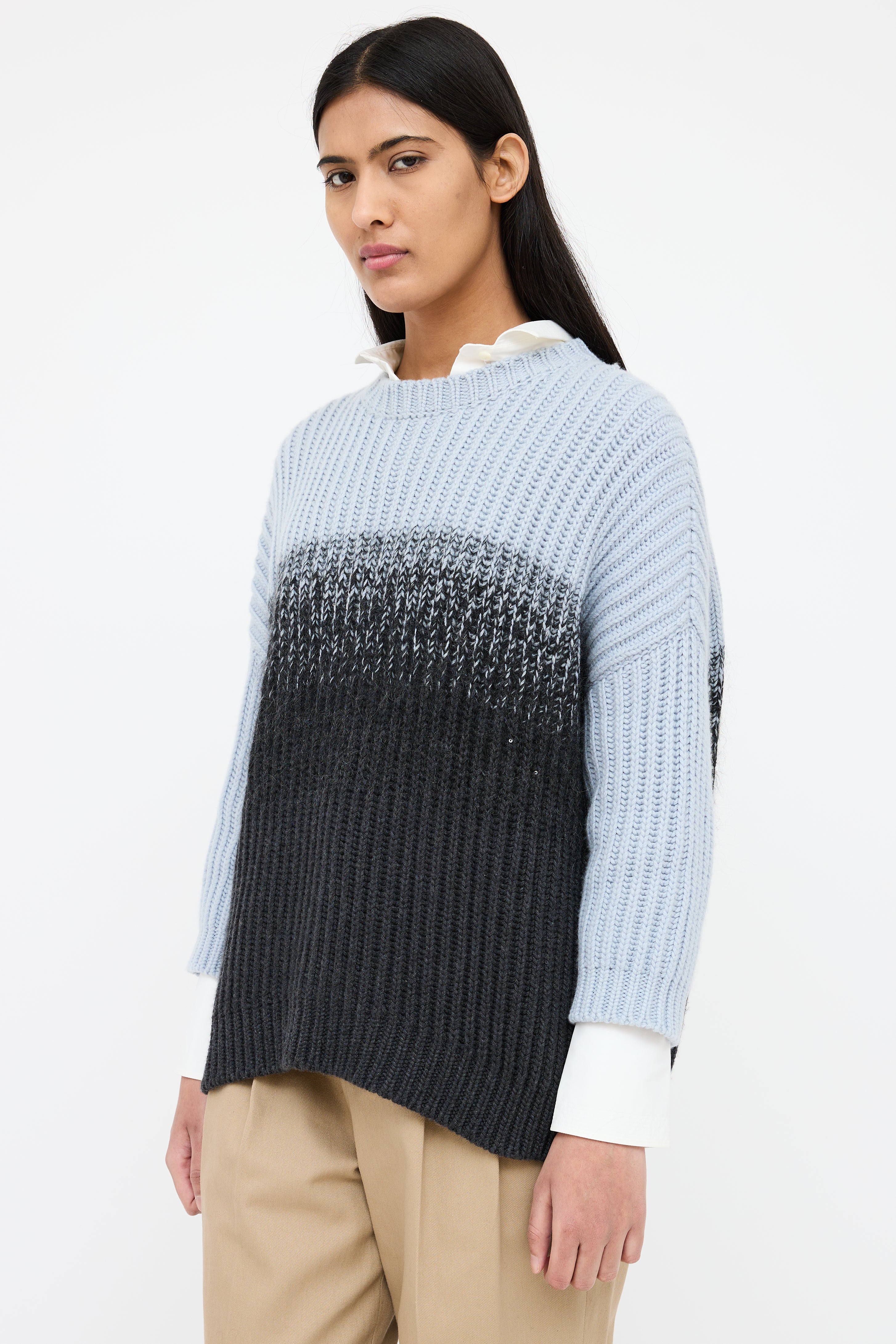 Pre-owned Brunello Cucinelli blue and black cashmere sweater featuring round neck, 3/4 length sleeve and gradiant colouring.
