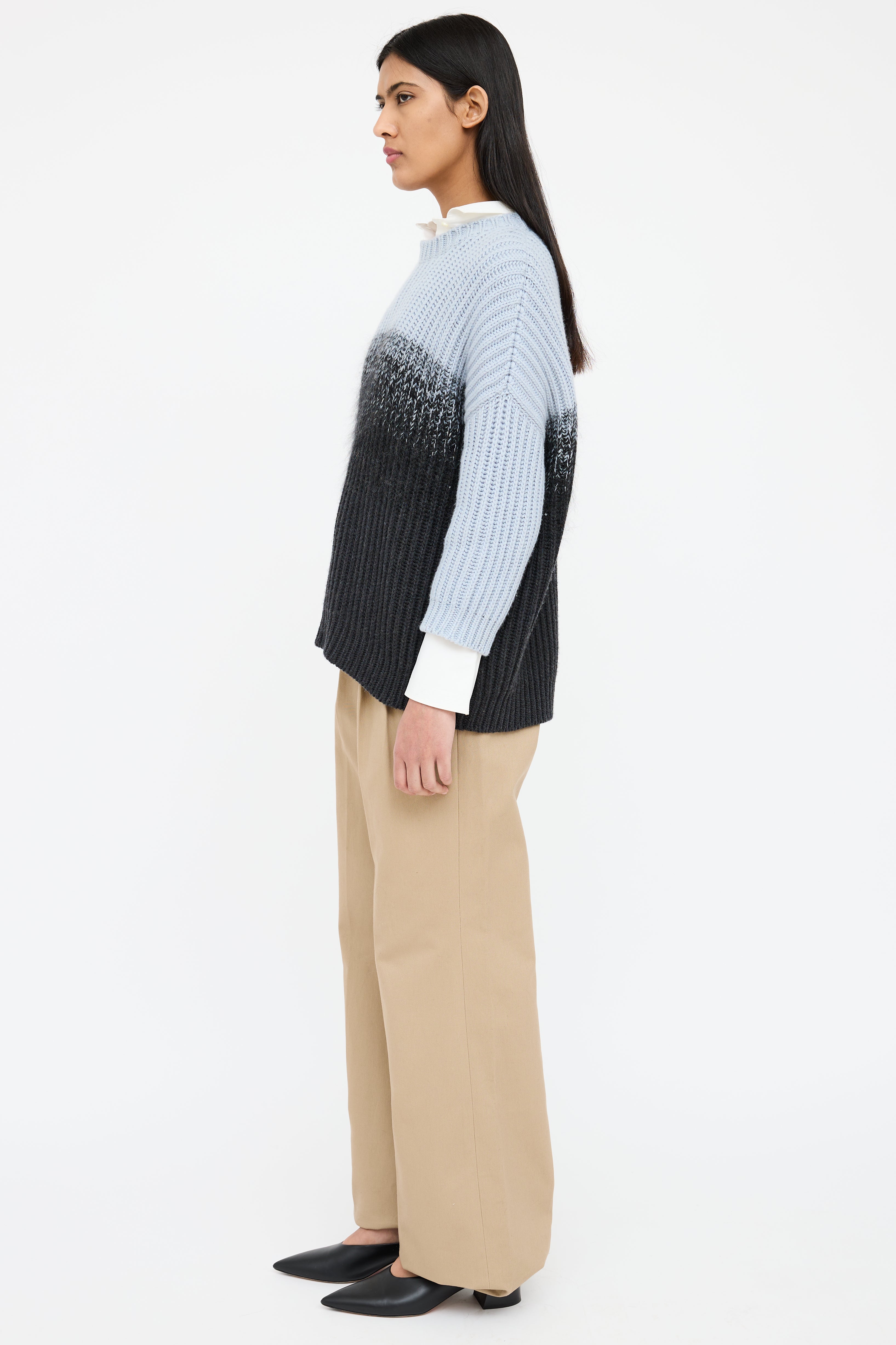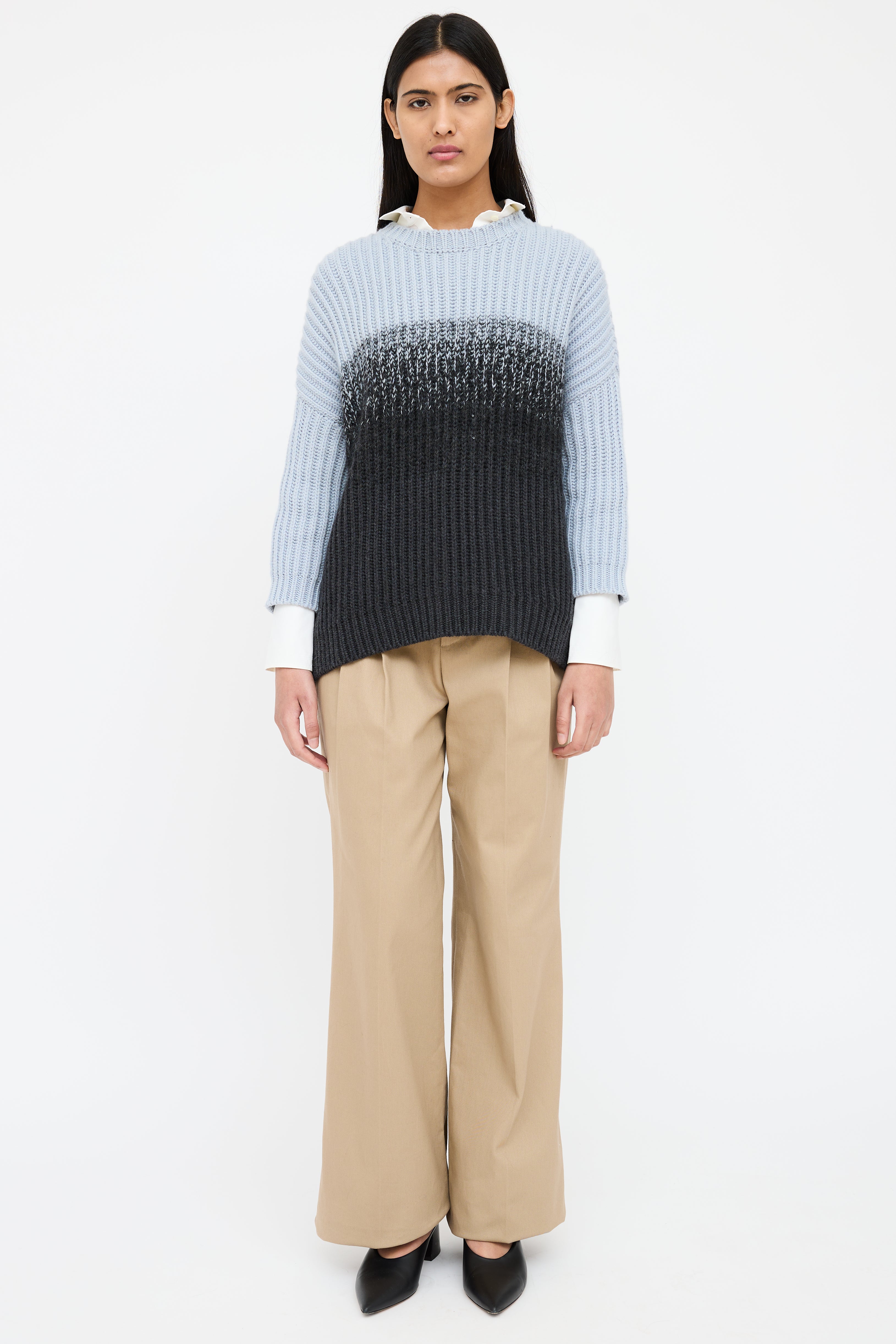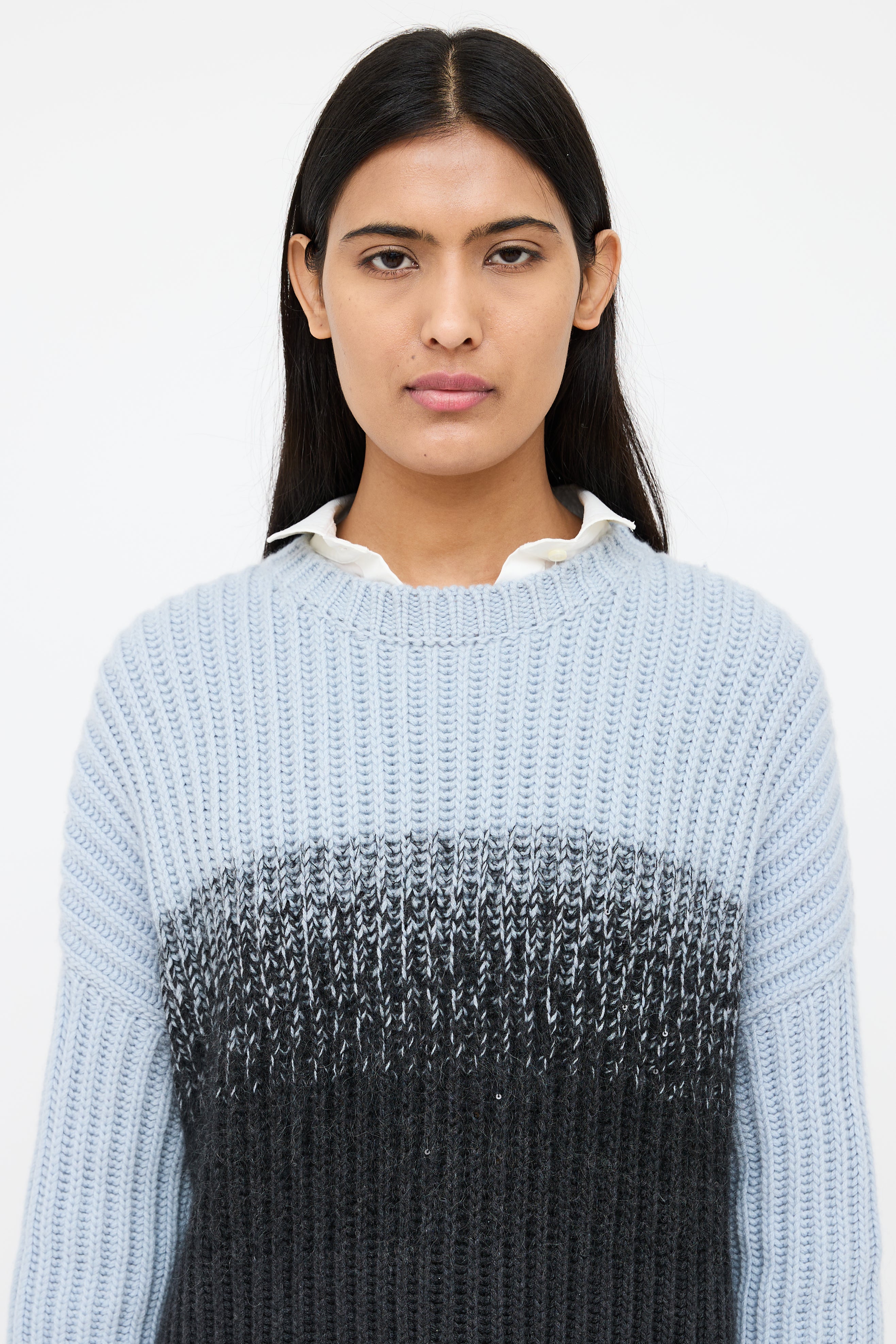 Pre-owned Brunello Cucinelli blue and black cashmere sweater featuring round neck, 3/4 length sleeve and gradiant colouring.