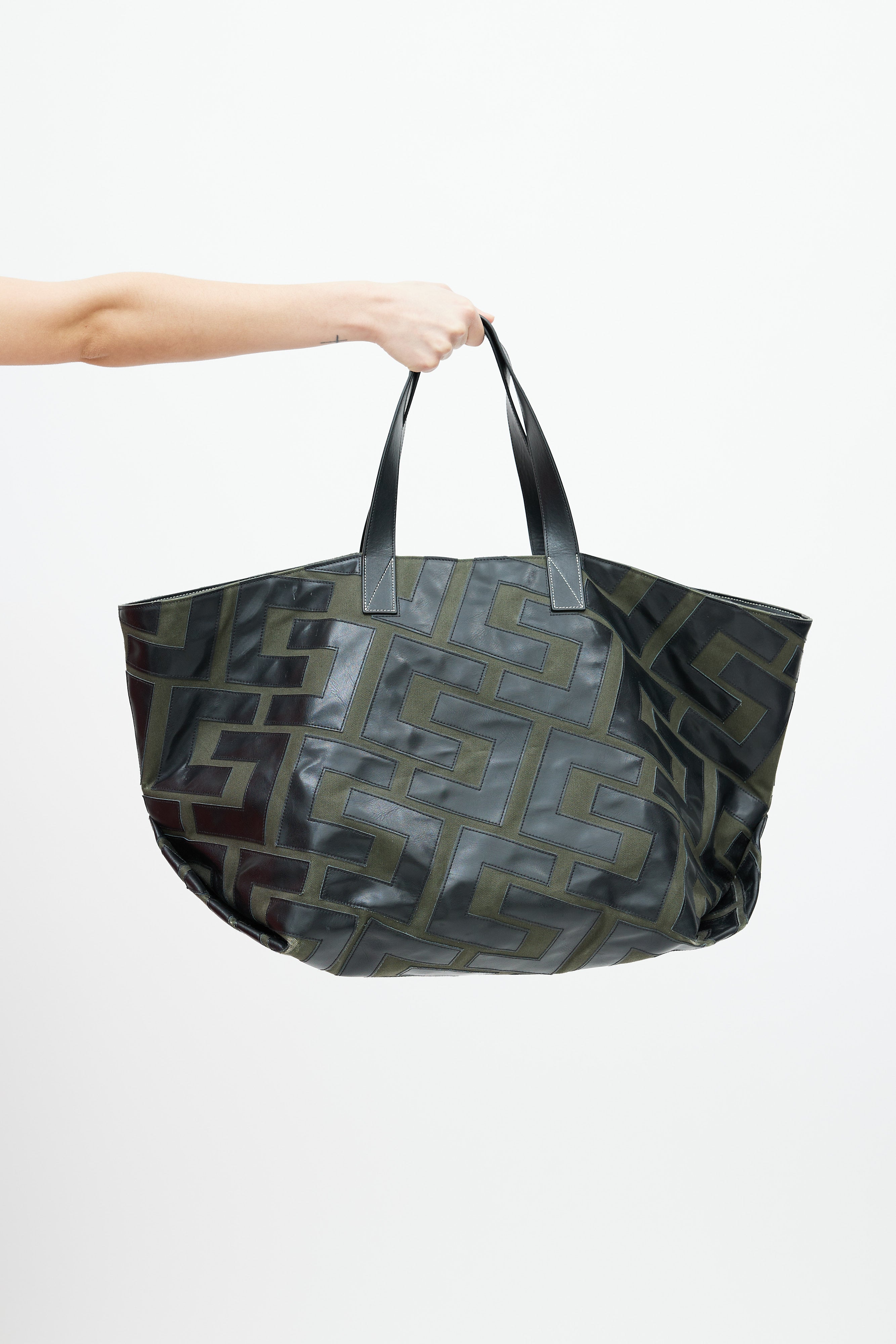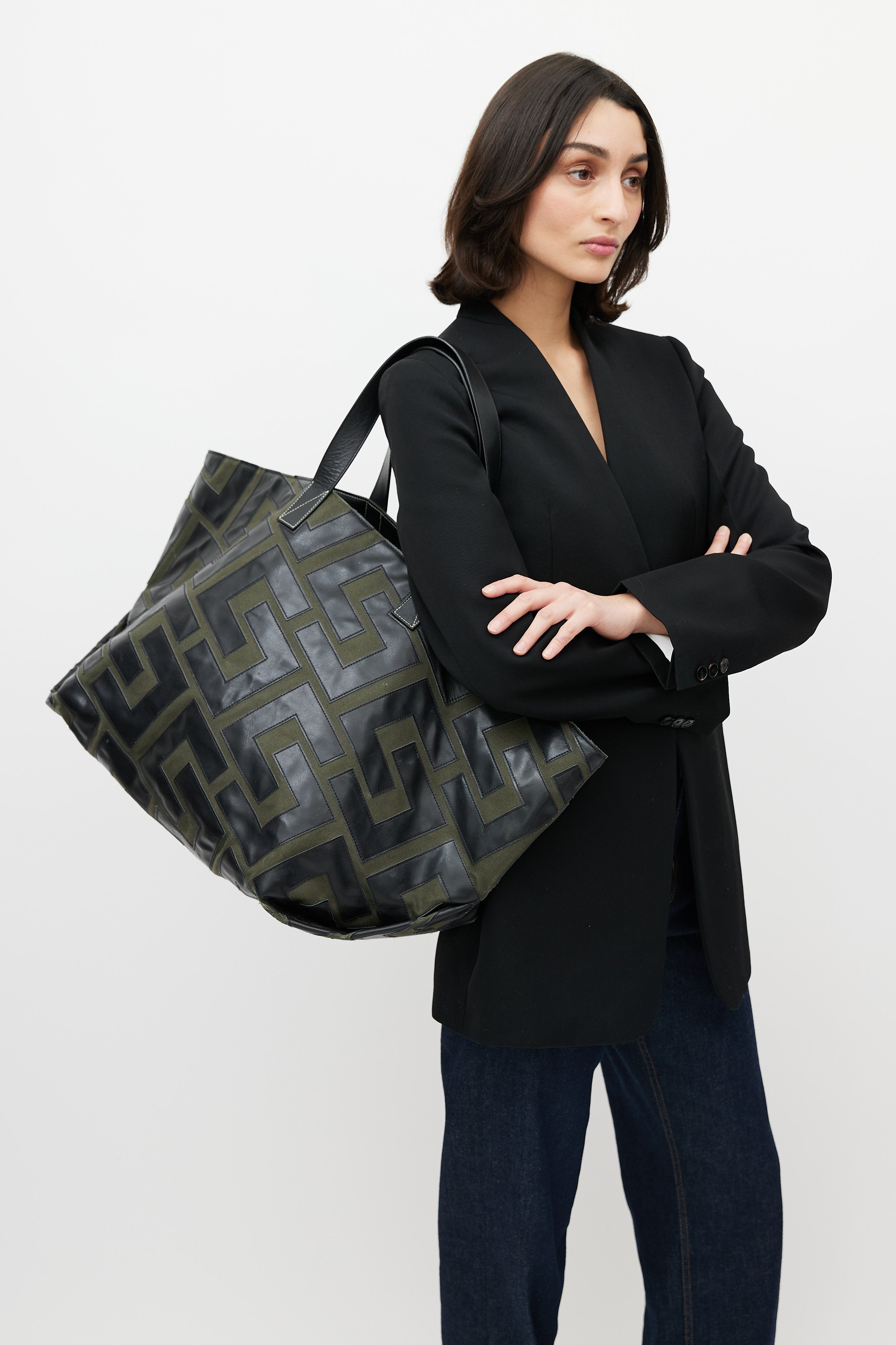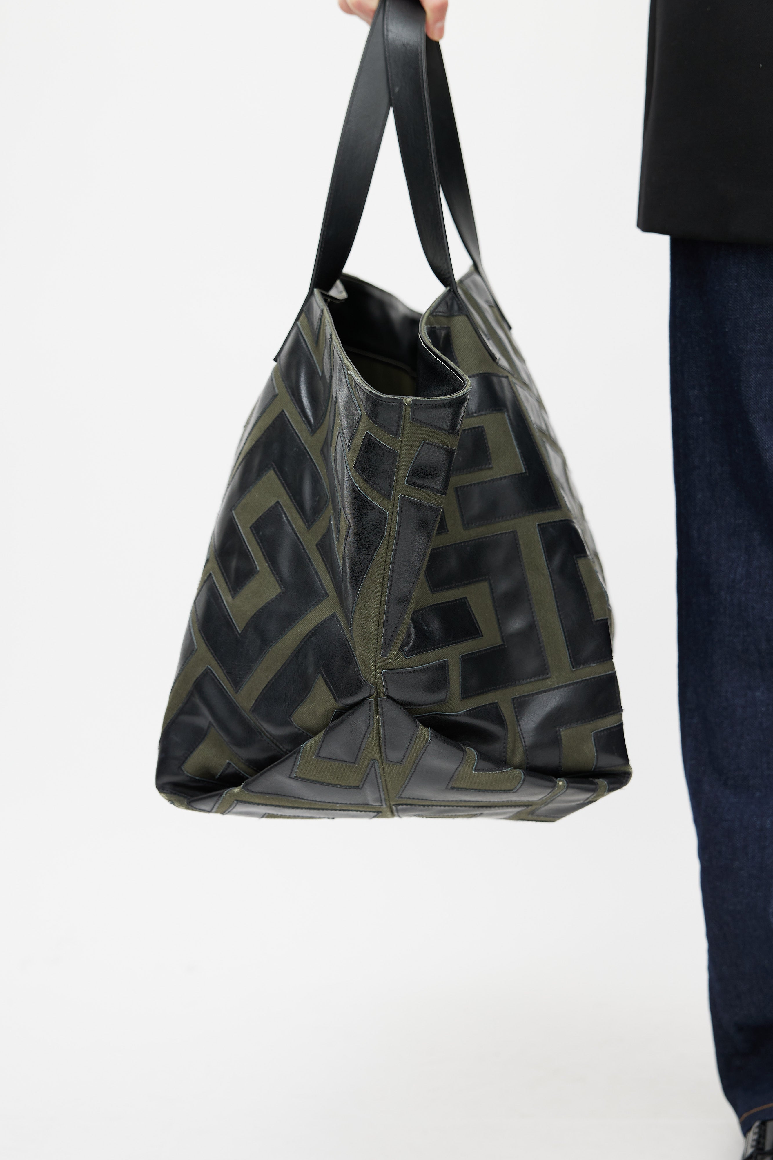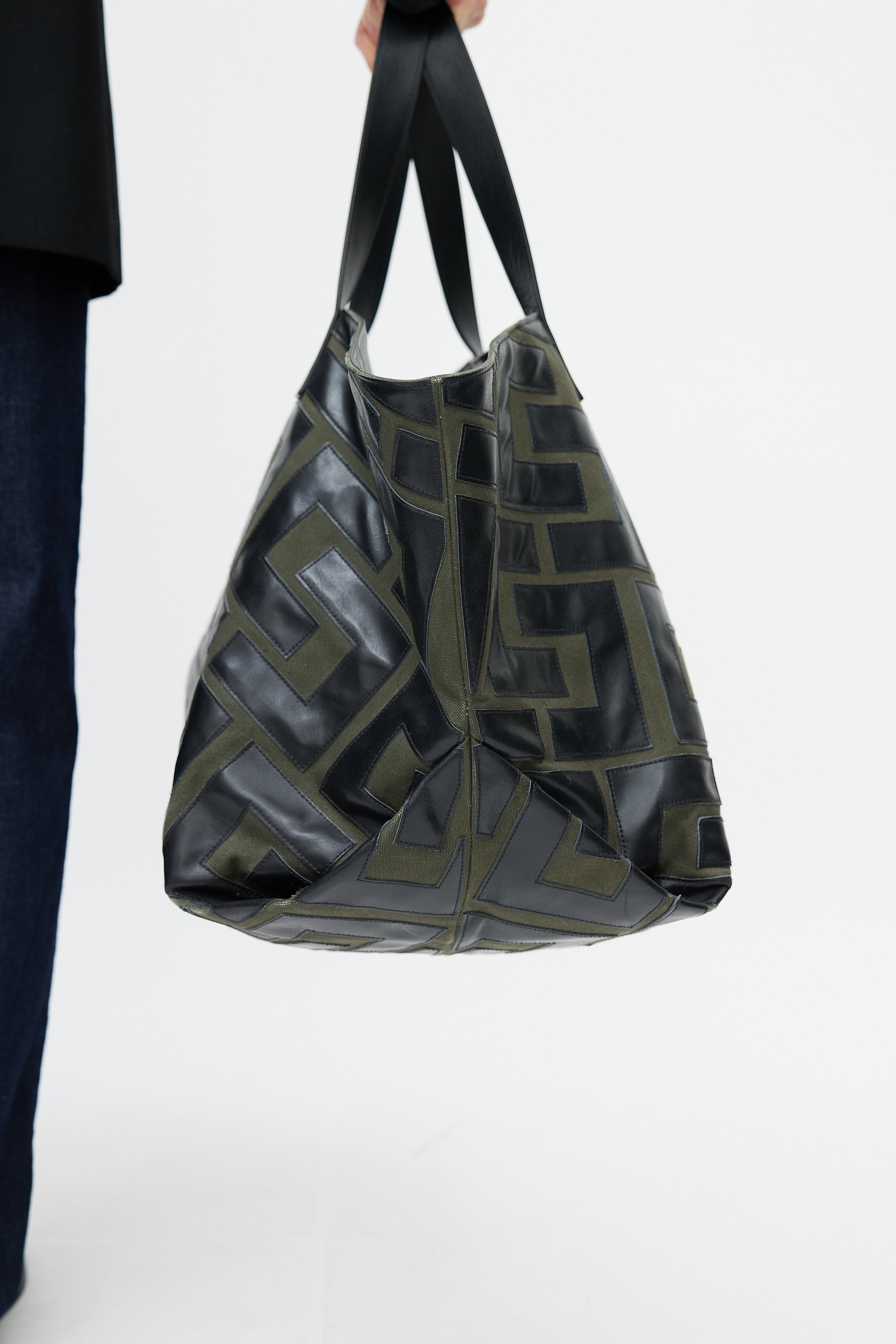 2018 Green & Black Logo Patchwork Medium Tote Bag