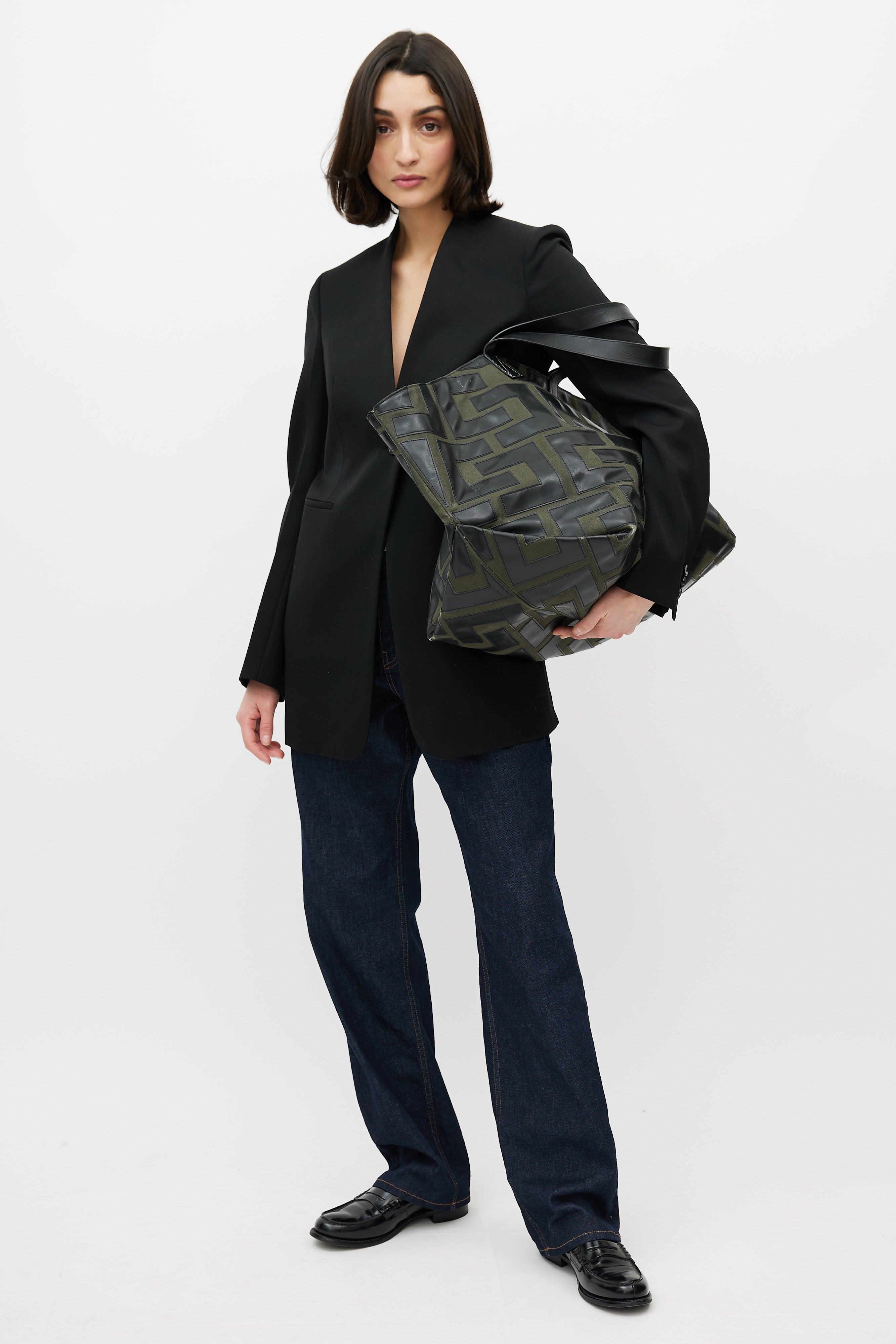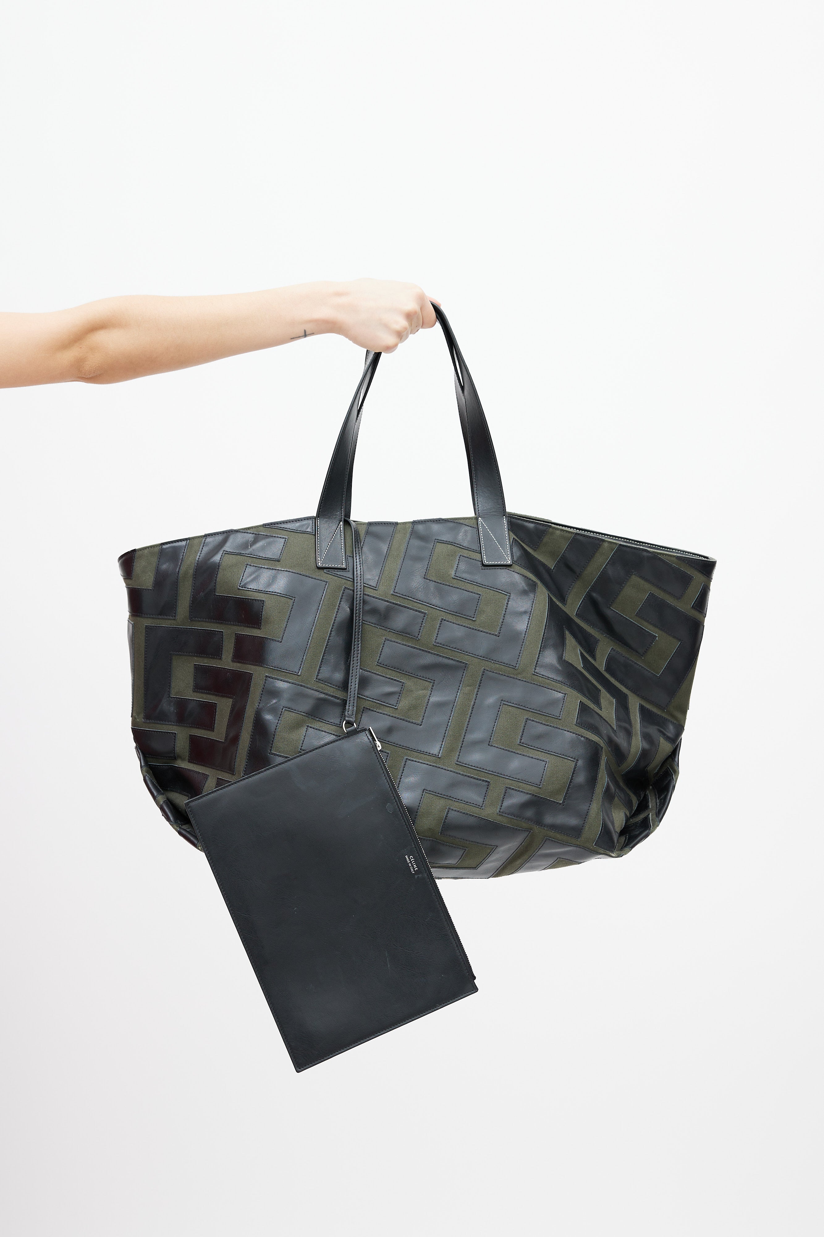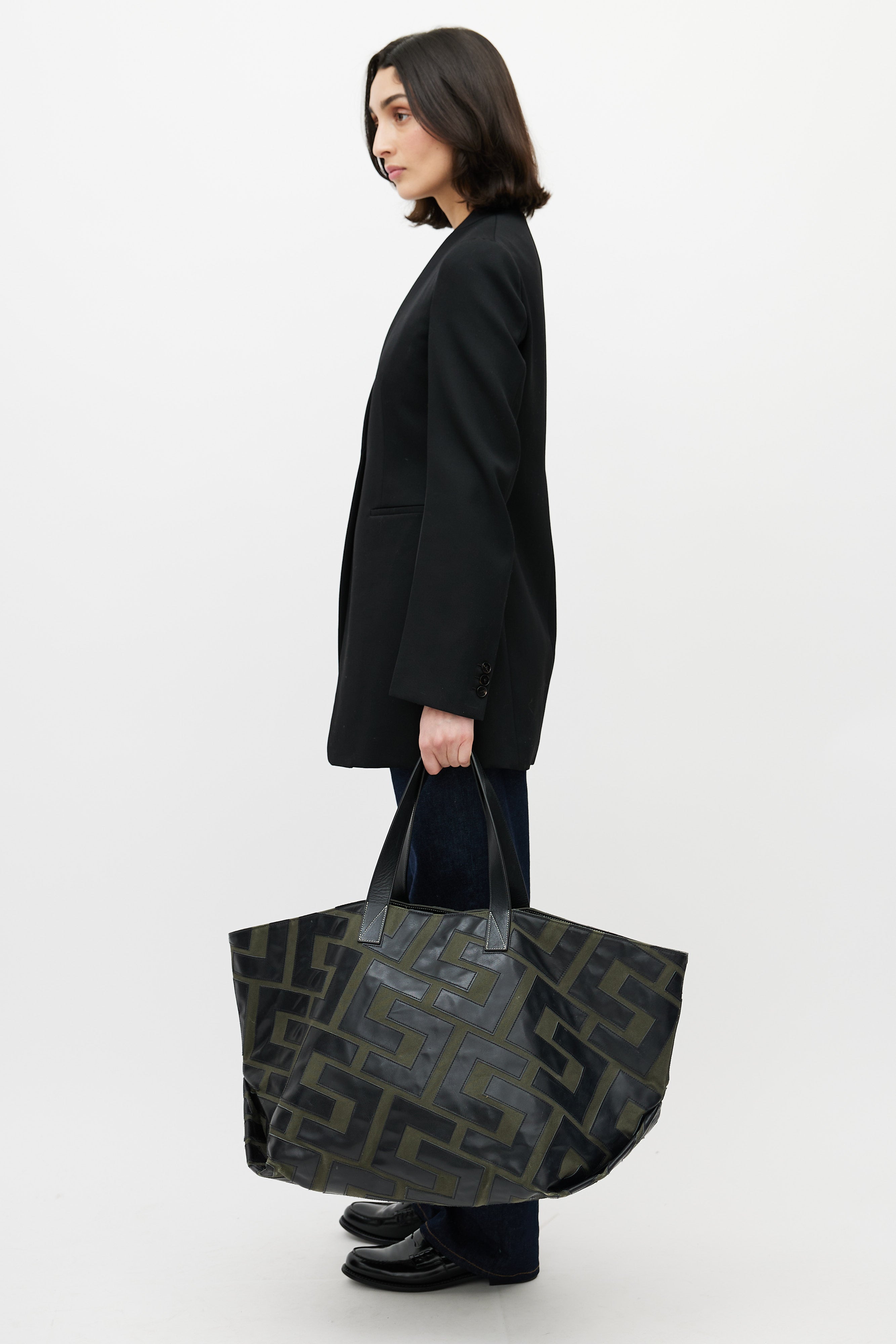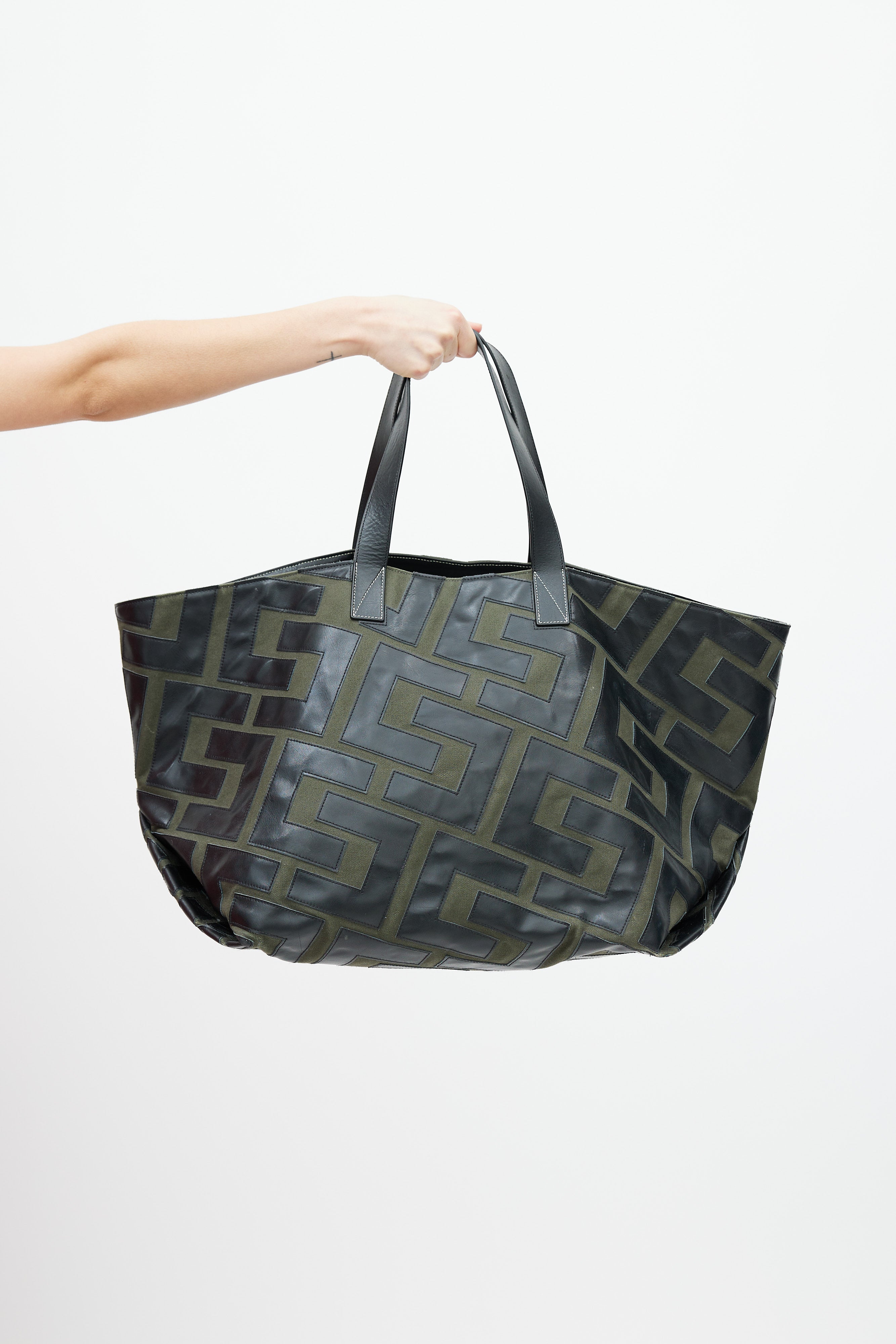 2018 Green & Black Logo Patchwork Medium Tote Bag