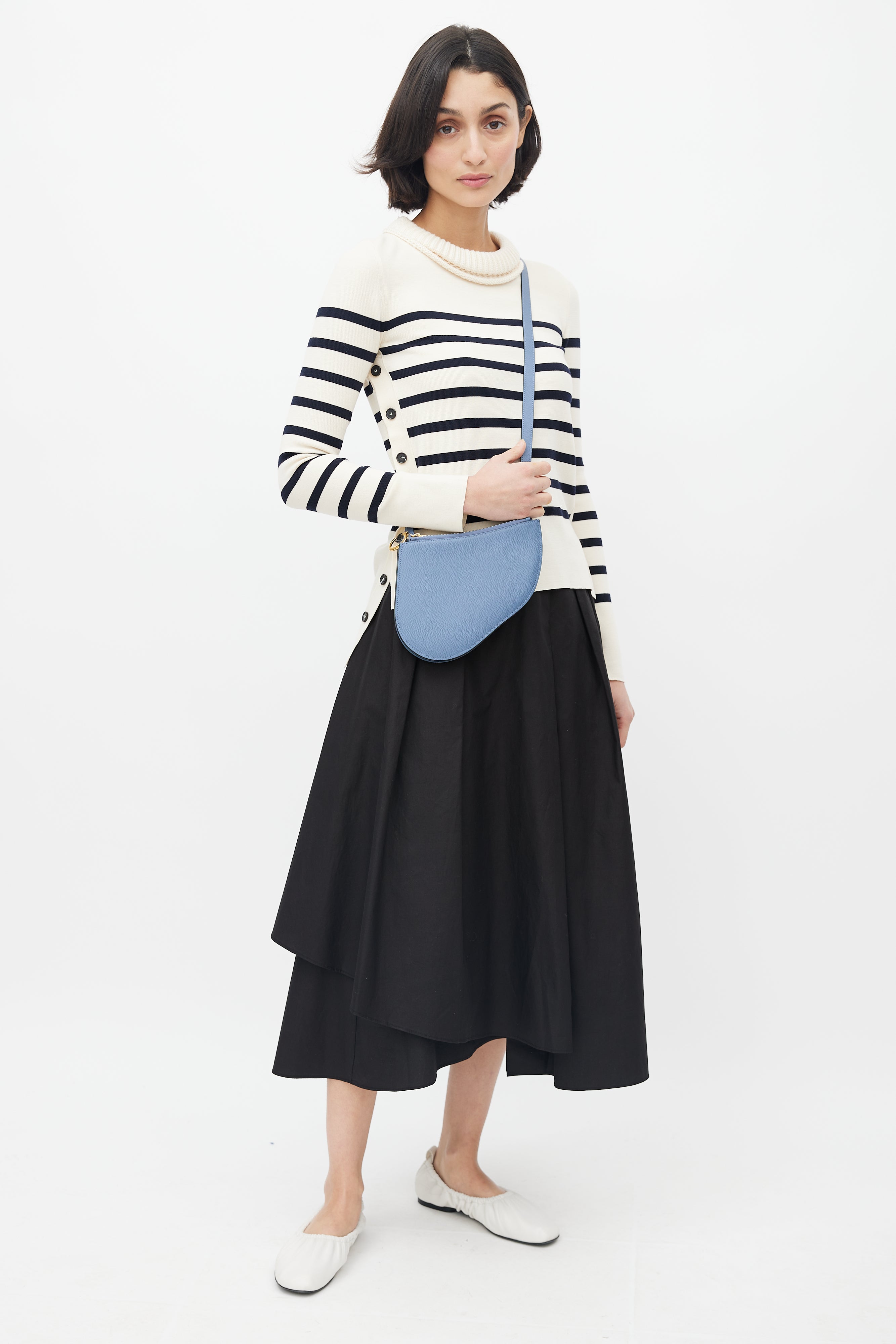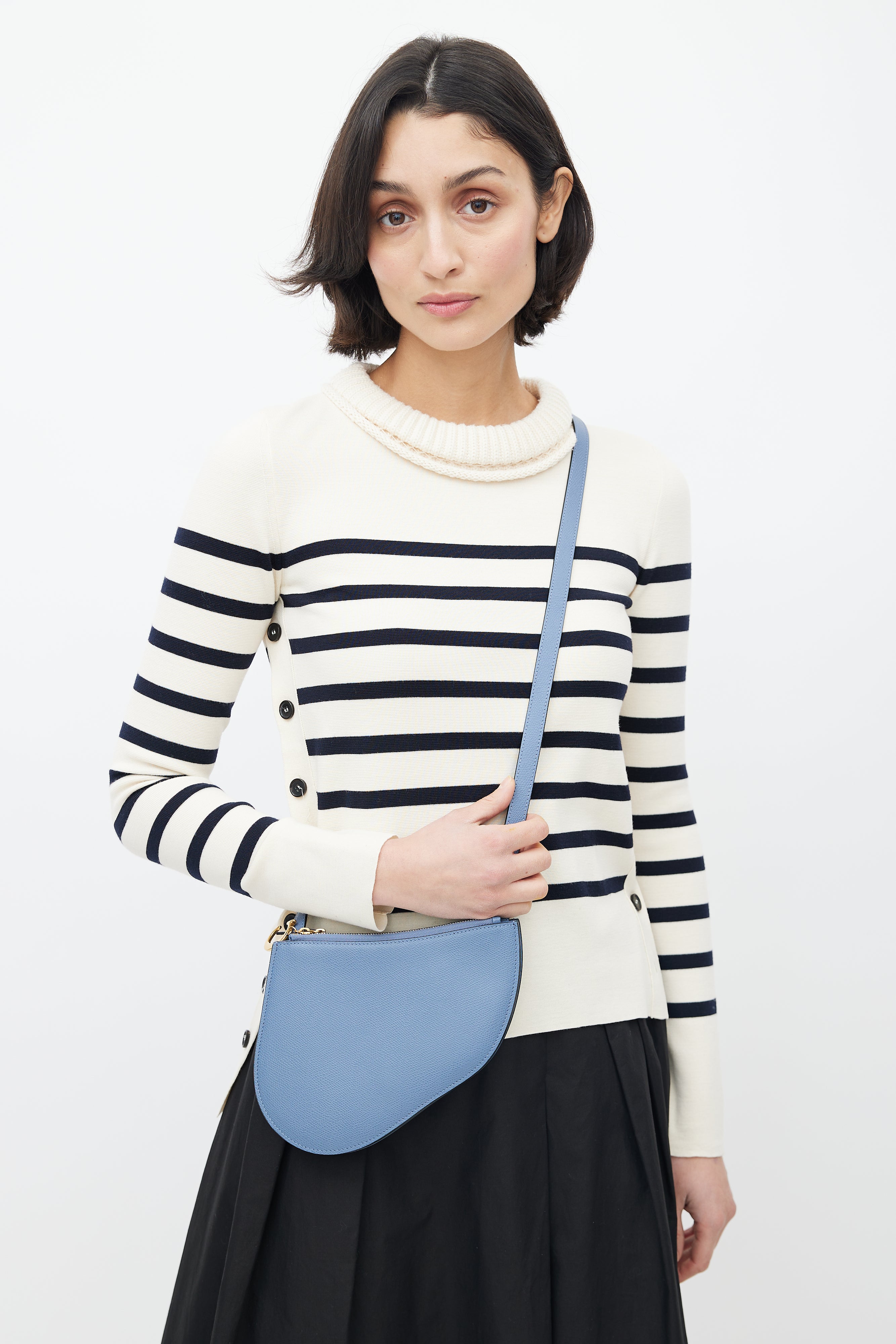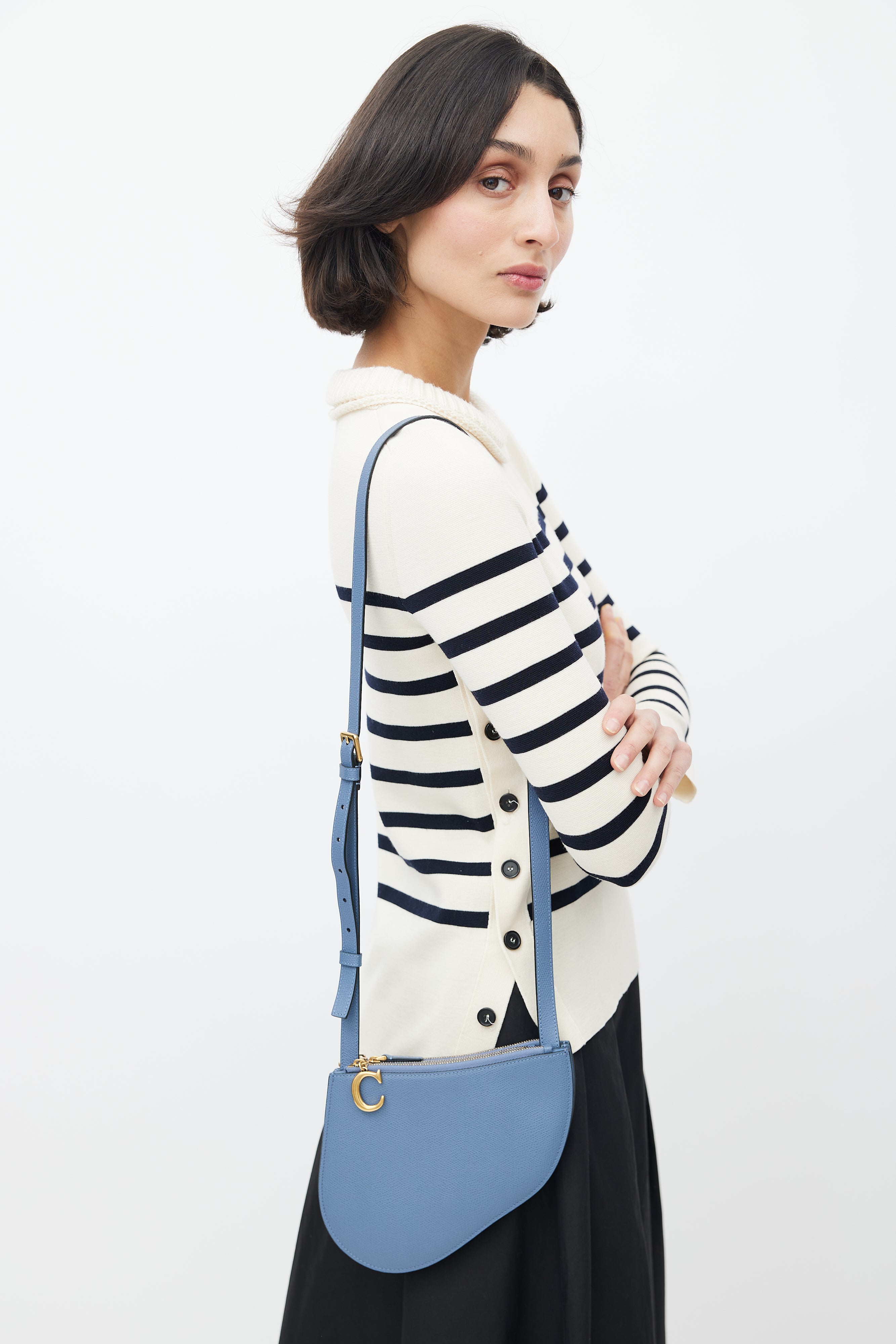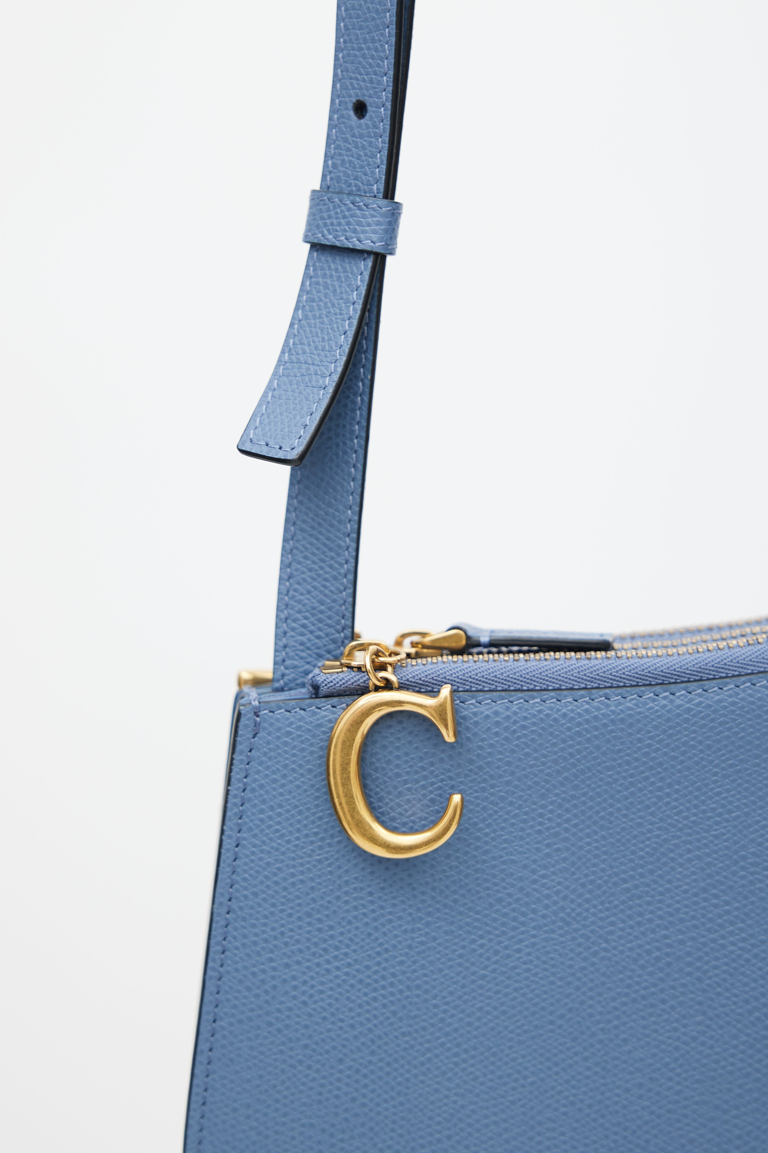 Pre-owned Dior blue Saddle Triple crossbody bag featuring saddle design, three zip compartments, "C" and "D" zipper charm, and adjustable shoulder strap.