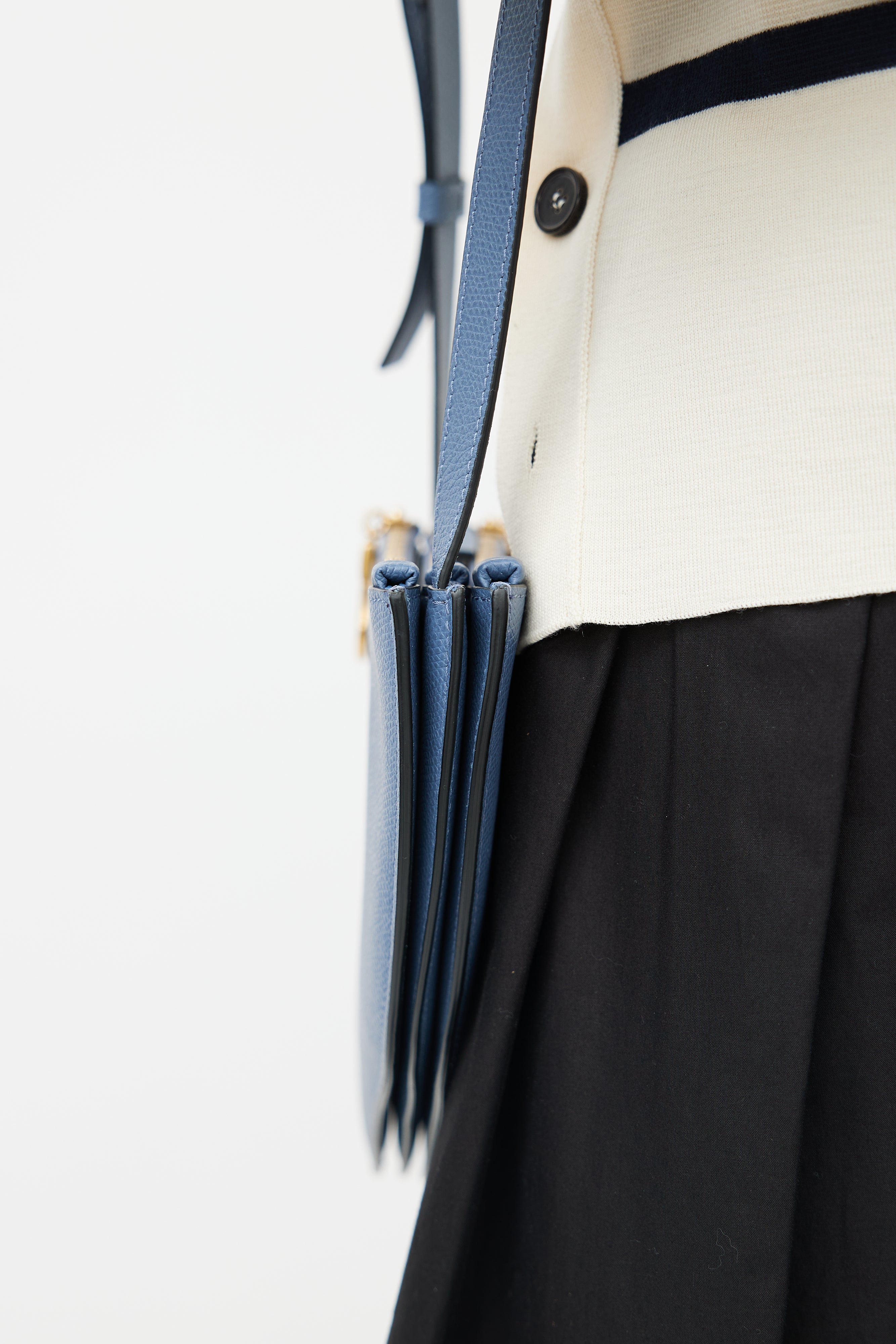 Blue Leather Saddle Triple Zip Crossbody Bag