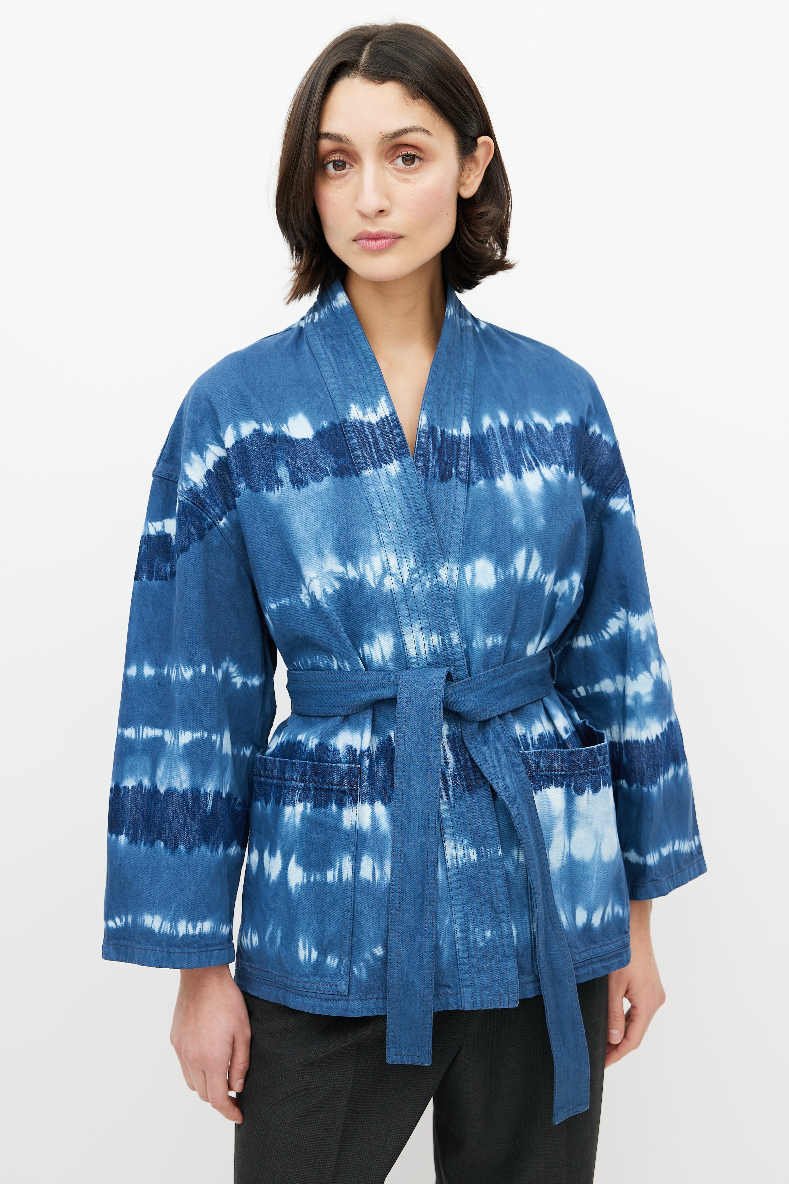 Blue Tie Dye Wrap Jacket FR 40 Size Guide