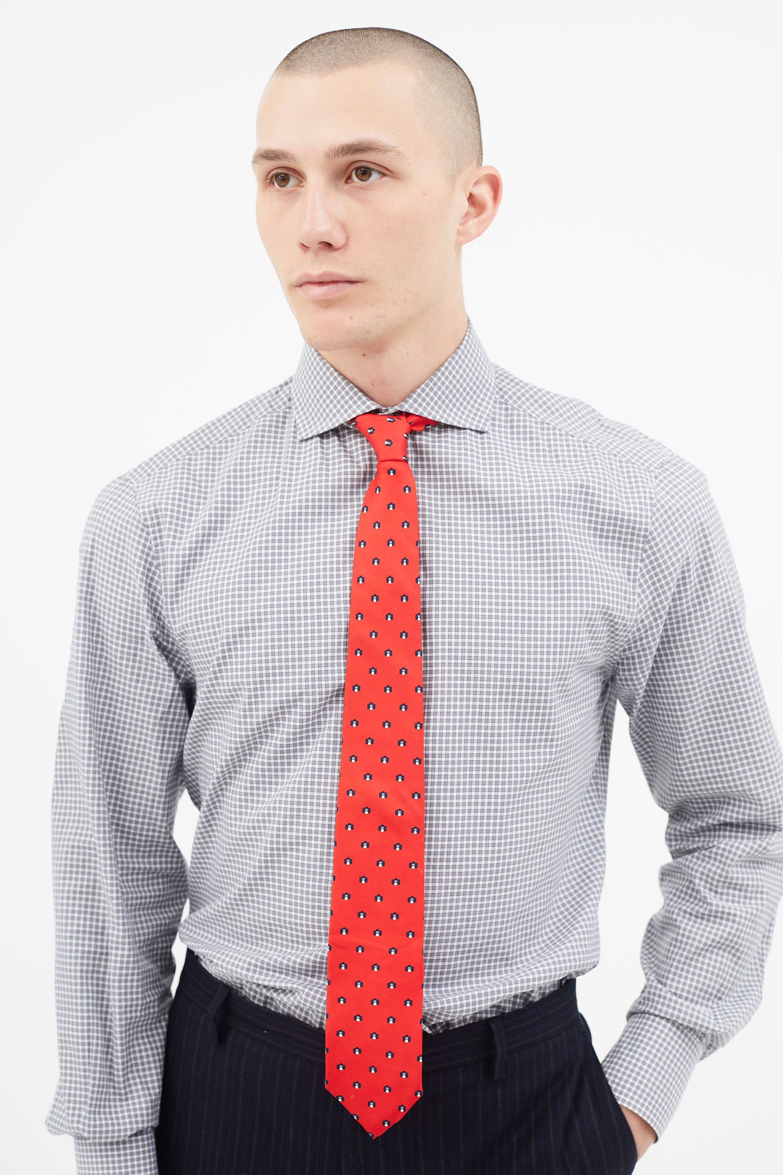 Red & Navy Silk Print Tie