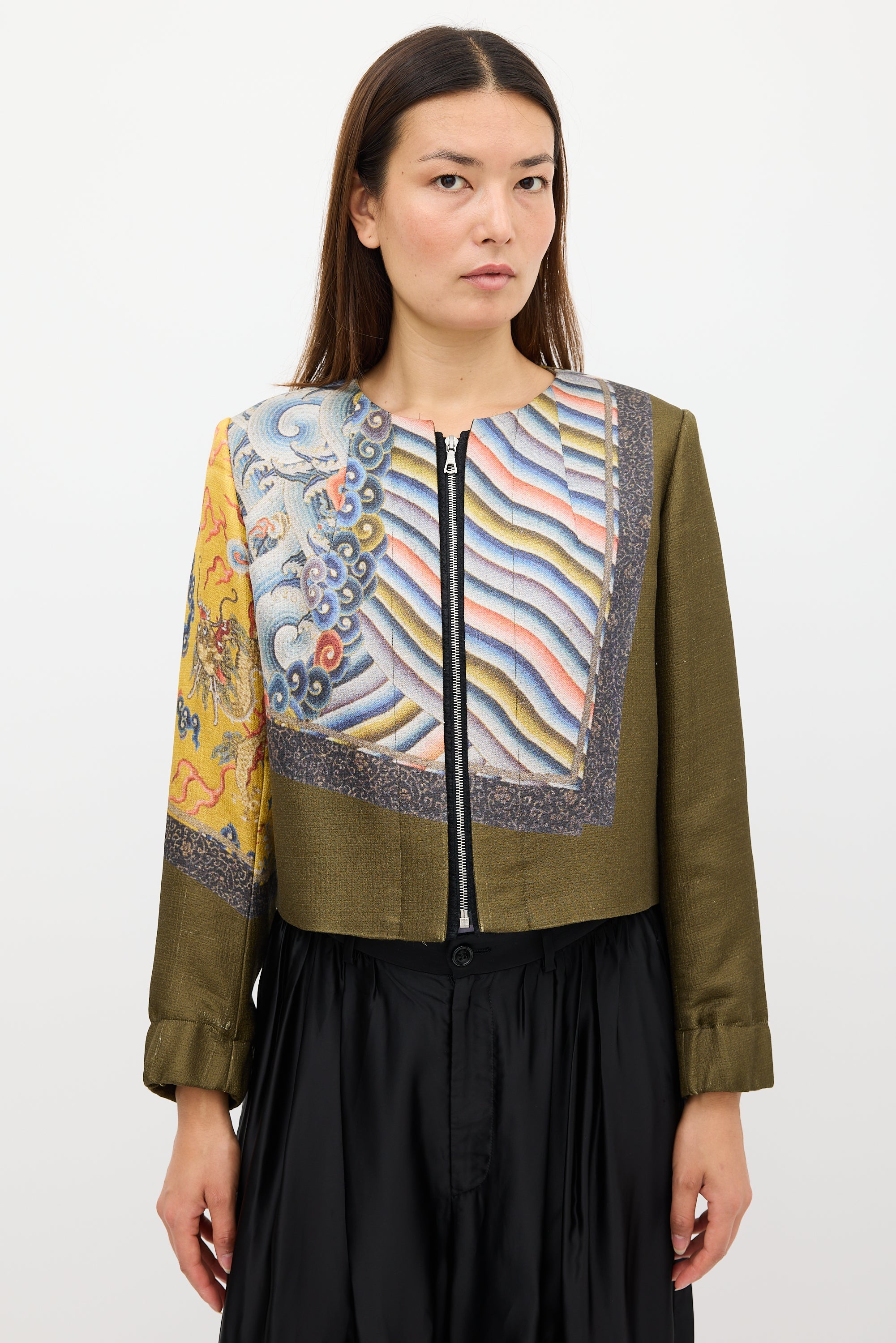 Fall 2012 Green & Multi Silk Print Zip Jacket EU 44 Size Guide