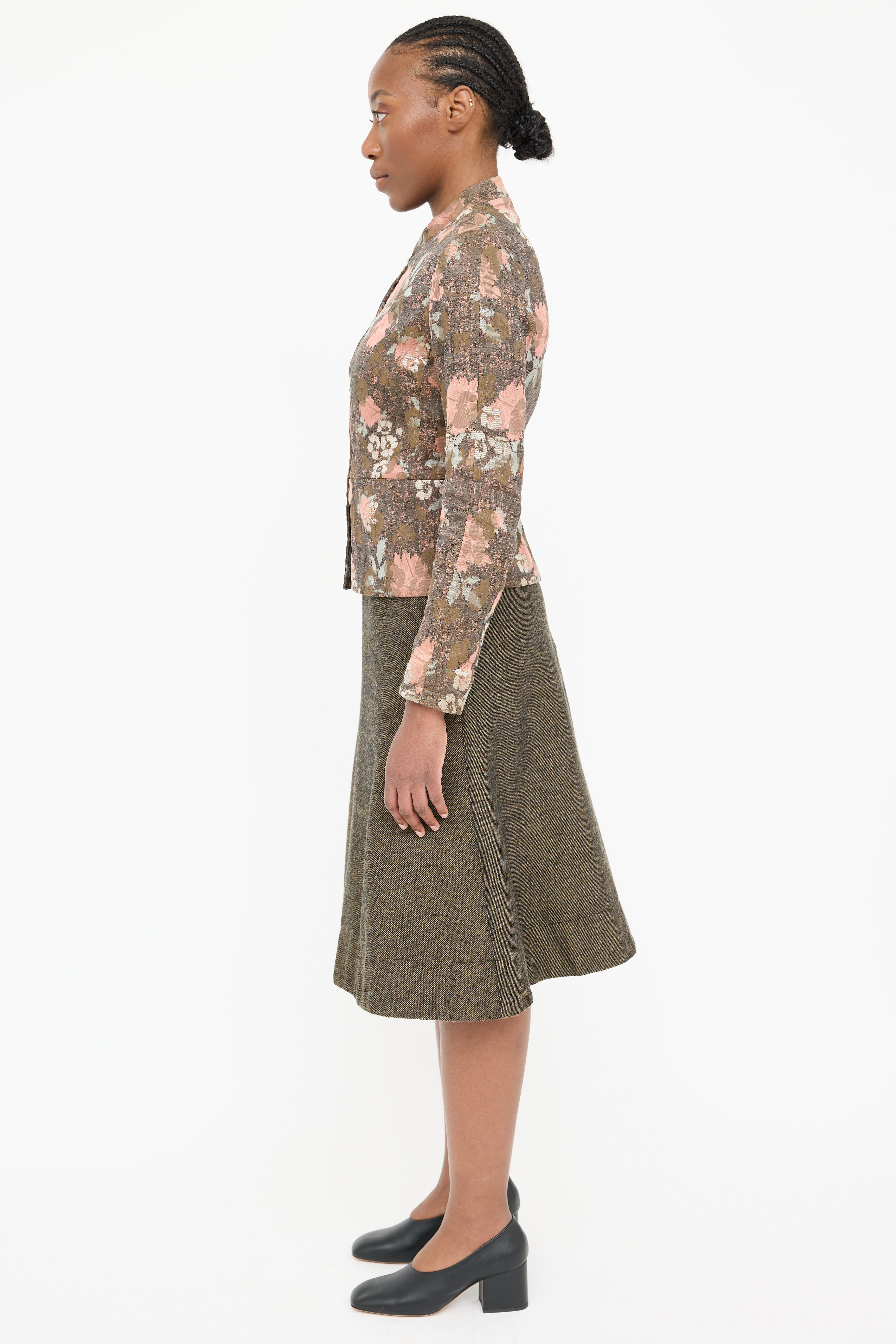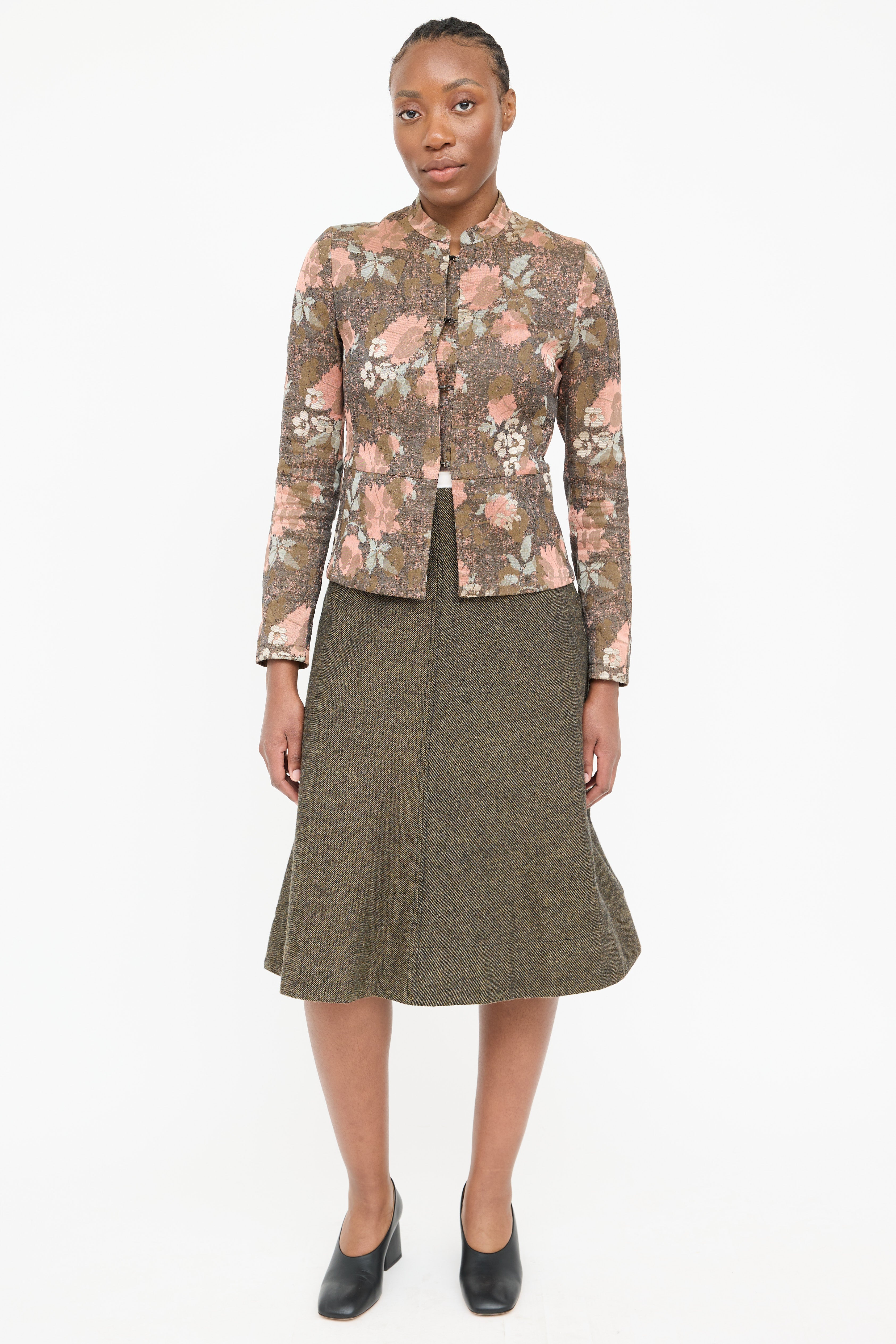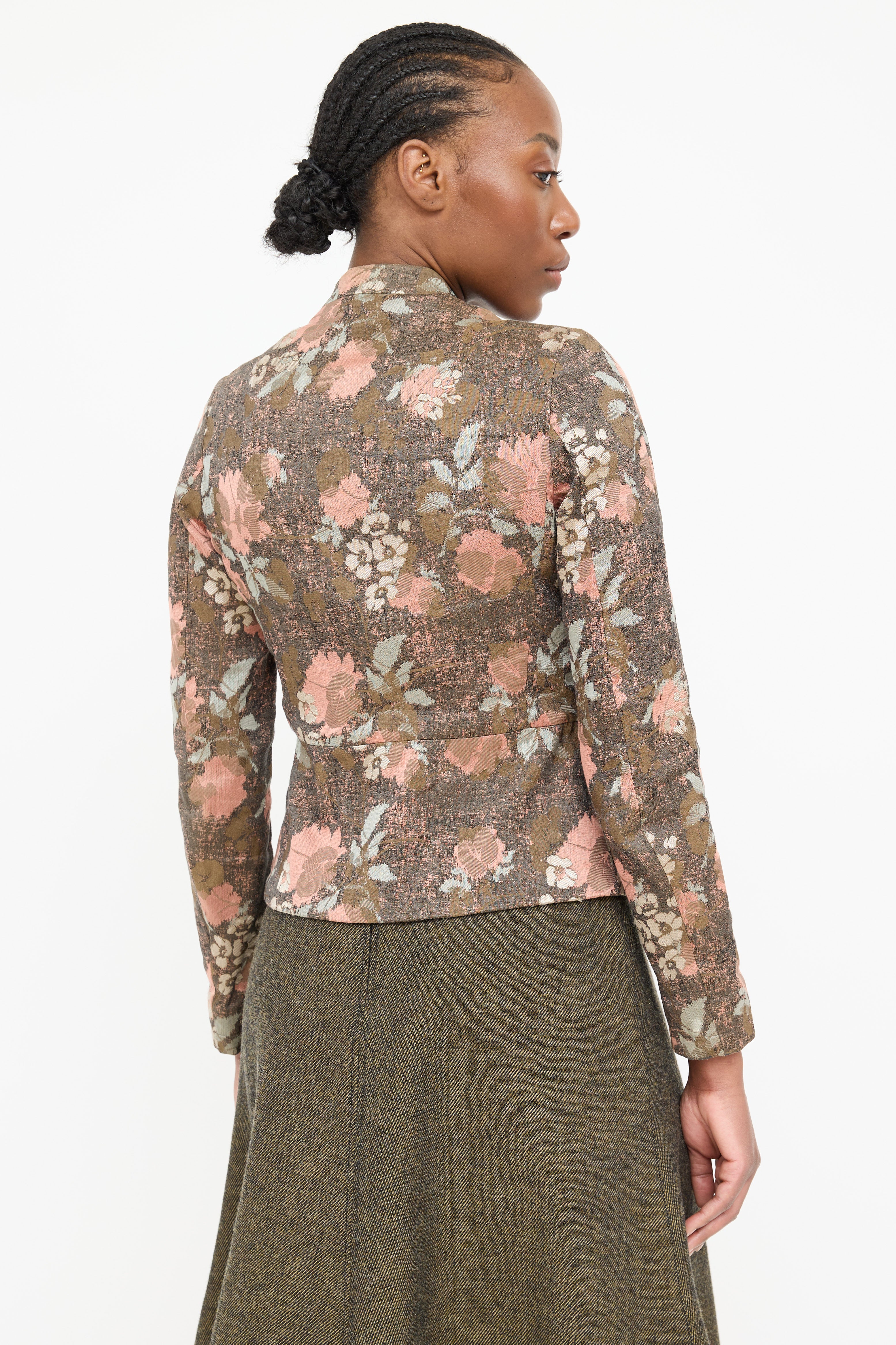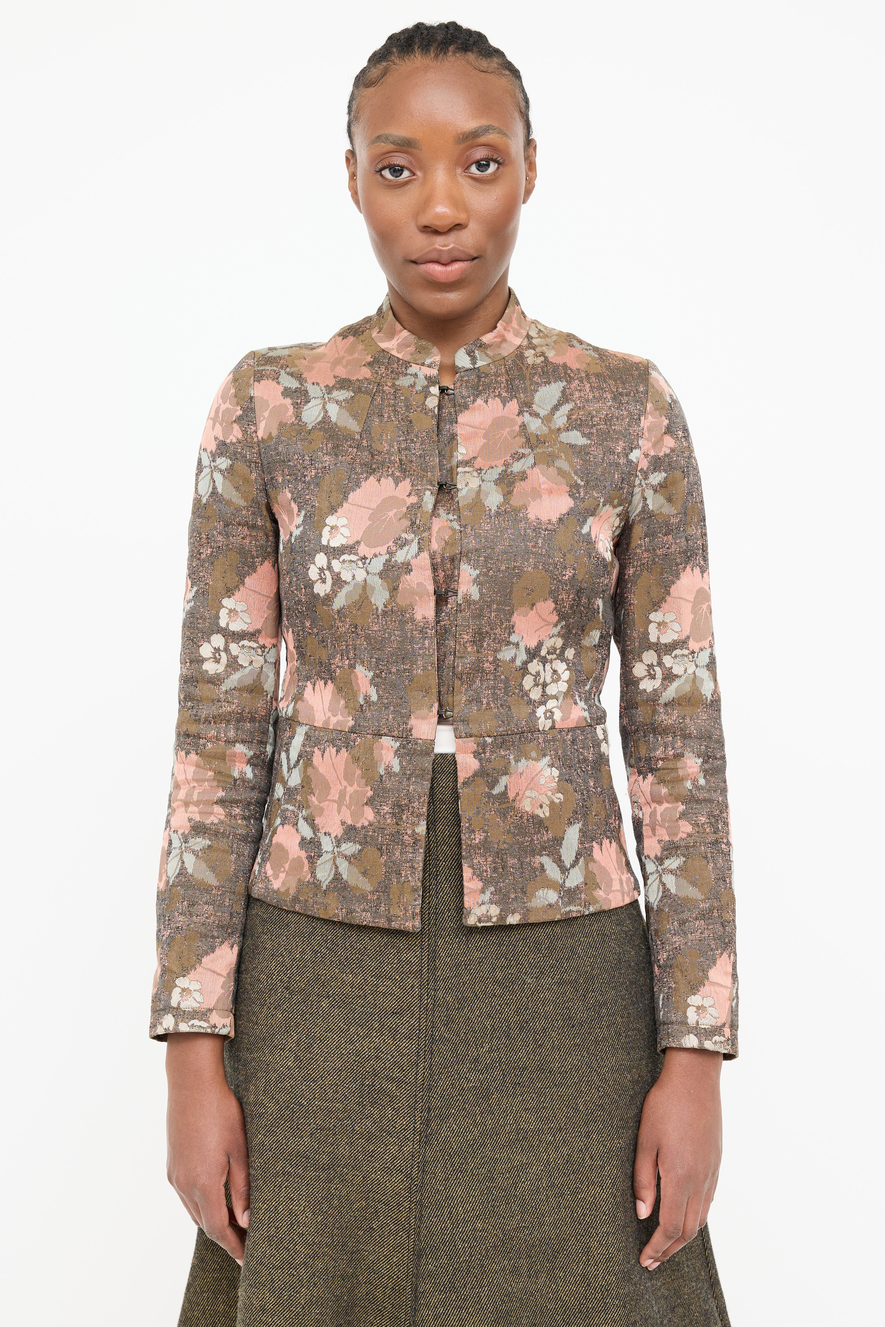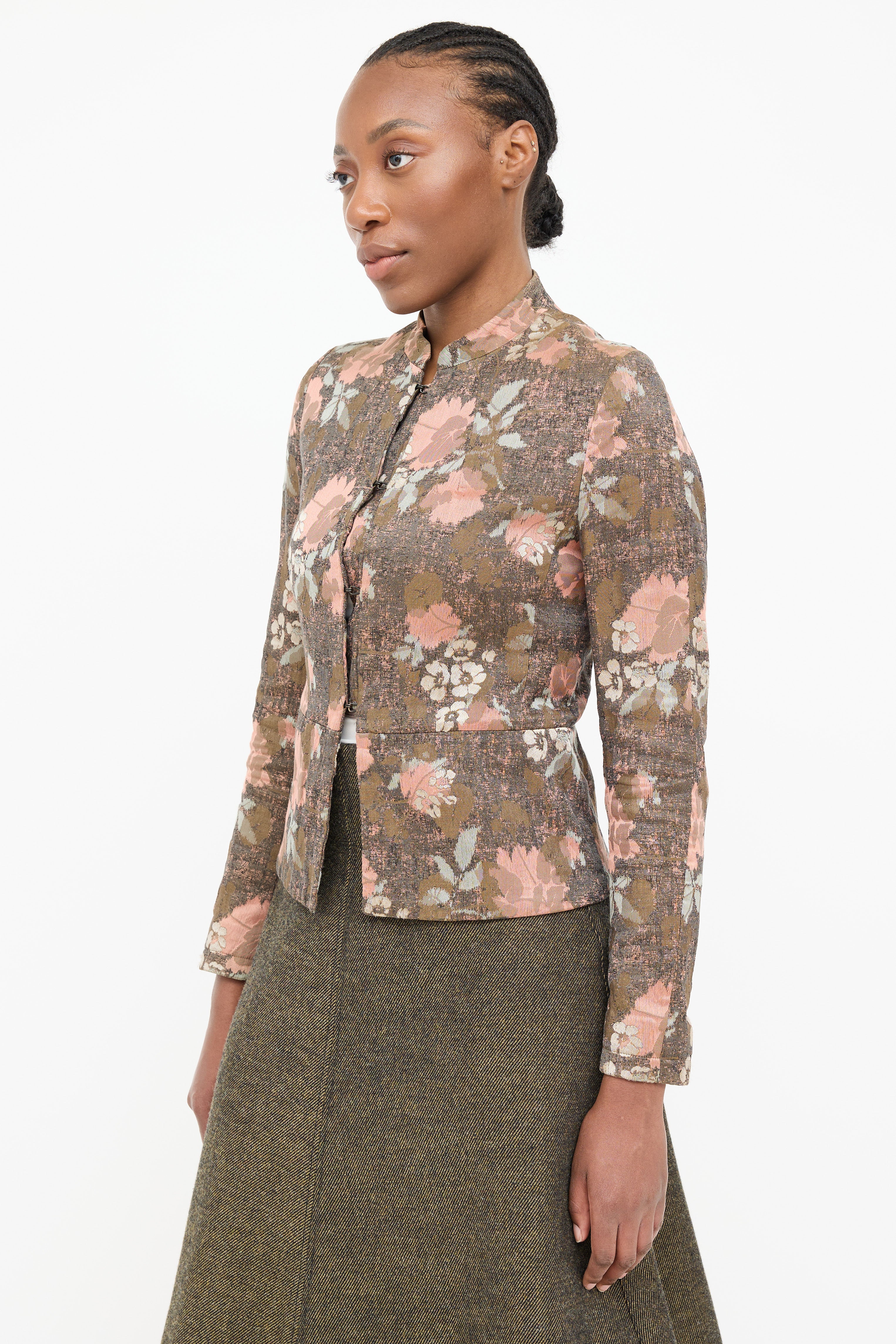 Pre-owned Dries Van Noten multicolour floral woven blazer featuring round collar, hook & eye closure, long sleeves and one interior pocket. Lined