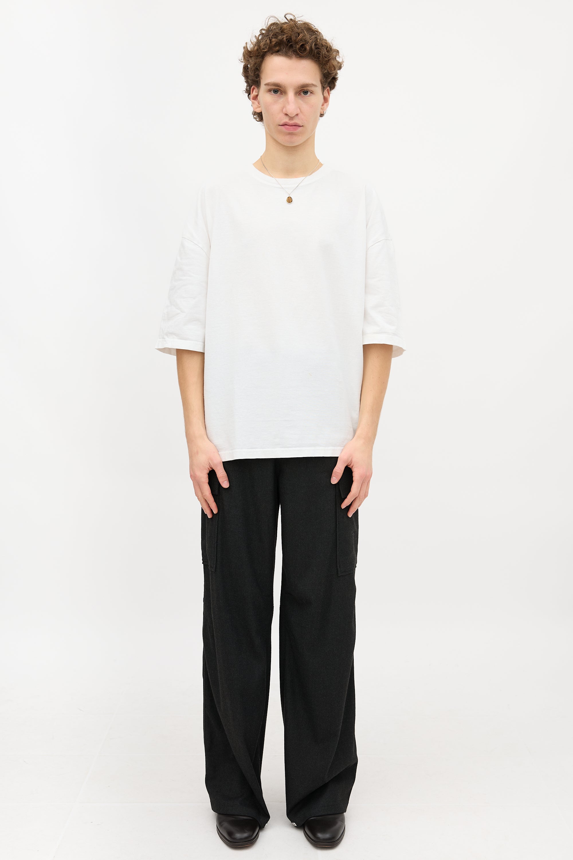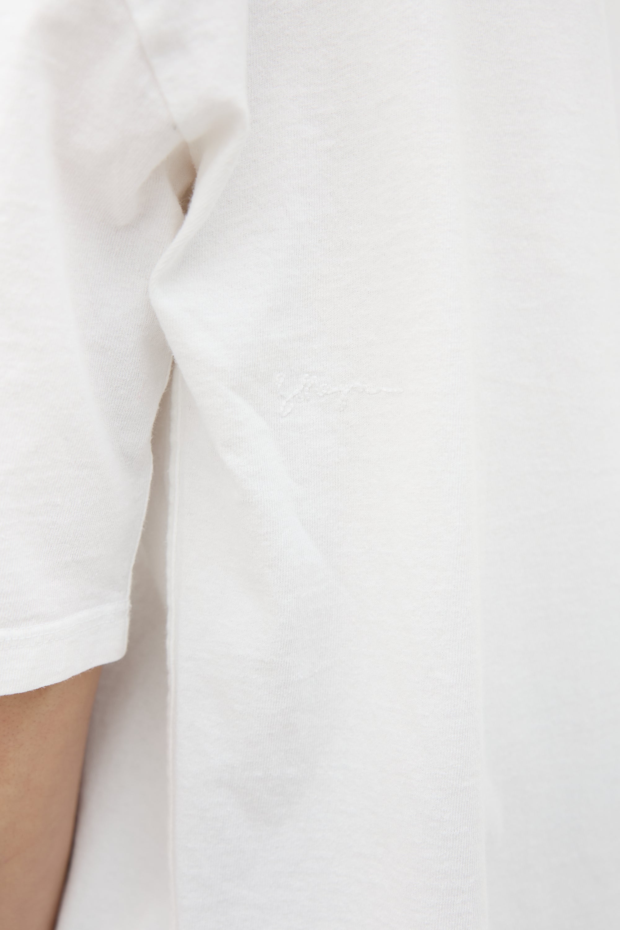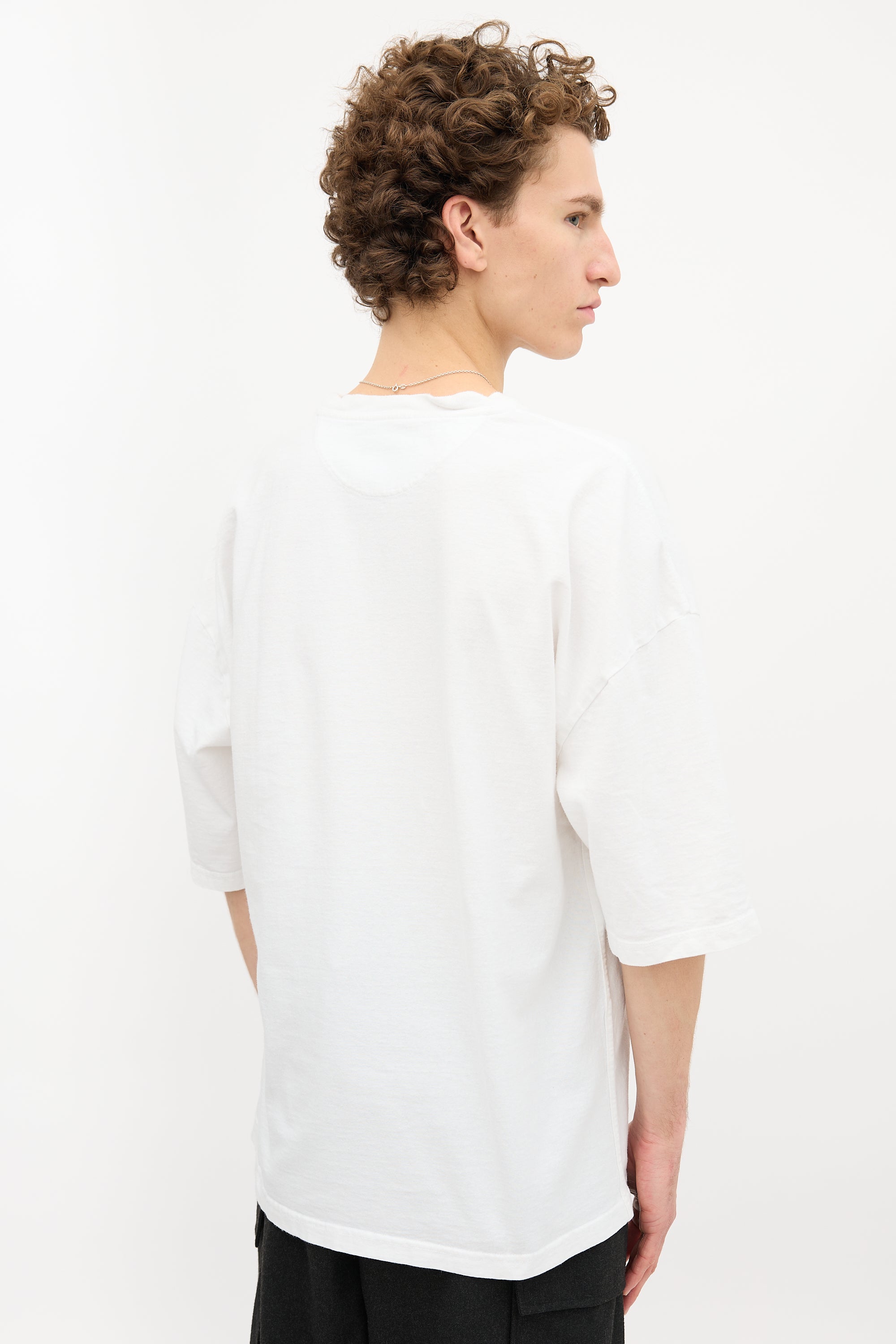Pre-owned Bottega Veneta white mid-weight T-shirt featuring a crew neckline, dropped shoulder, tonal logo embroidery at back side, and boxy silhouette.