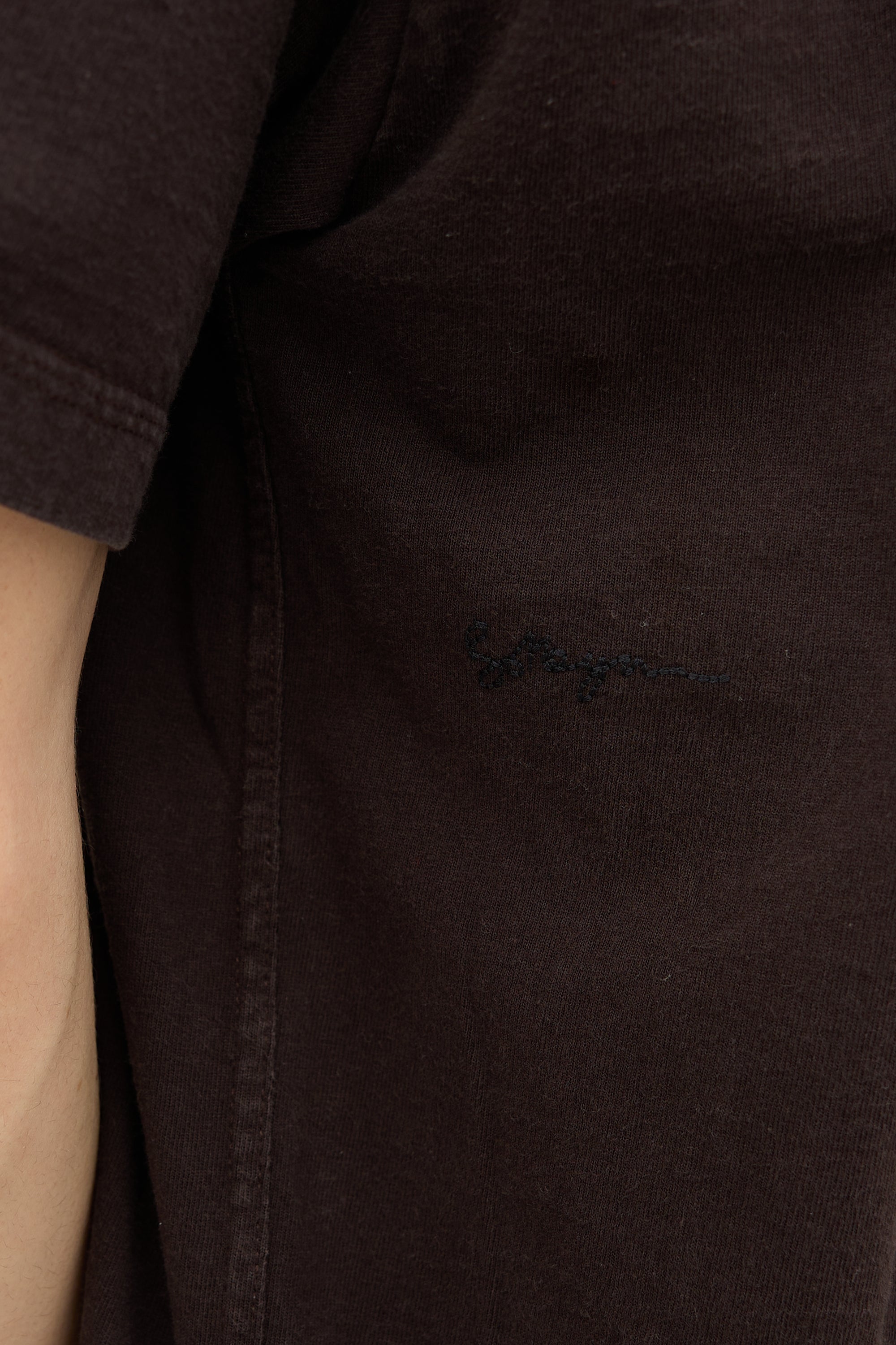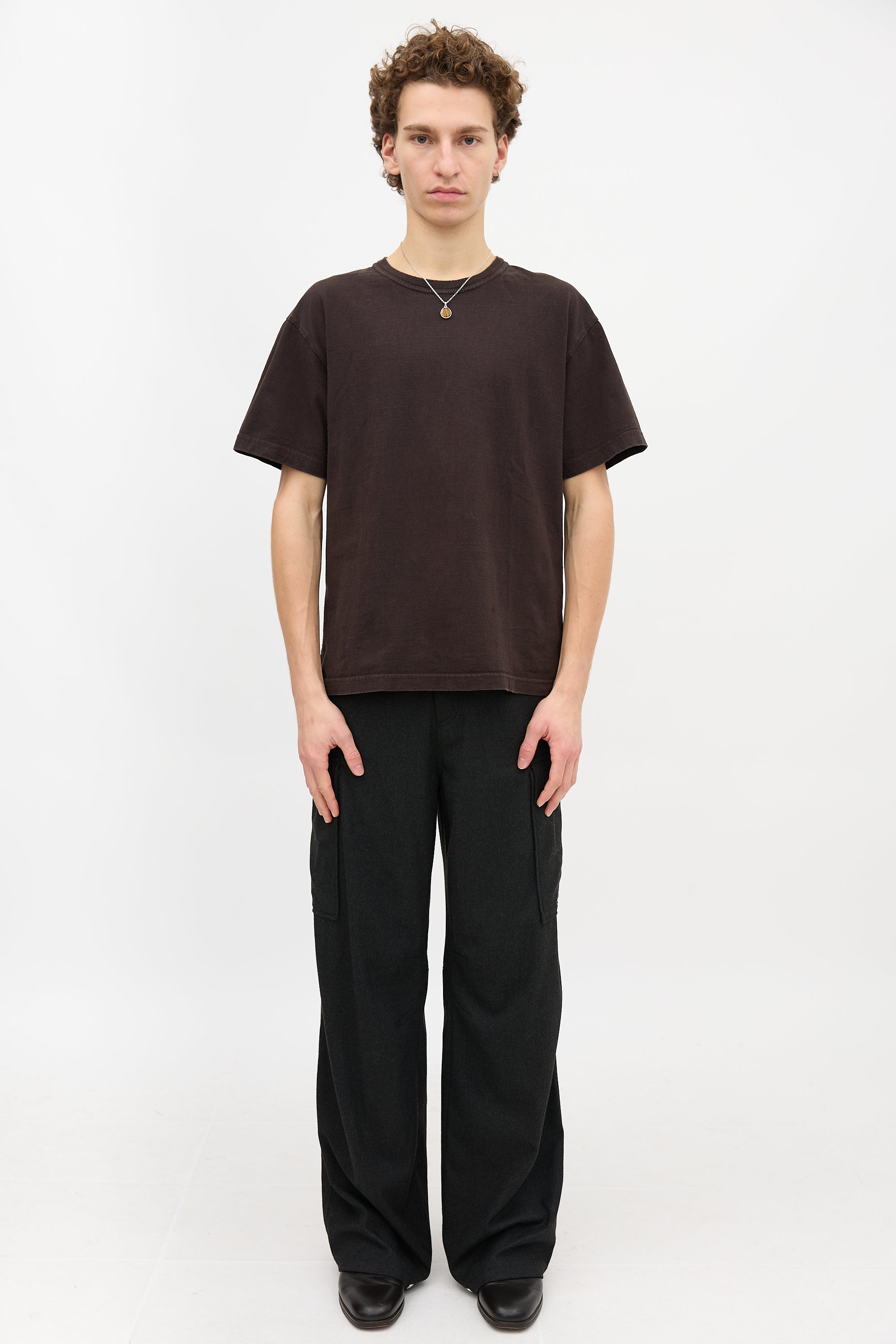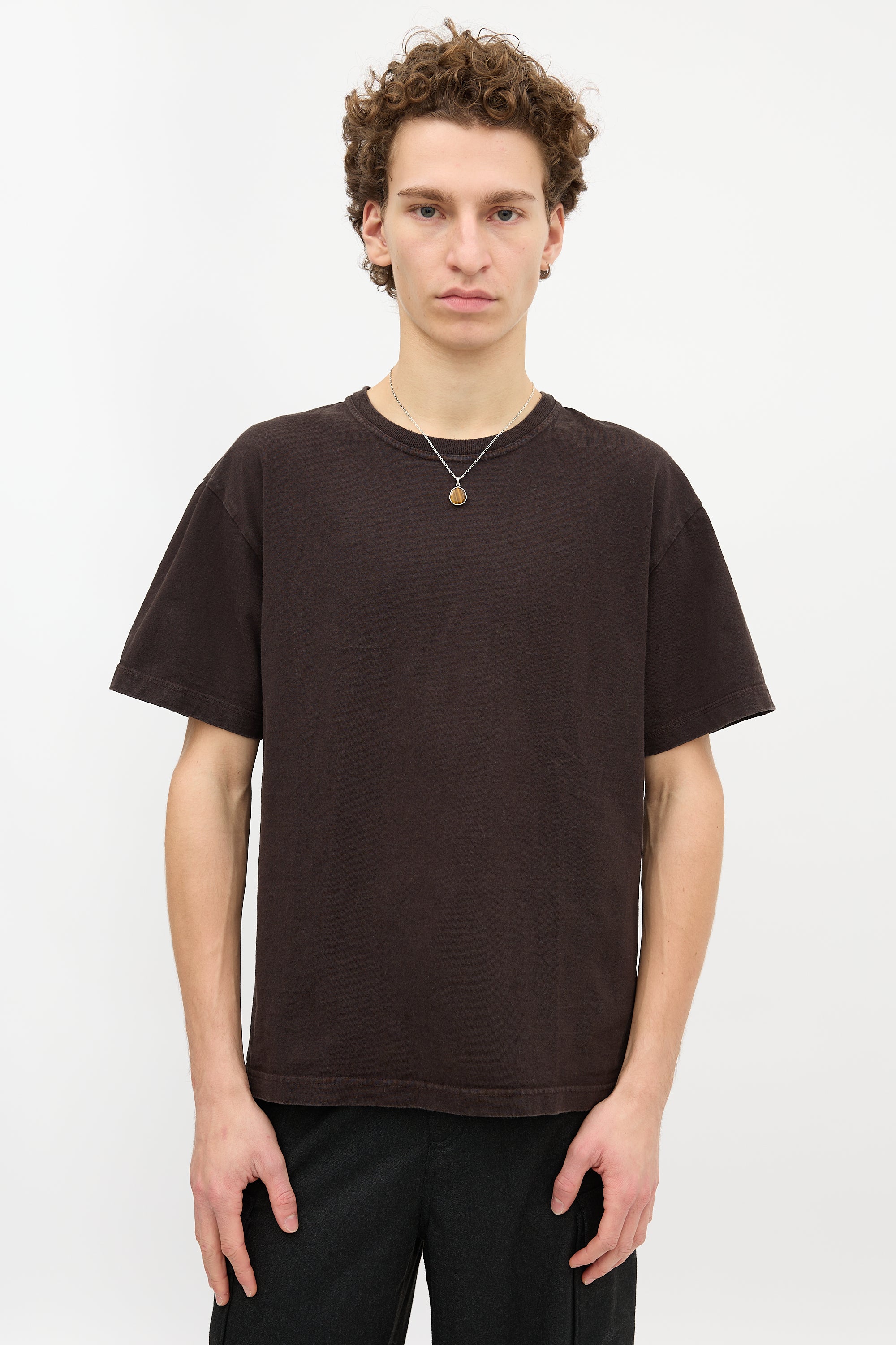 Pre-owned Bottega Veneta brown mid-weight T-shirt featuring a crew neckline, dropped shoulder, tonal logo embroidery at back side, and boxy silhouette.
