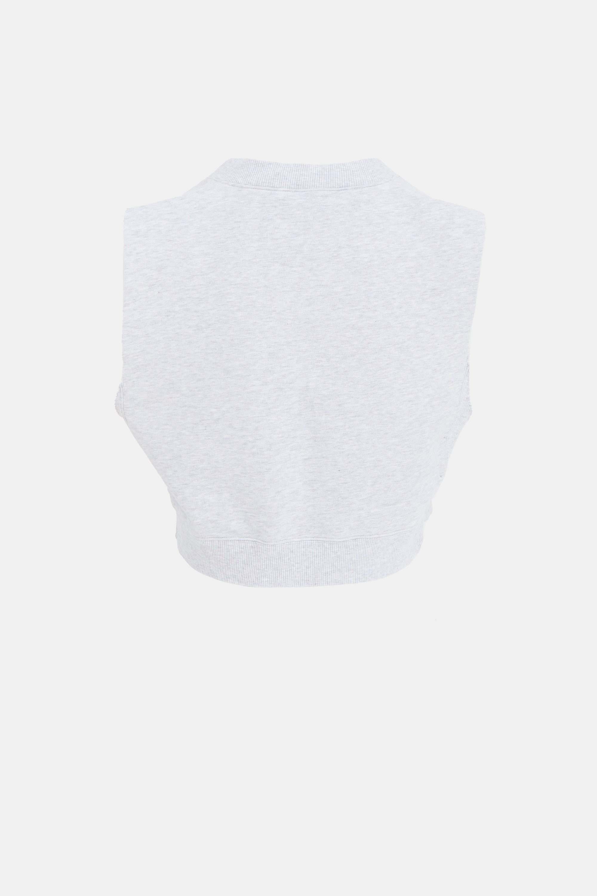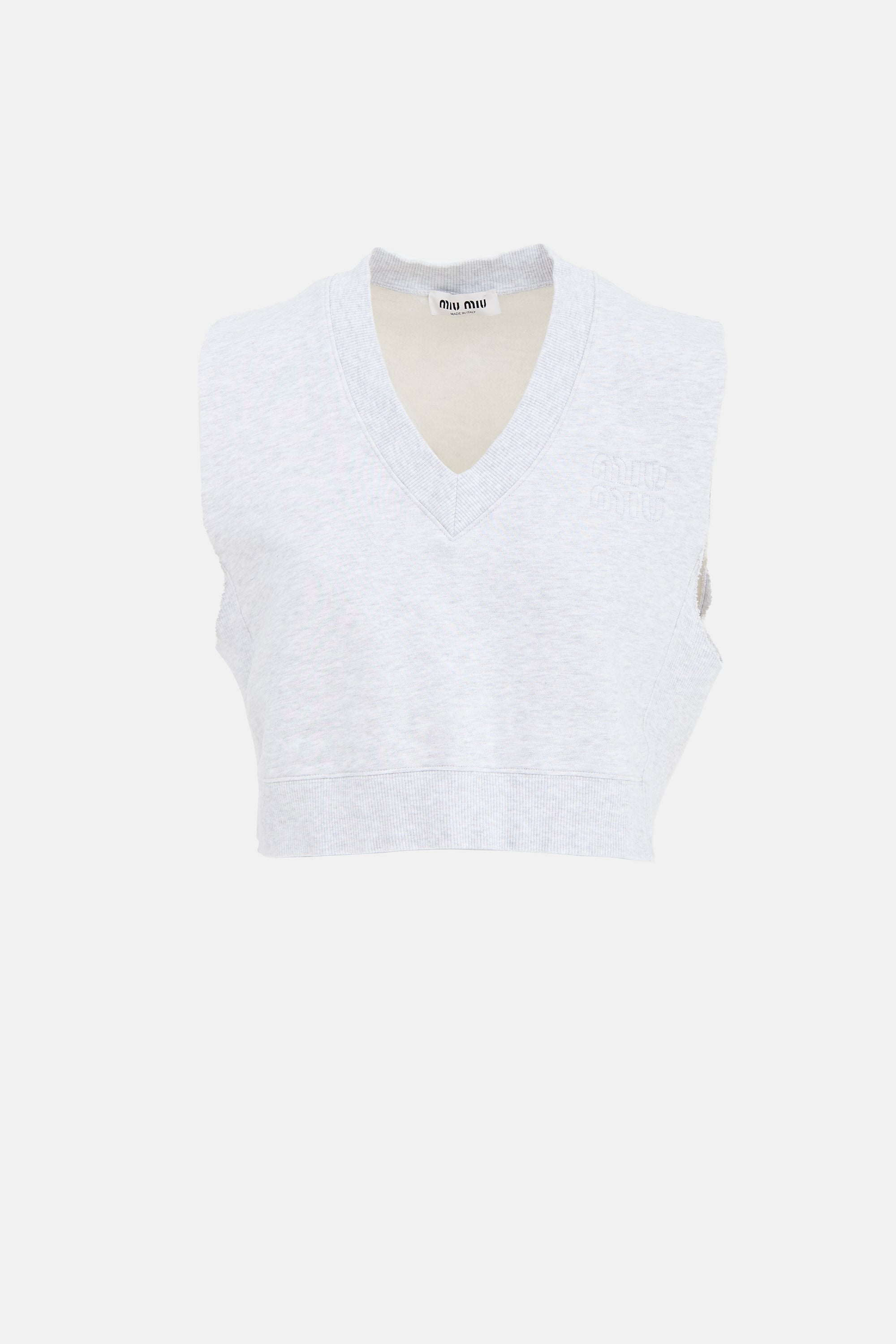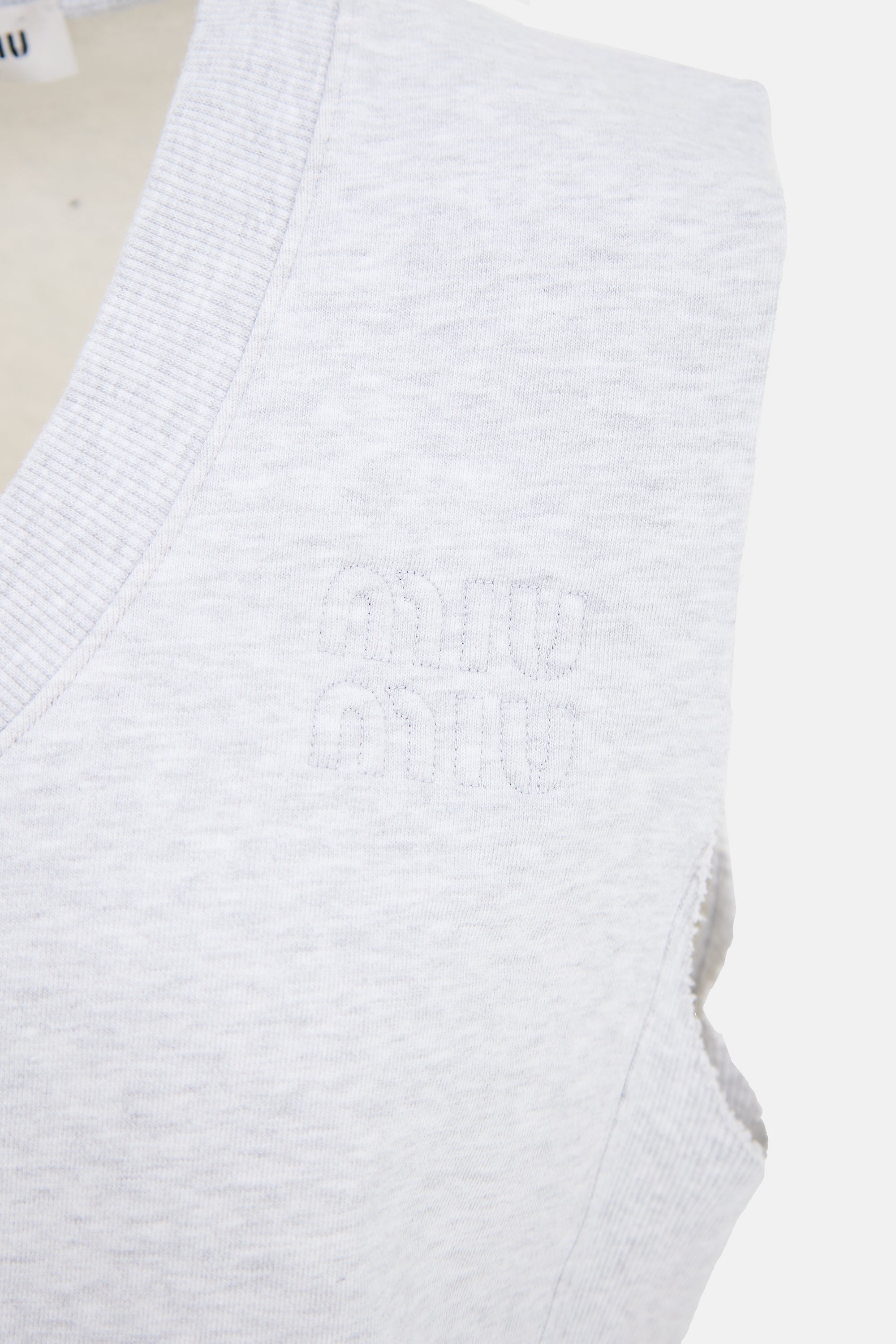 Pre-owned Miu Miu grey sweatshirt vest featuring V-neckline, raw edge at arm, and ribbed sides and hem.