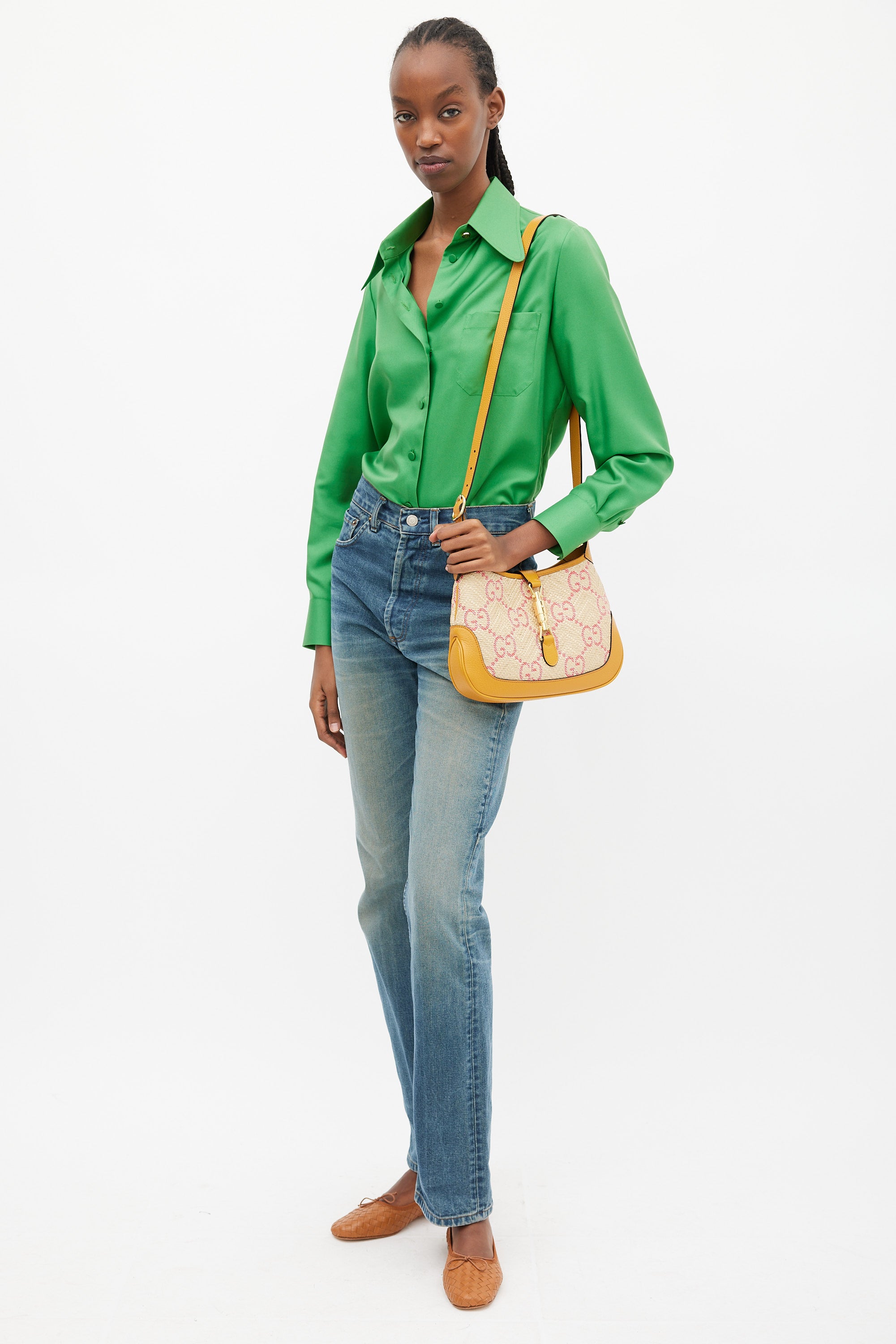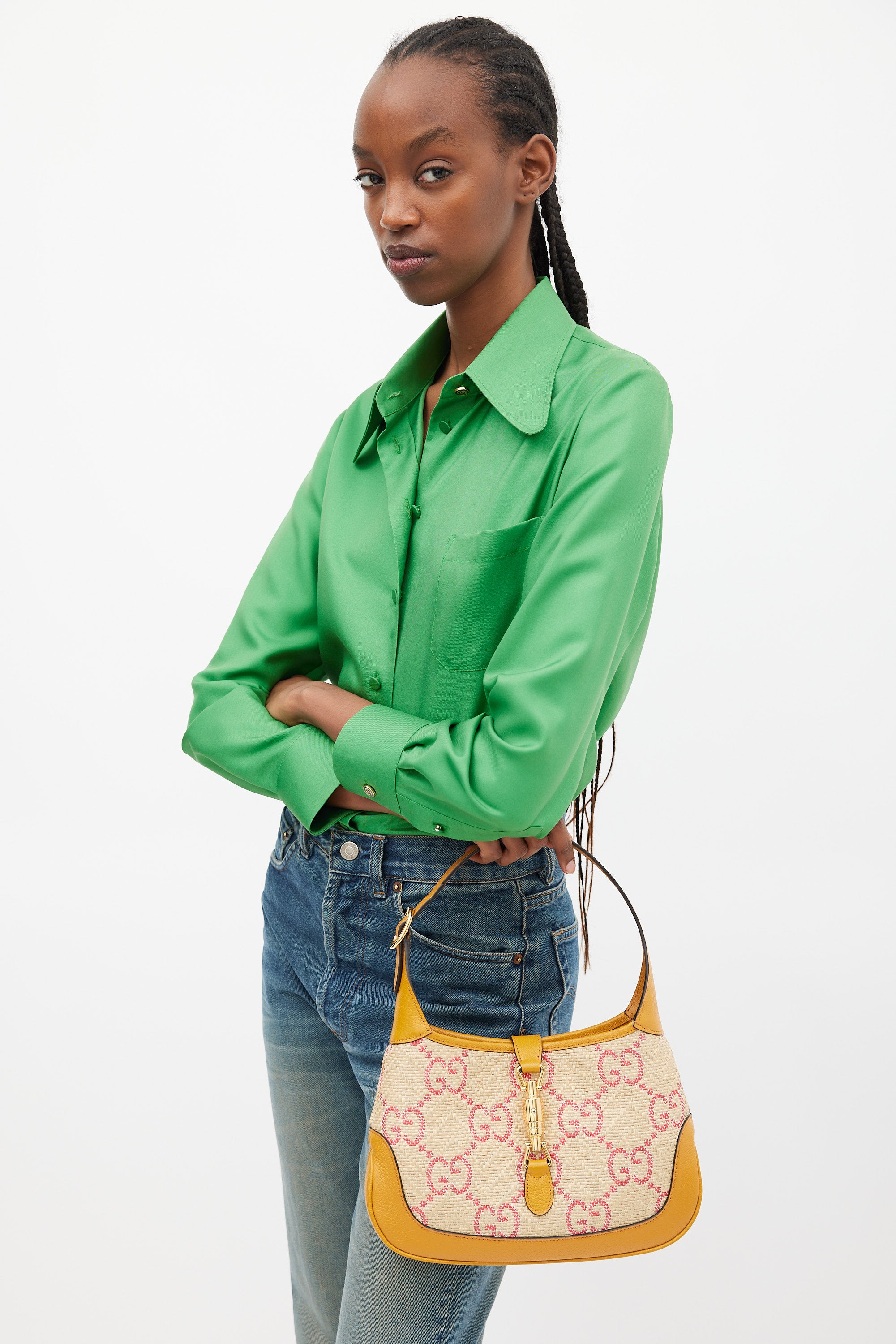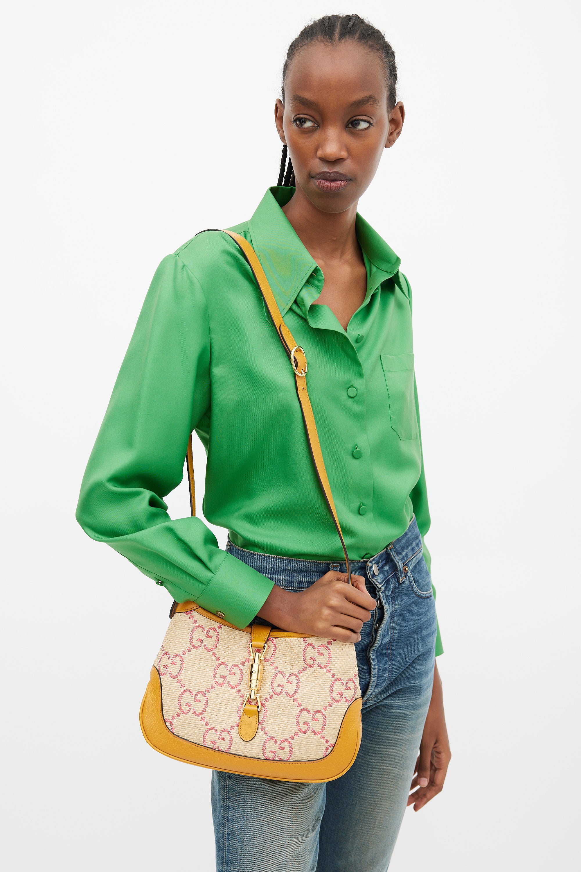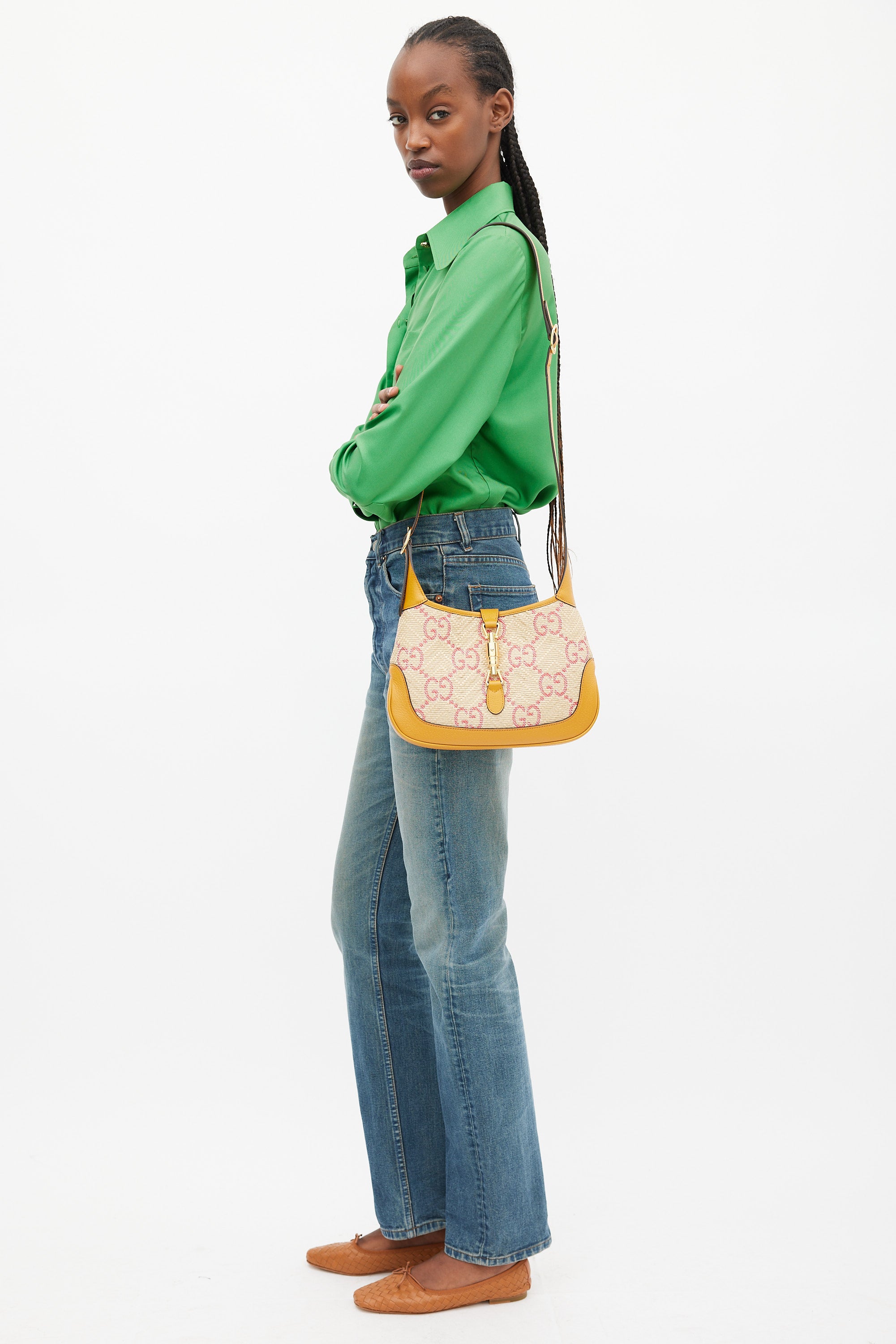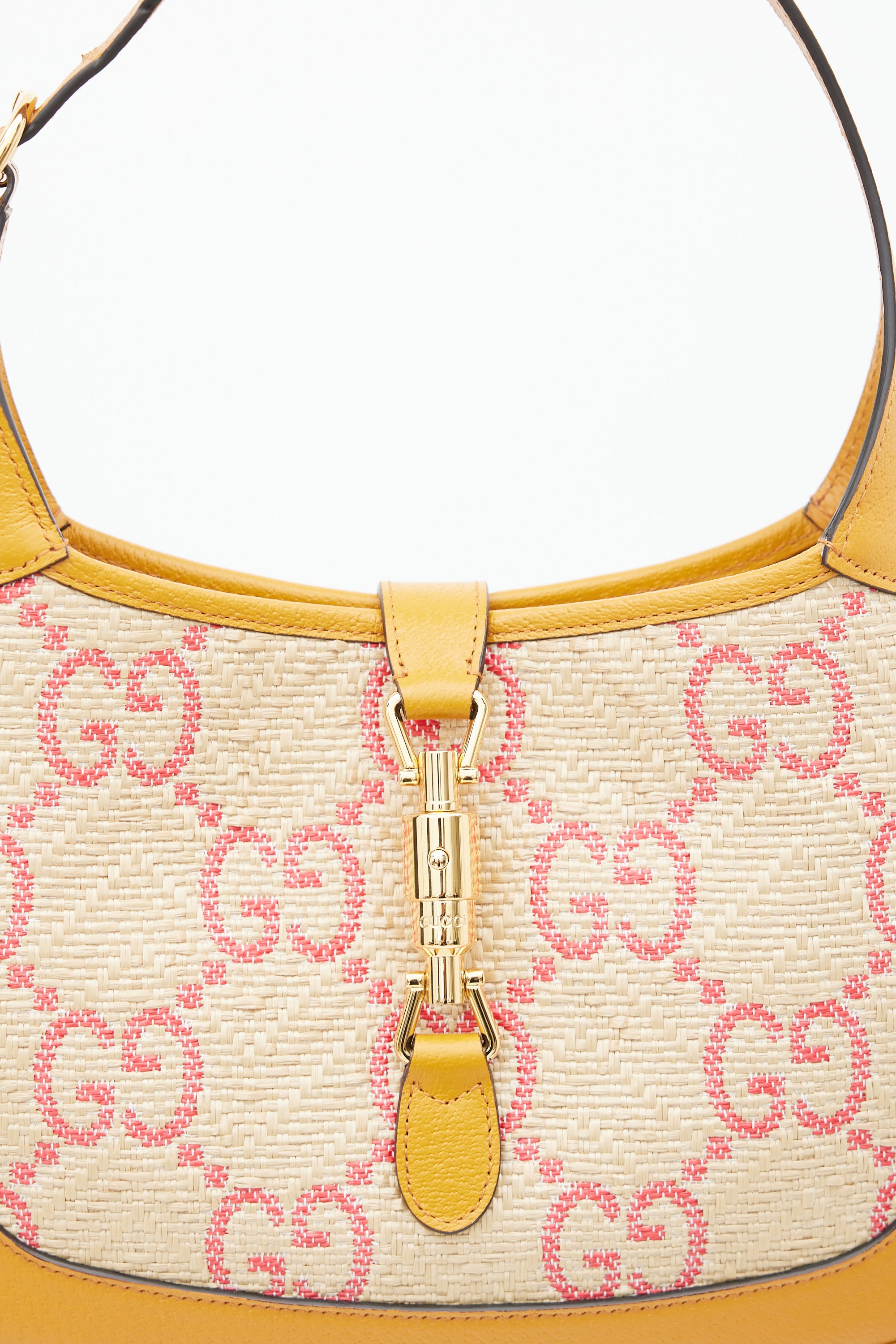 Brown & Pink GG Monogram Raffia Jackie 1961 Small Bag