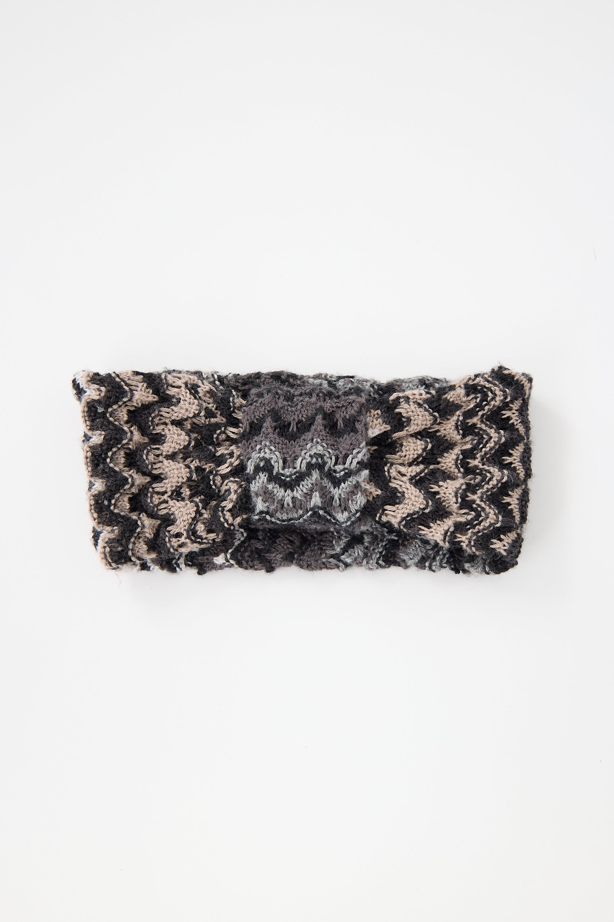 Pre-owned Missoni dark grey knit headband featuring a chevron jacquard and knotted front.