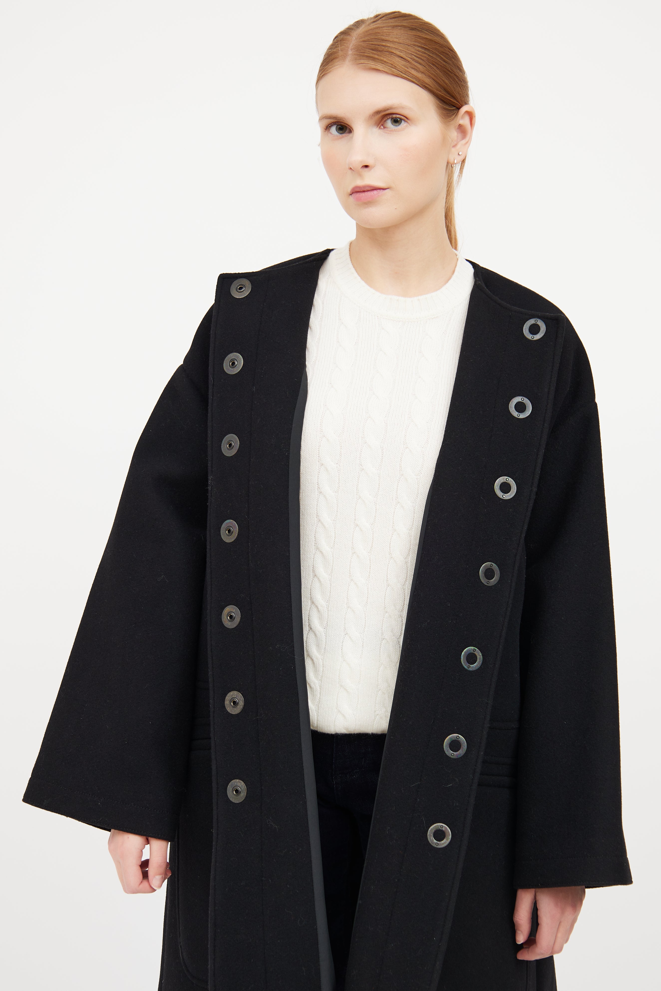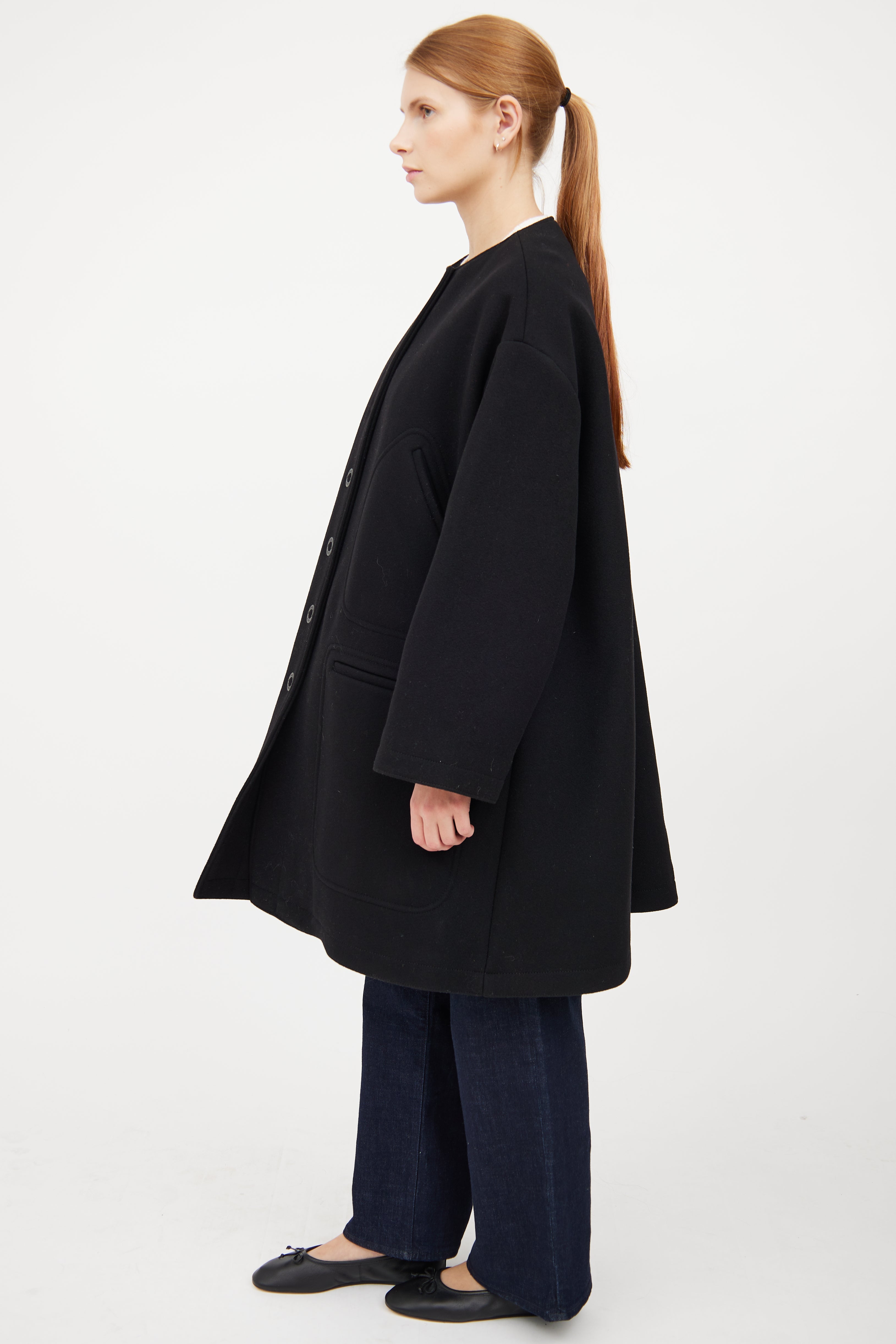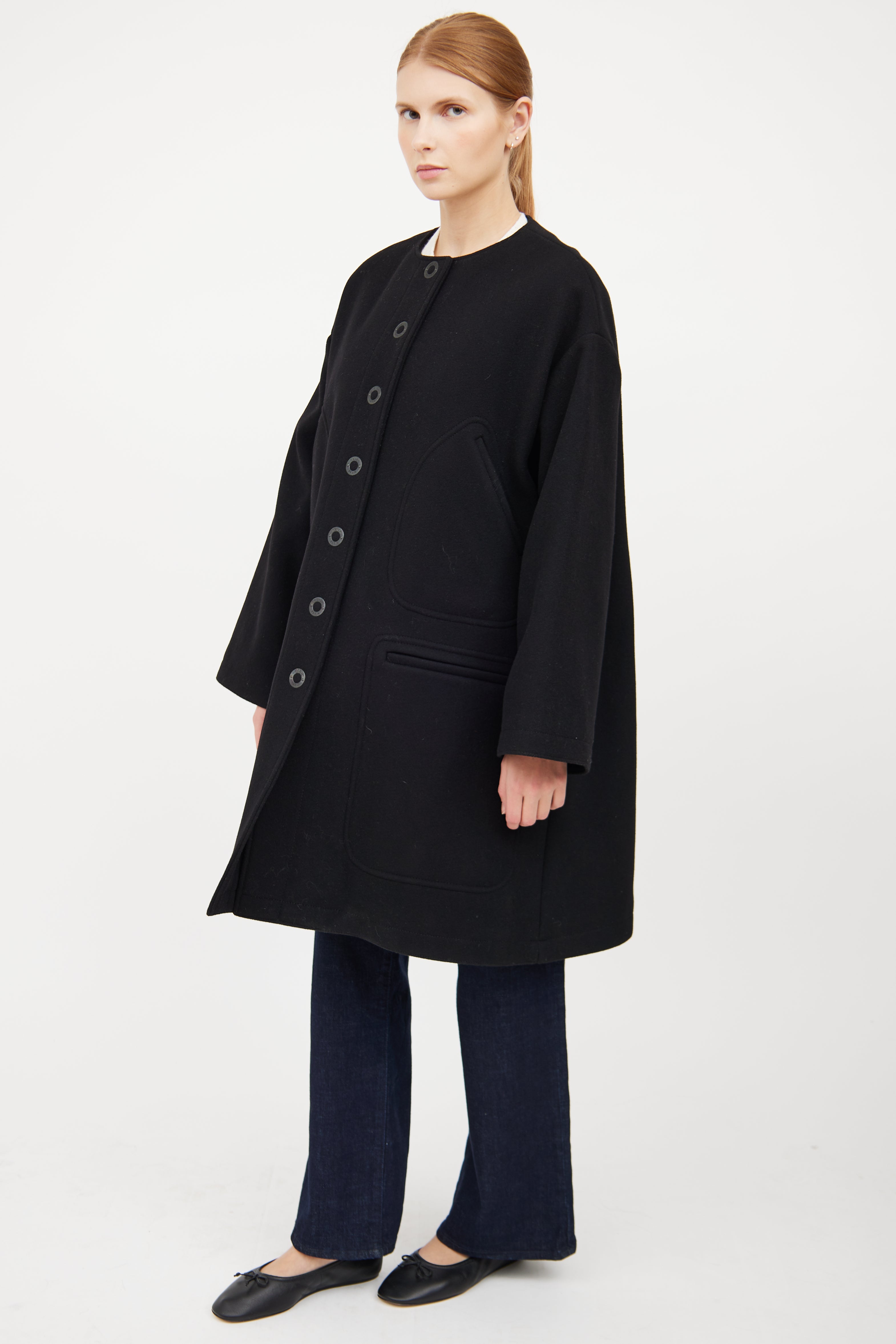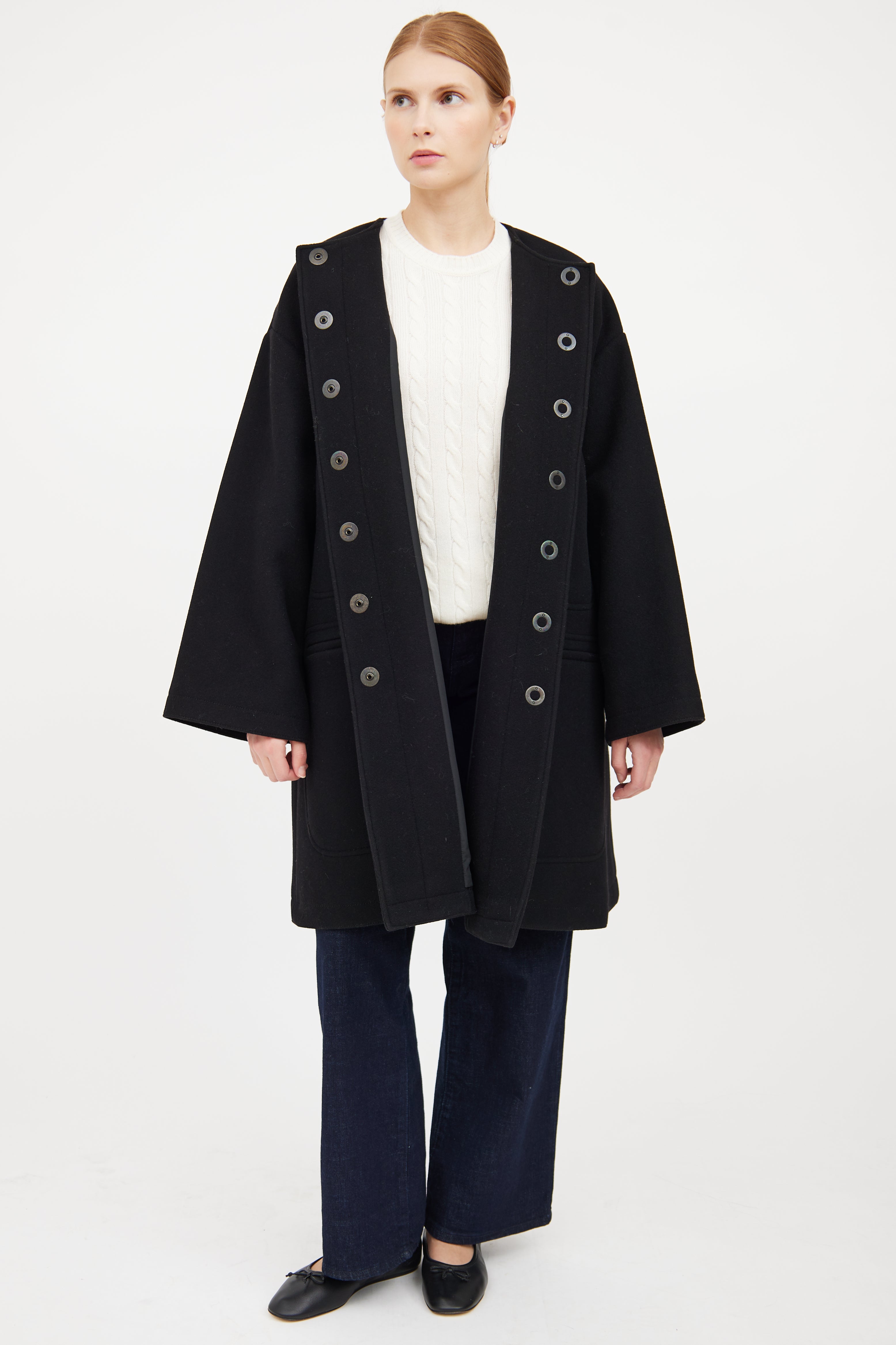 Black Wool Button Flared Coat IT 42 Size Guide