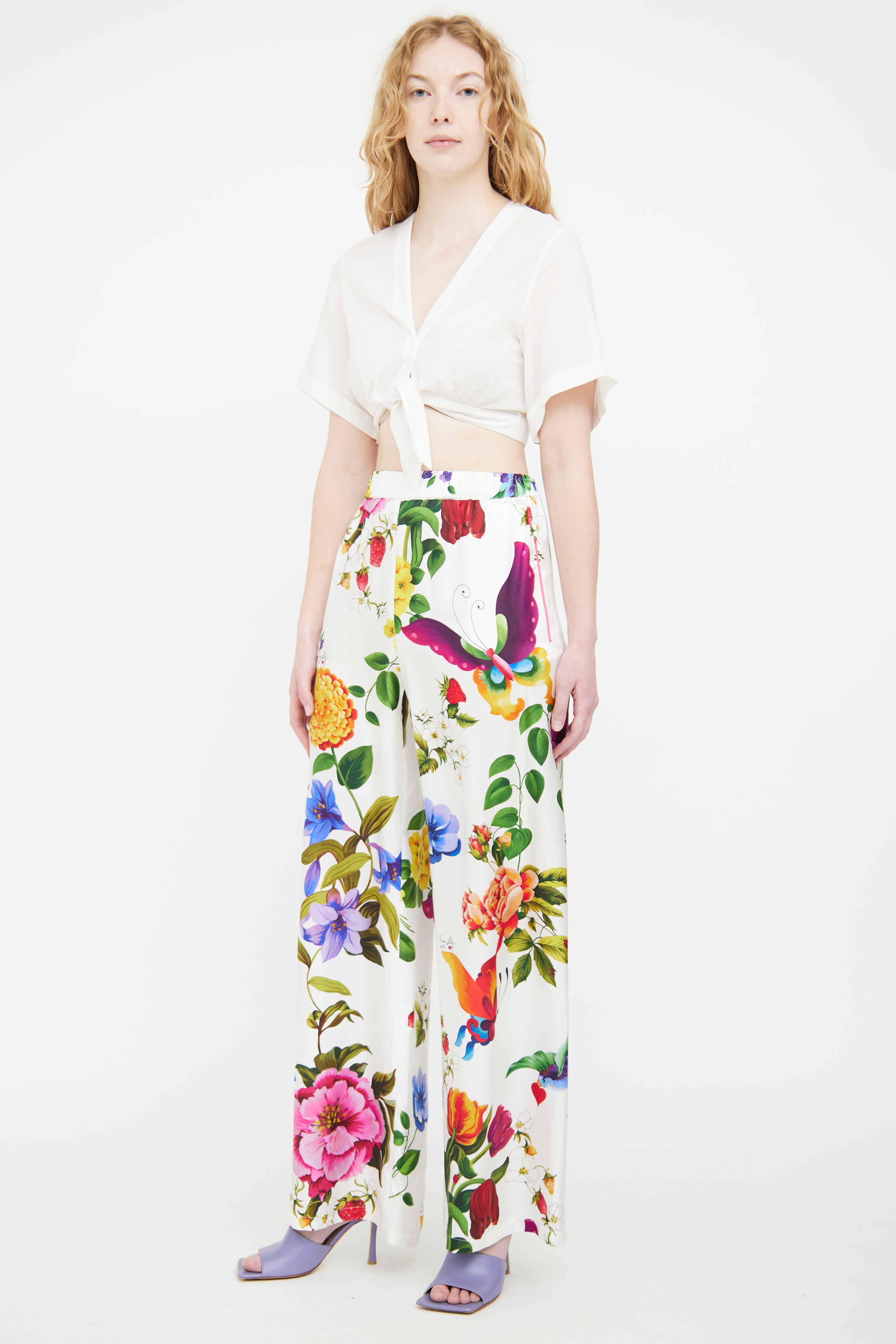 White & Multicolour Silk Floral Trouser US 10 Size Guide