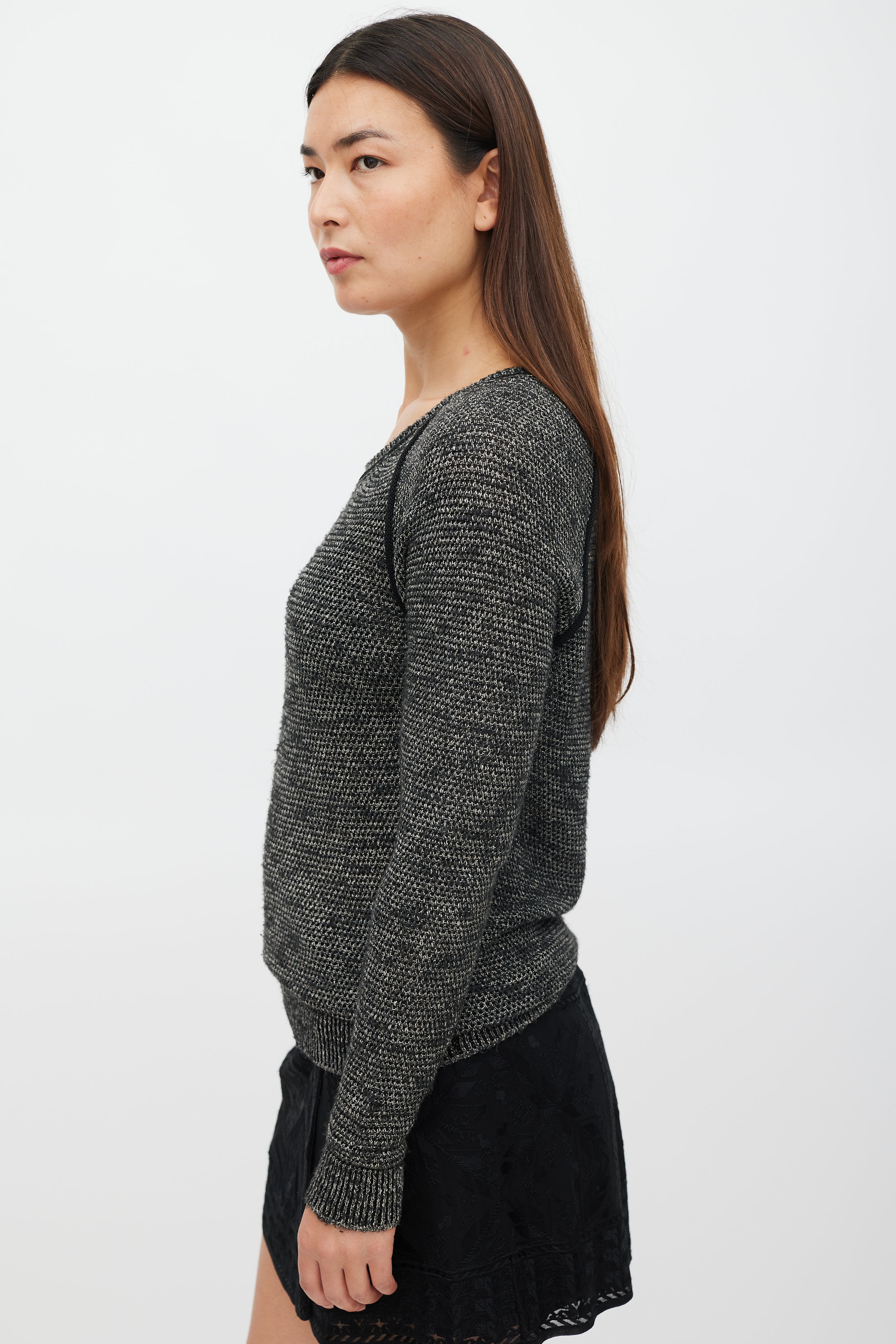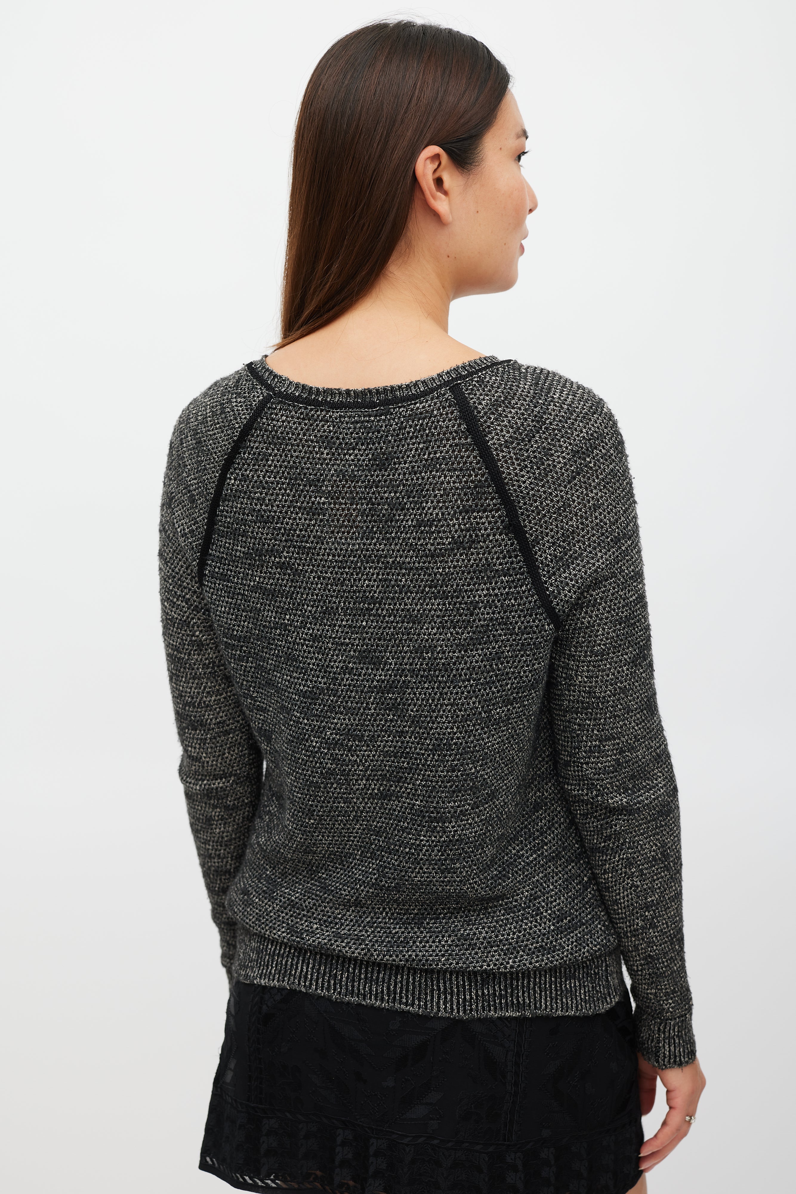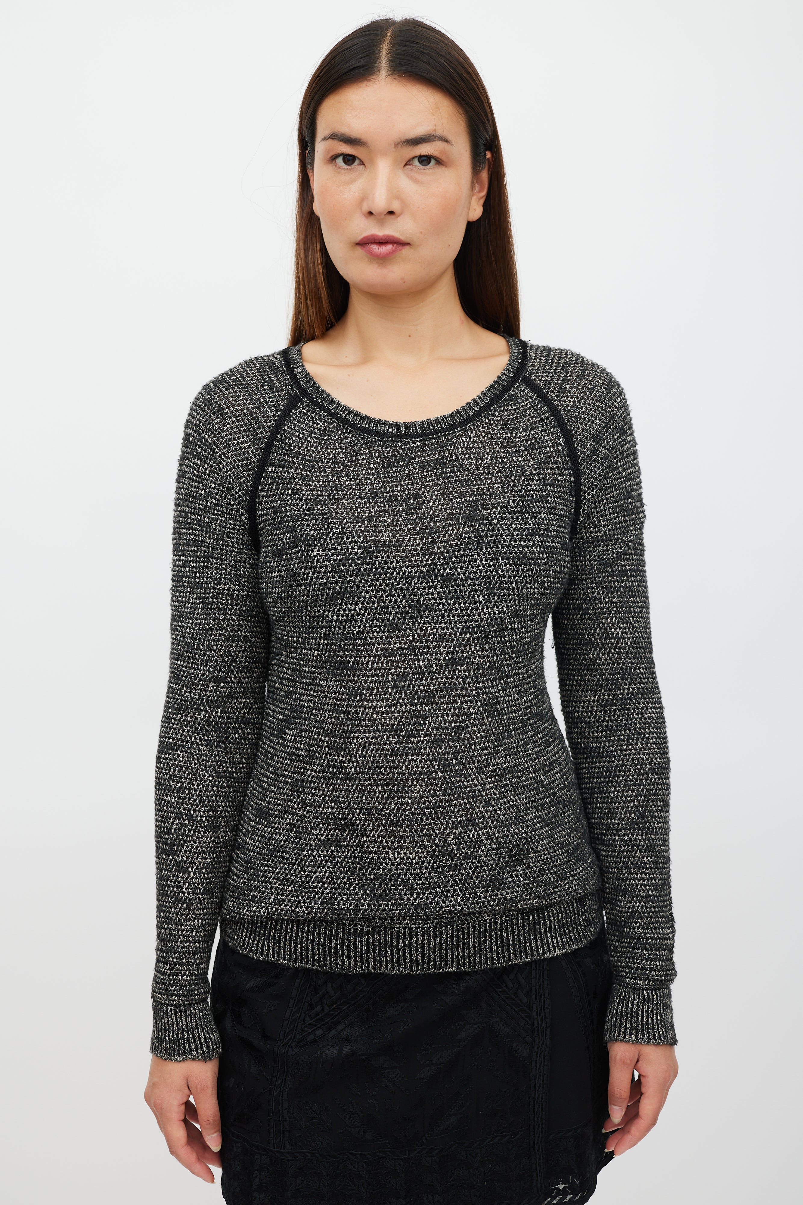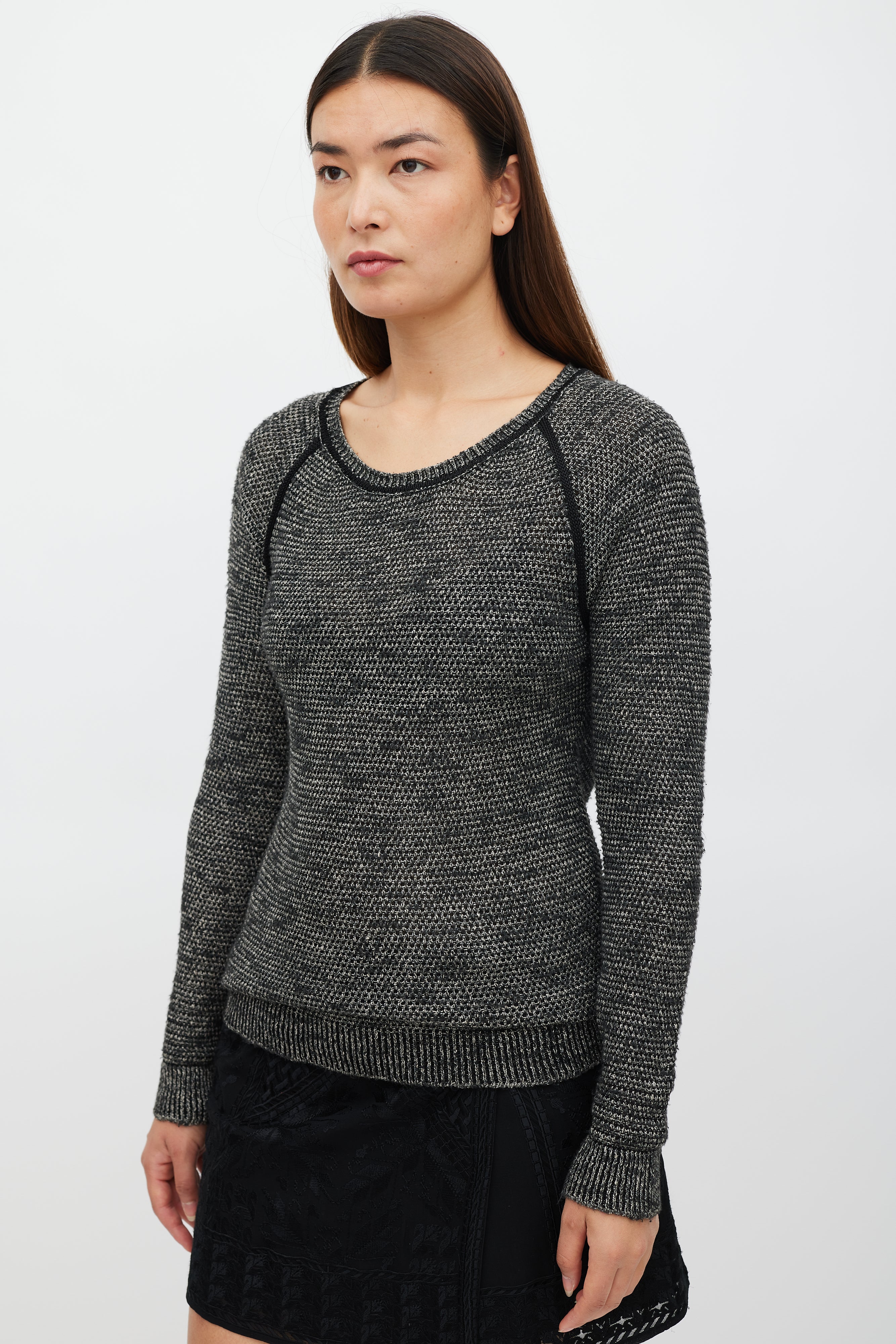 Pre-owned Isabel Marant grey knit sweater featuring a round neckline, long sleeves, black piped trim, and ribbed hem.