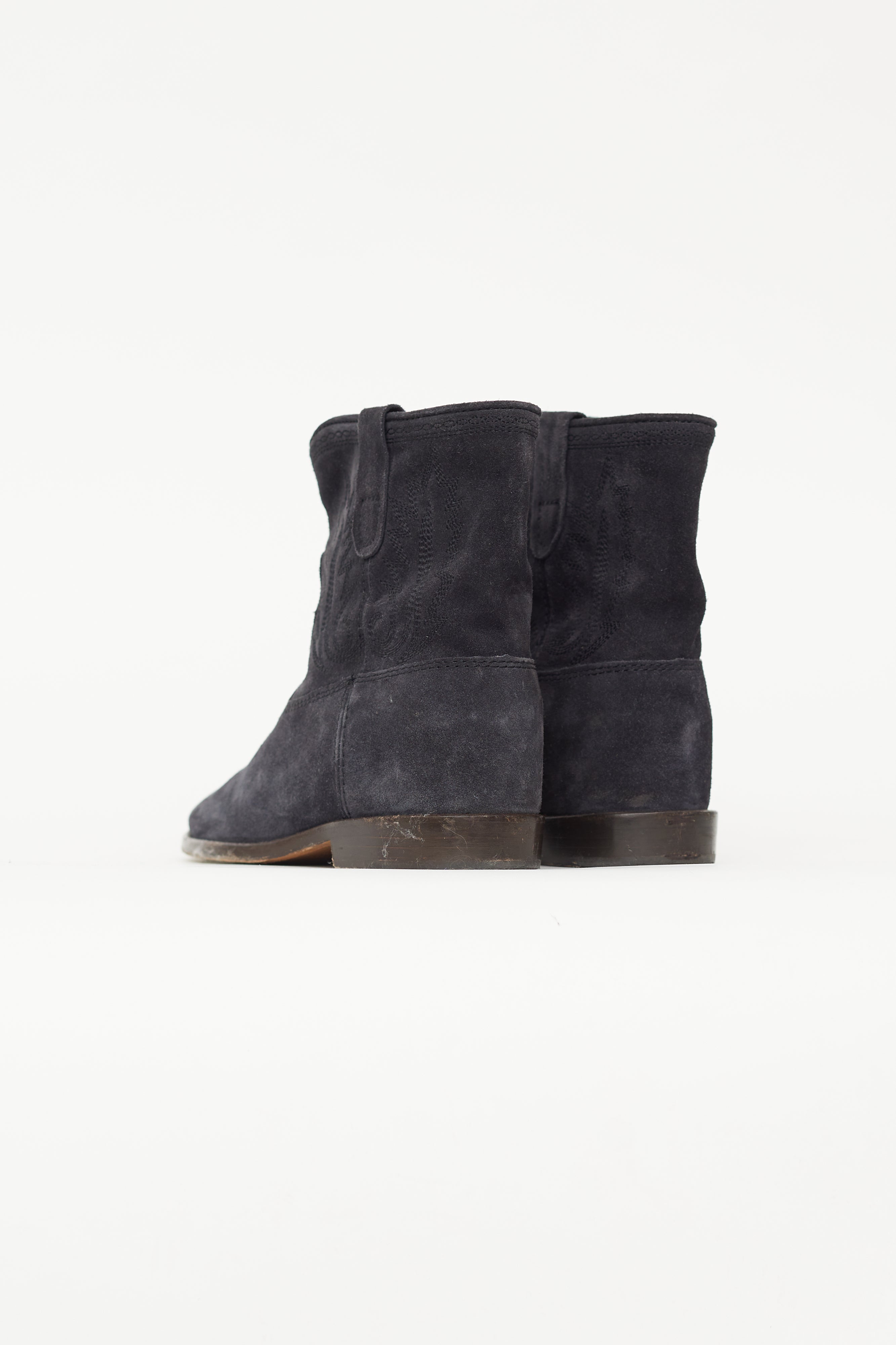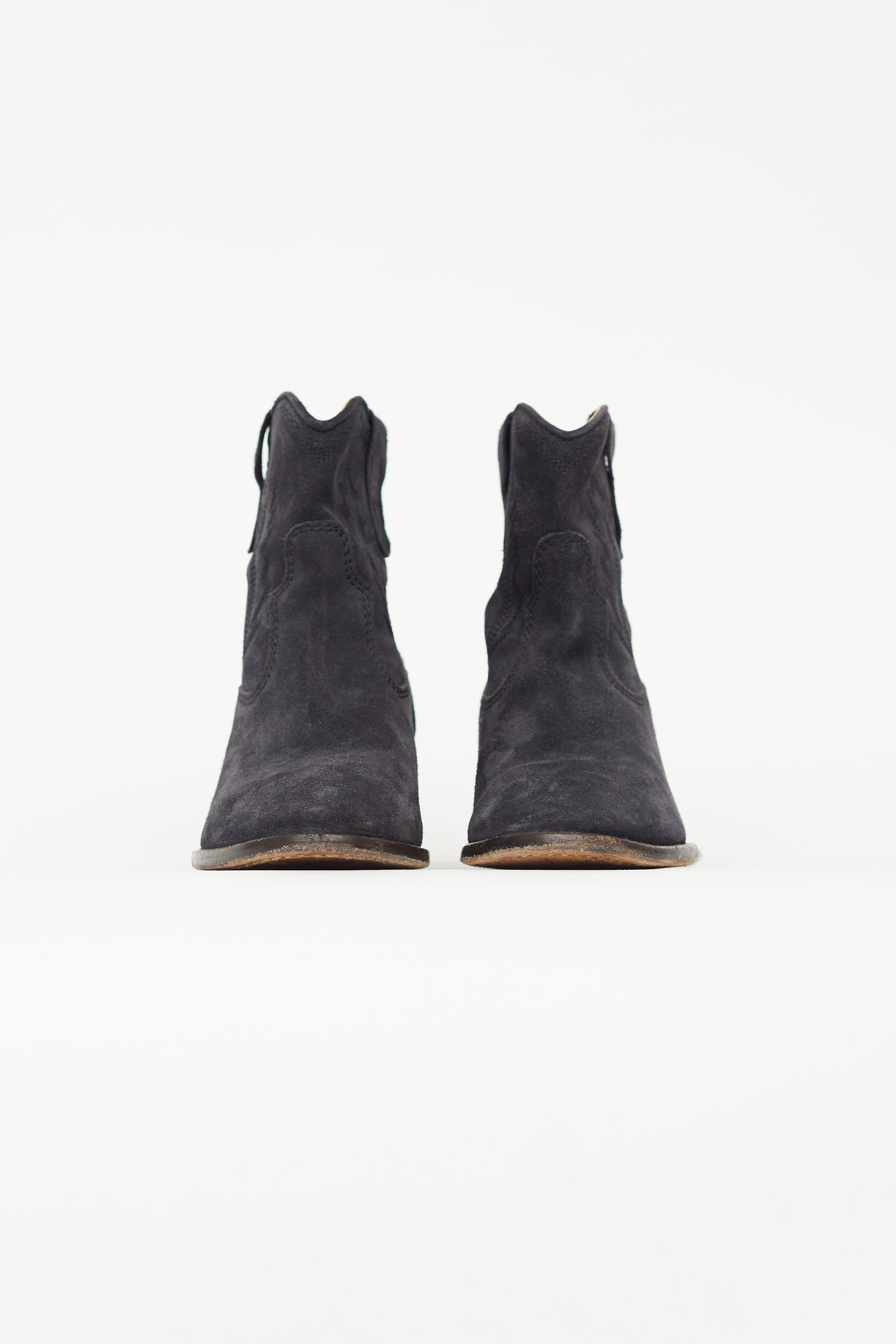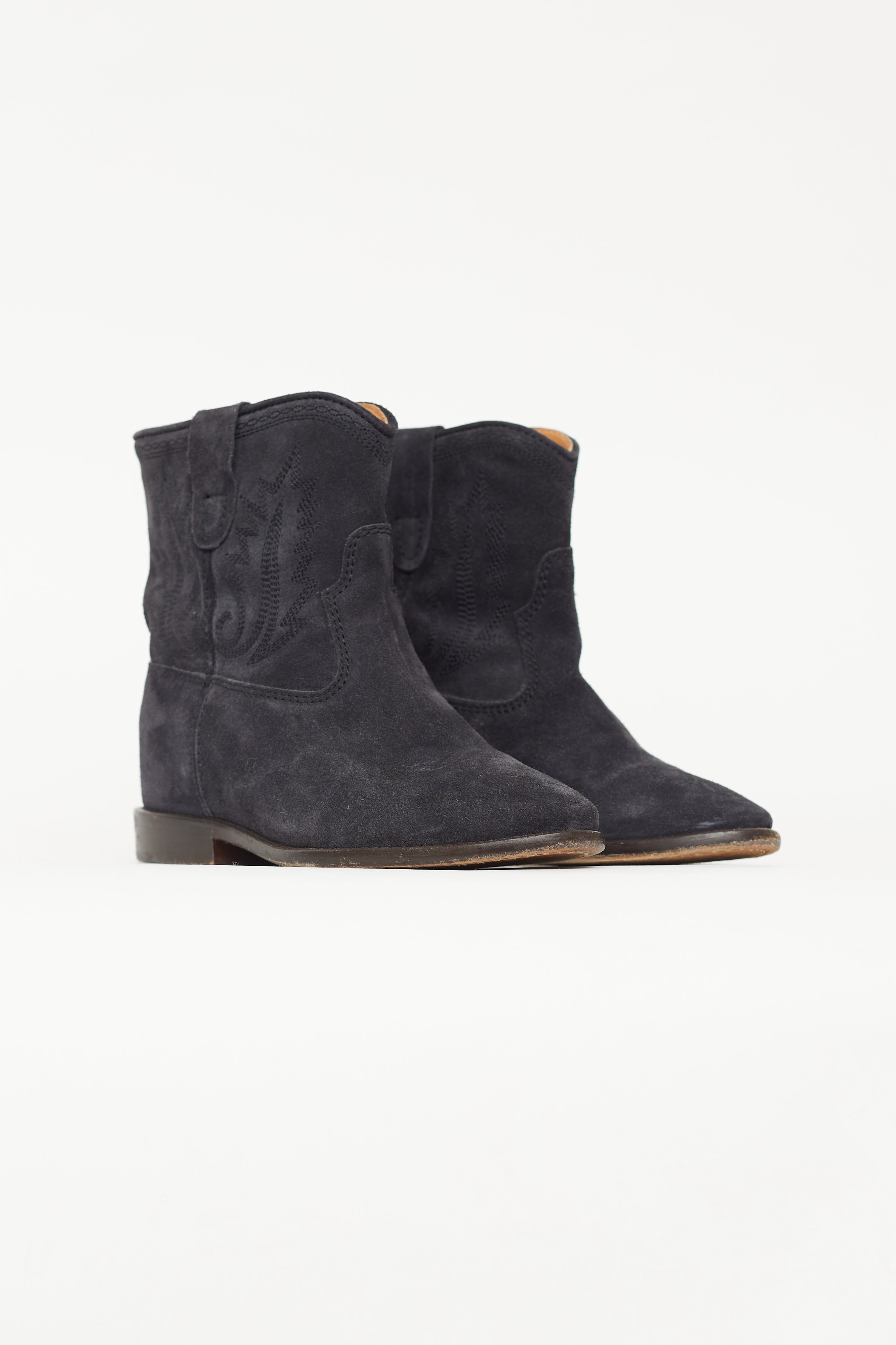 Navy Suede Ankle Cowboy Boot FR 35 Size Guide