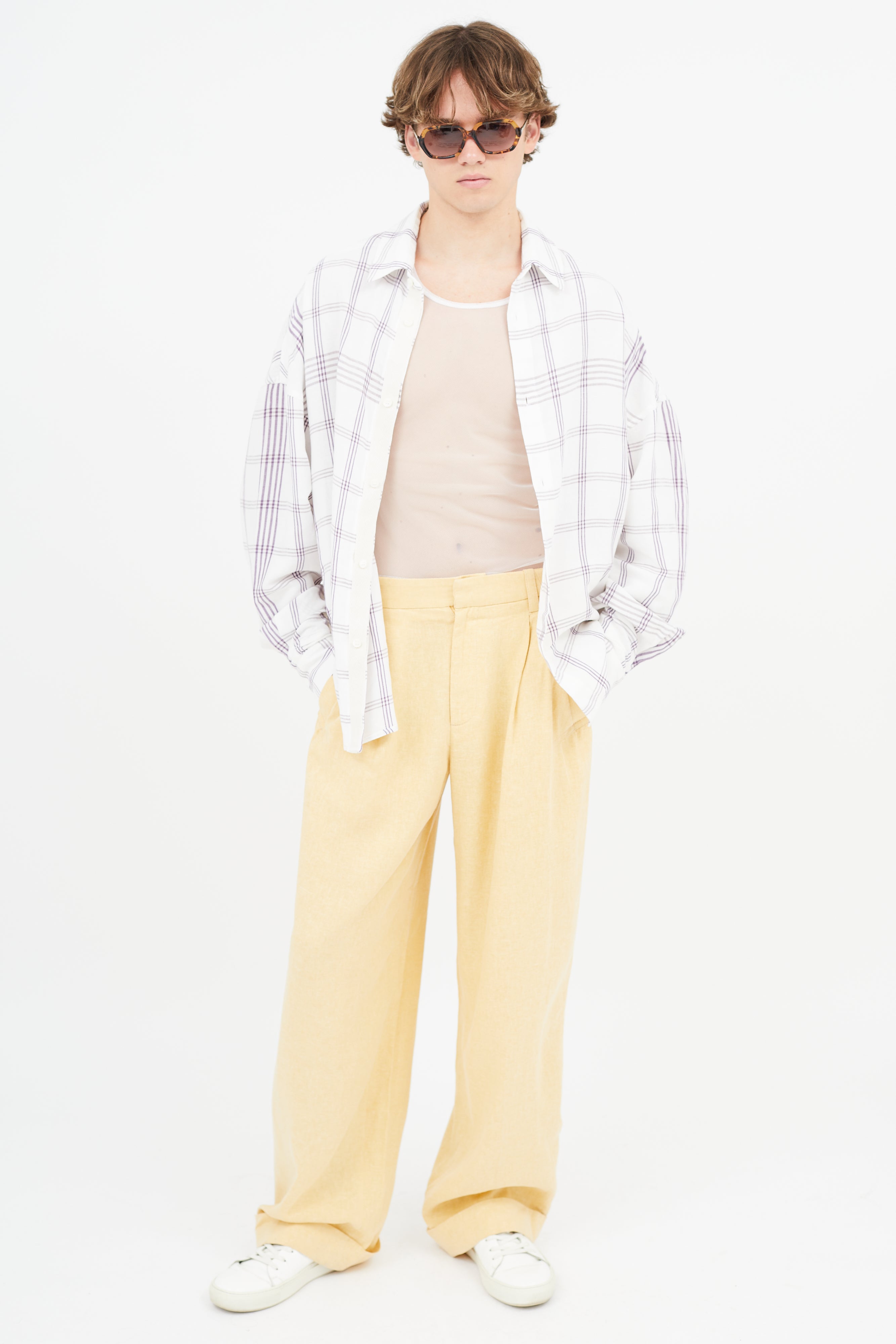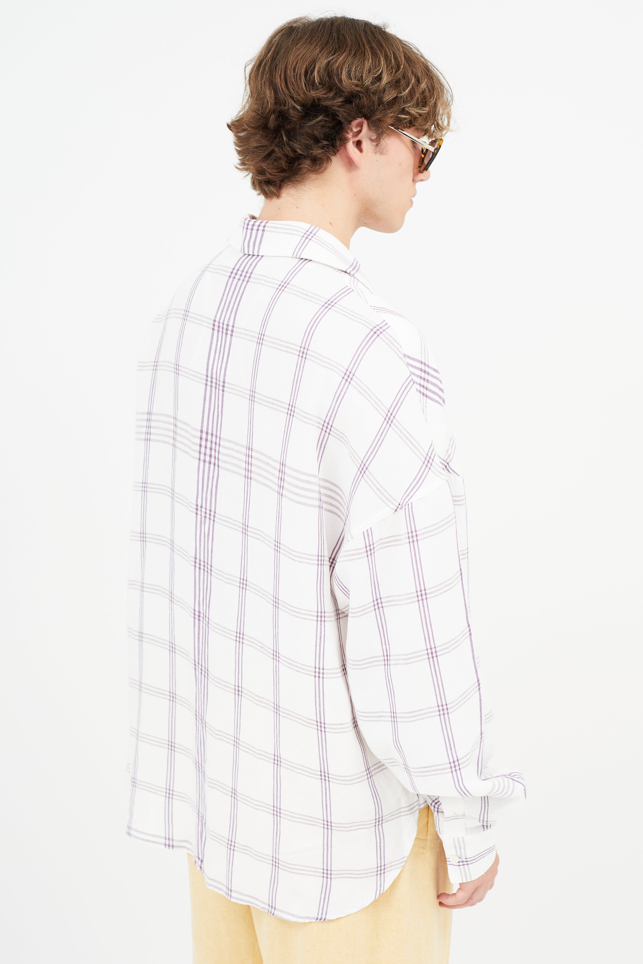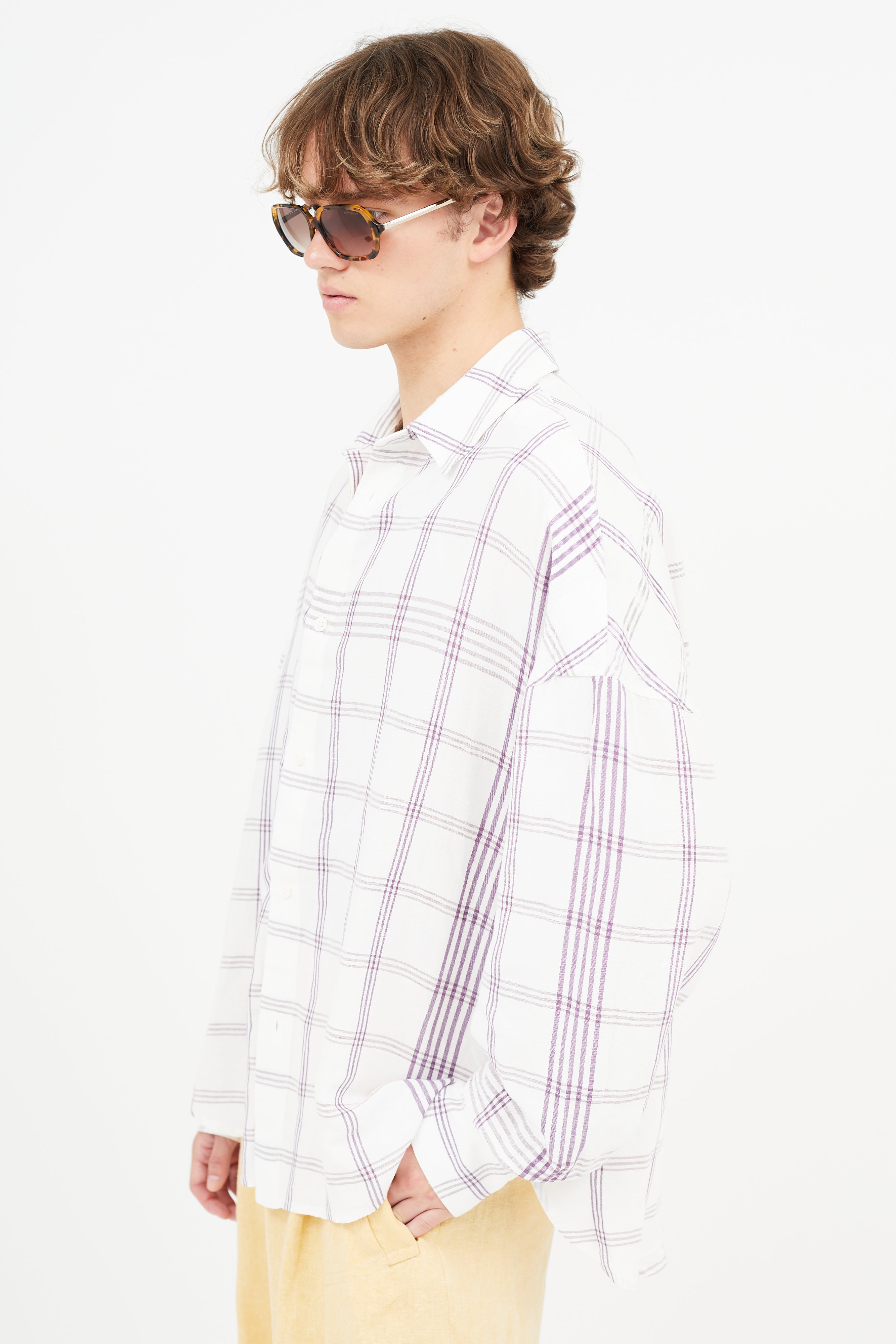 Pre-owned Jacquemus white La Chemise Santon shirt featuring classic collar, button up front, purple check print, cream webbed button placket, and buttoned cuffs.