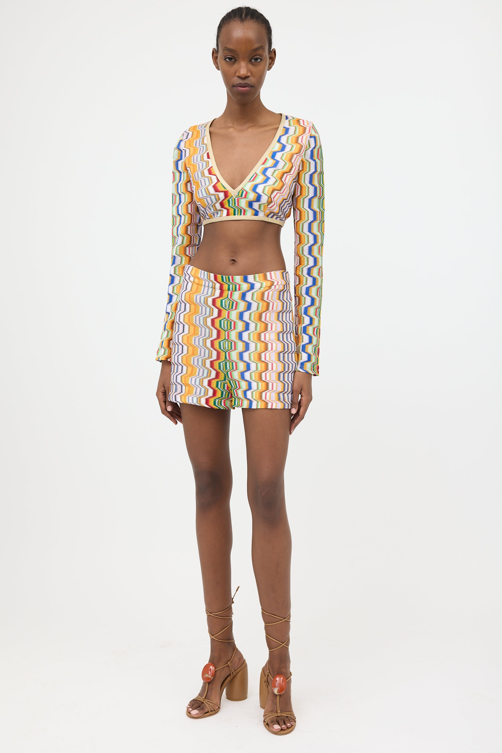 Pre-owned Alexis knit cropped top featuring multicolour geometric pattern, V-neckline, and concealed back zip. Lined.
