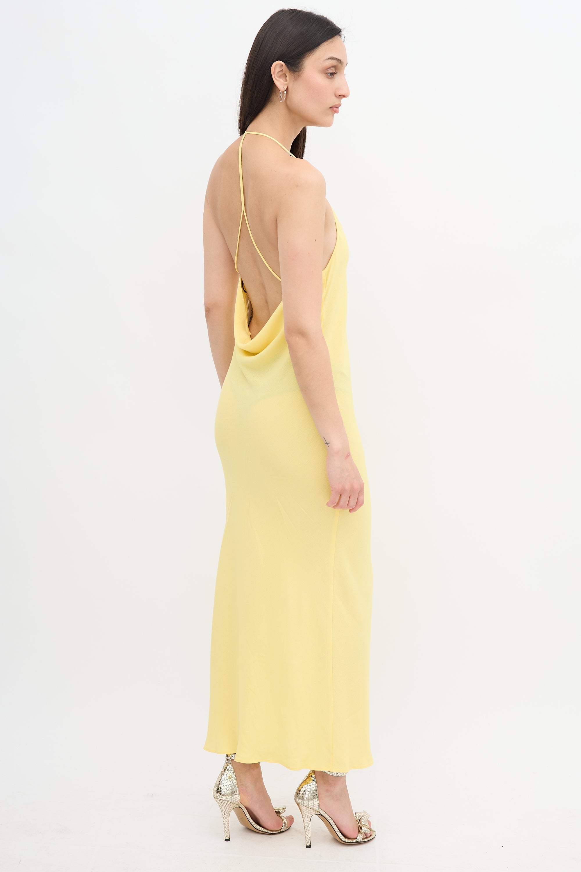 Pre-owned Ba&sh Fame maxi slip dress featuring cowl front and back, T-strap, and left side vent.