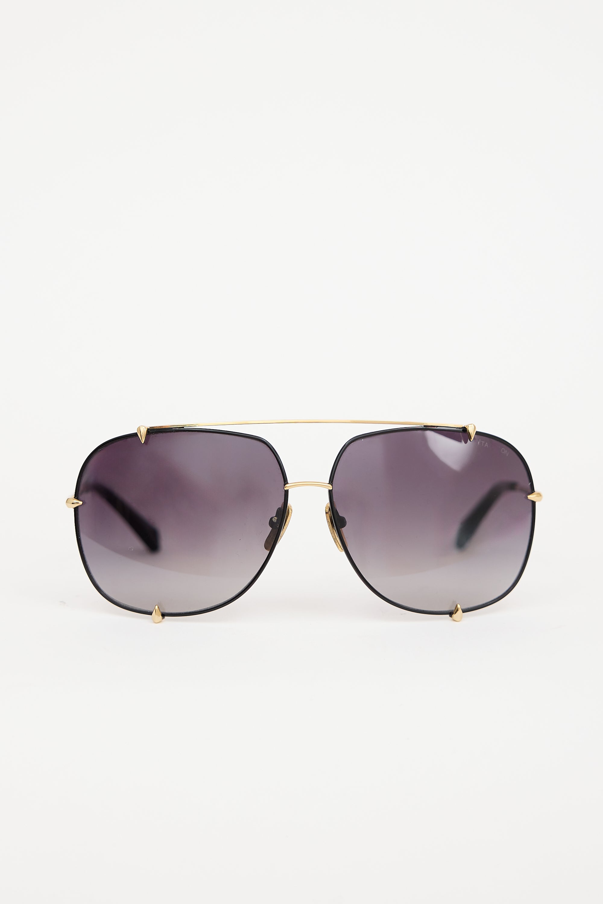 Pre-owned Dita Talon sunglasses featuring grey tinted lenses, gold tone wire aviator frame, and talon accent at rim.