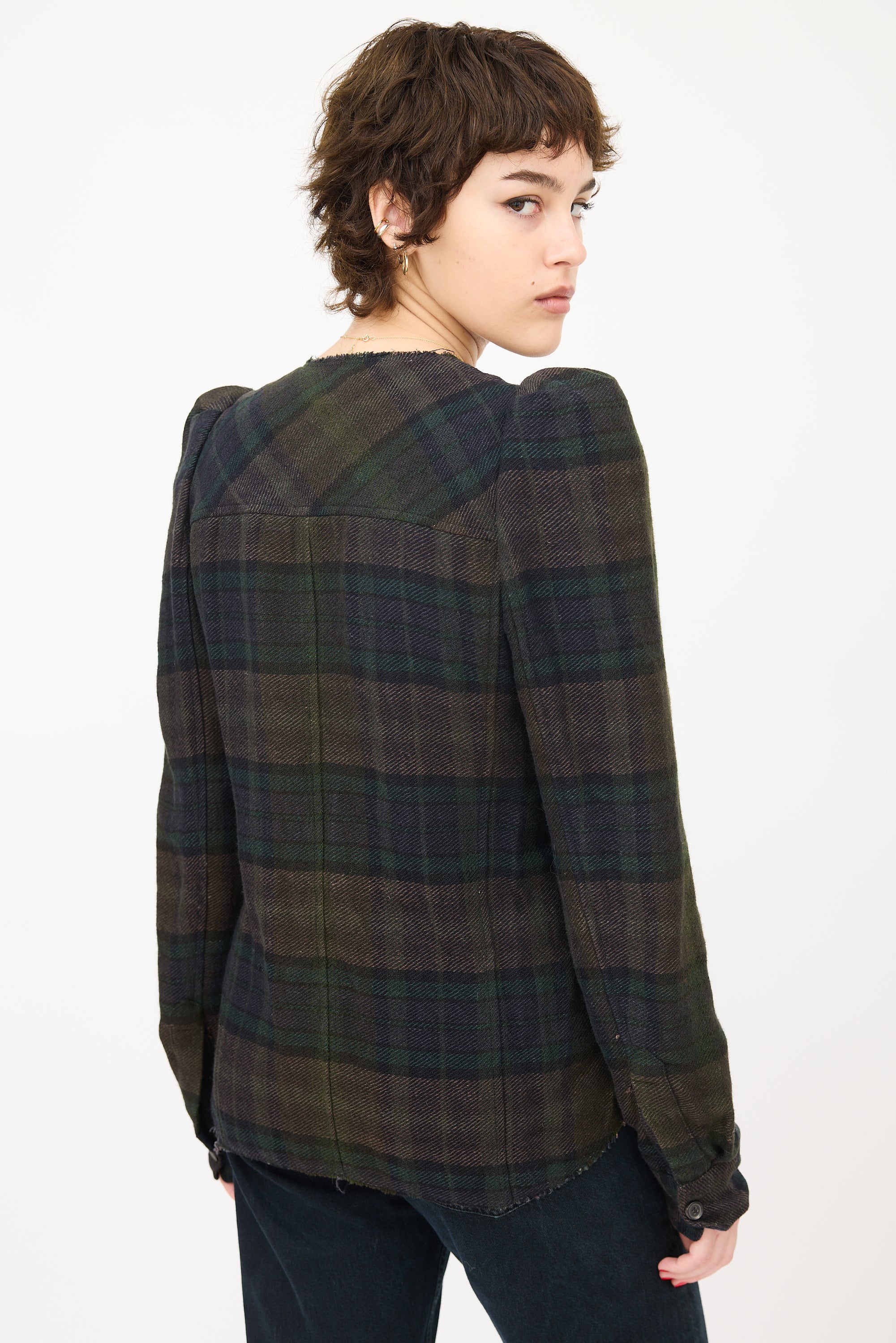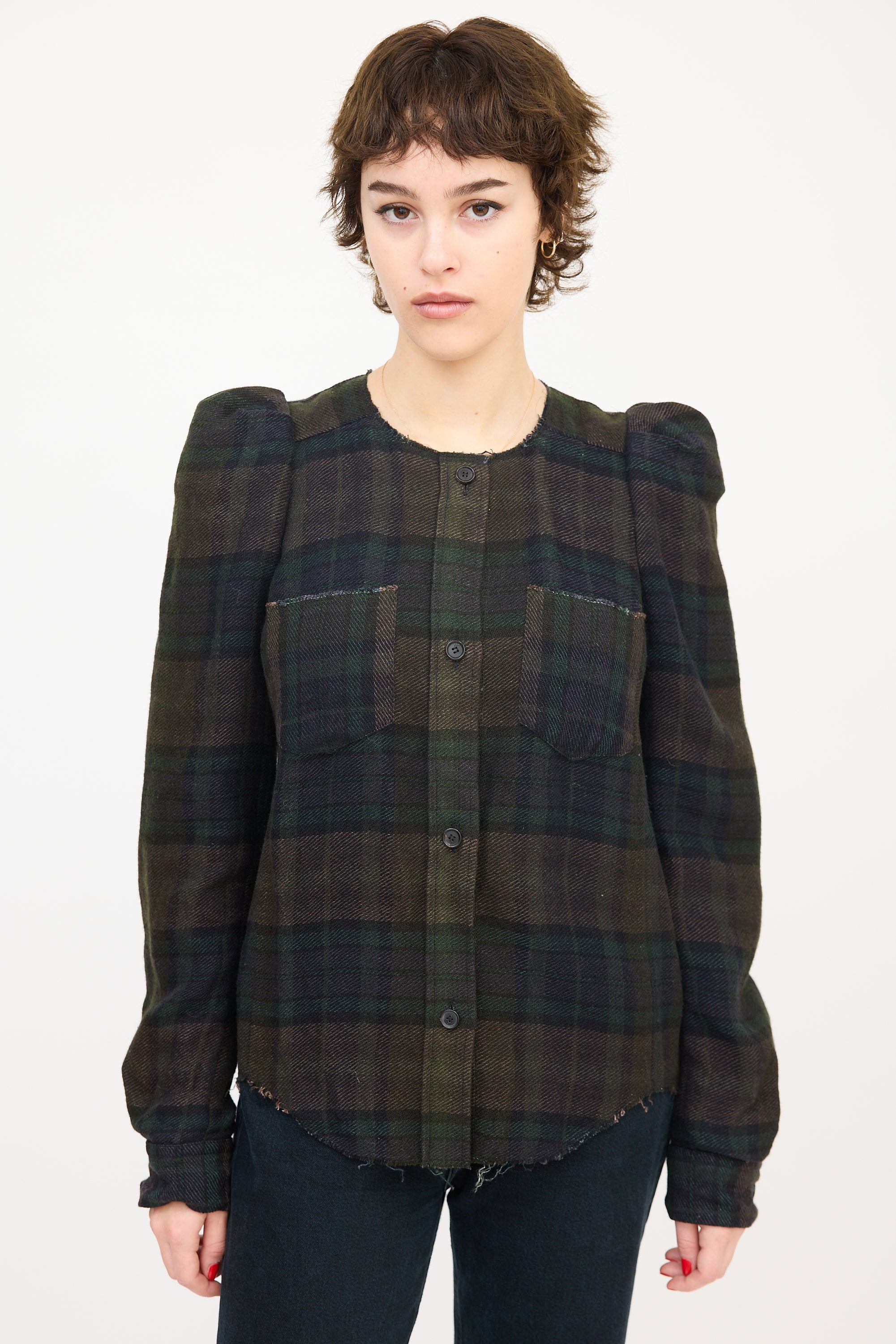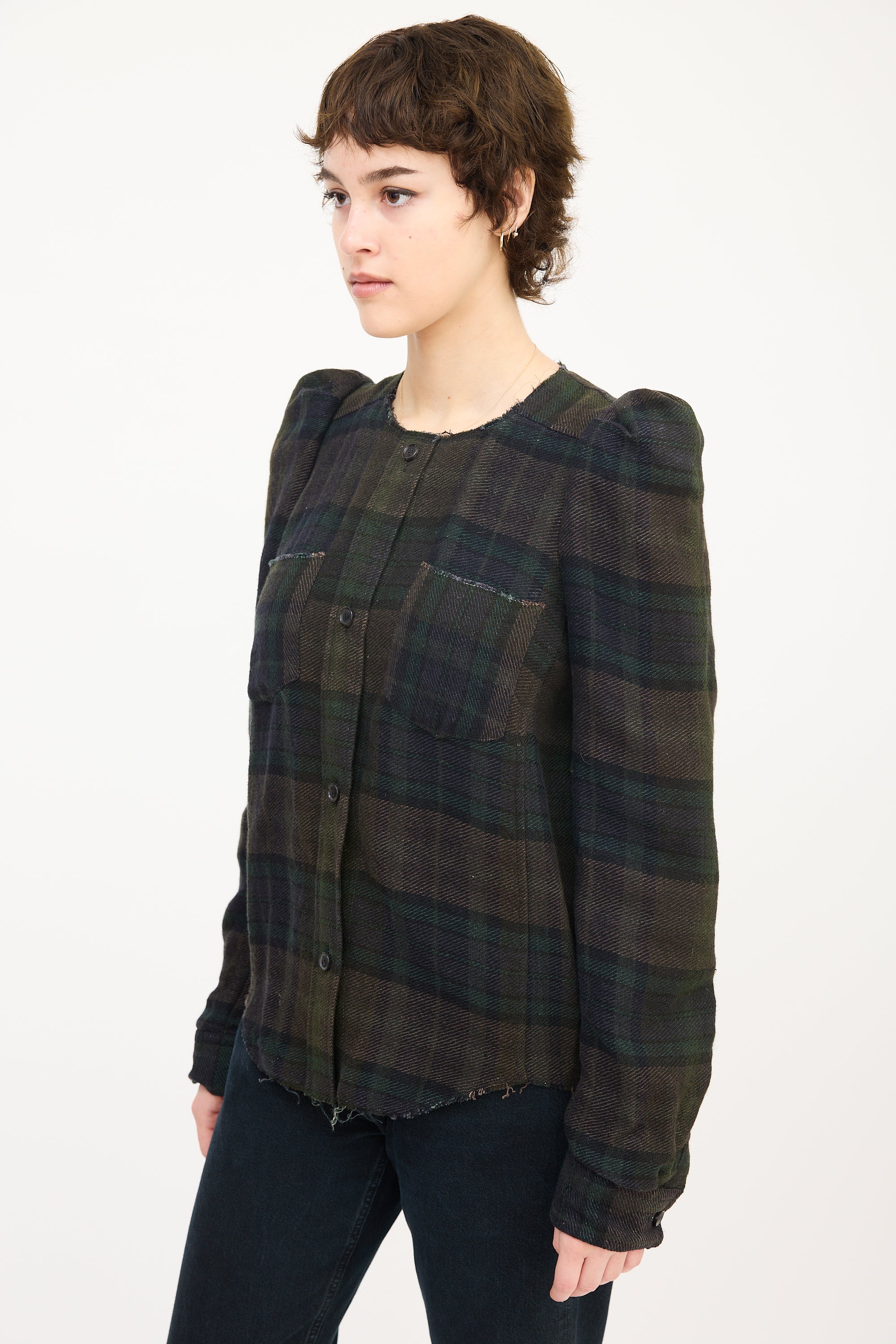 Dark Green Linen & Wool Puff Sleeve Plaid Shirt FR 38 Size Guide