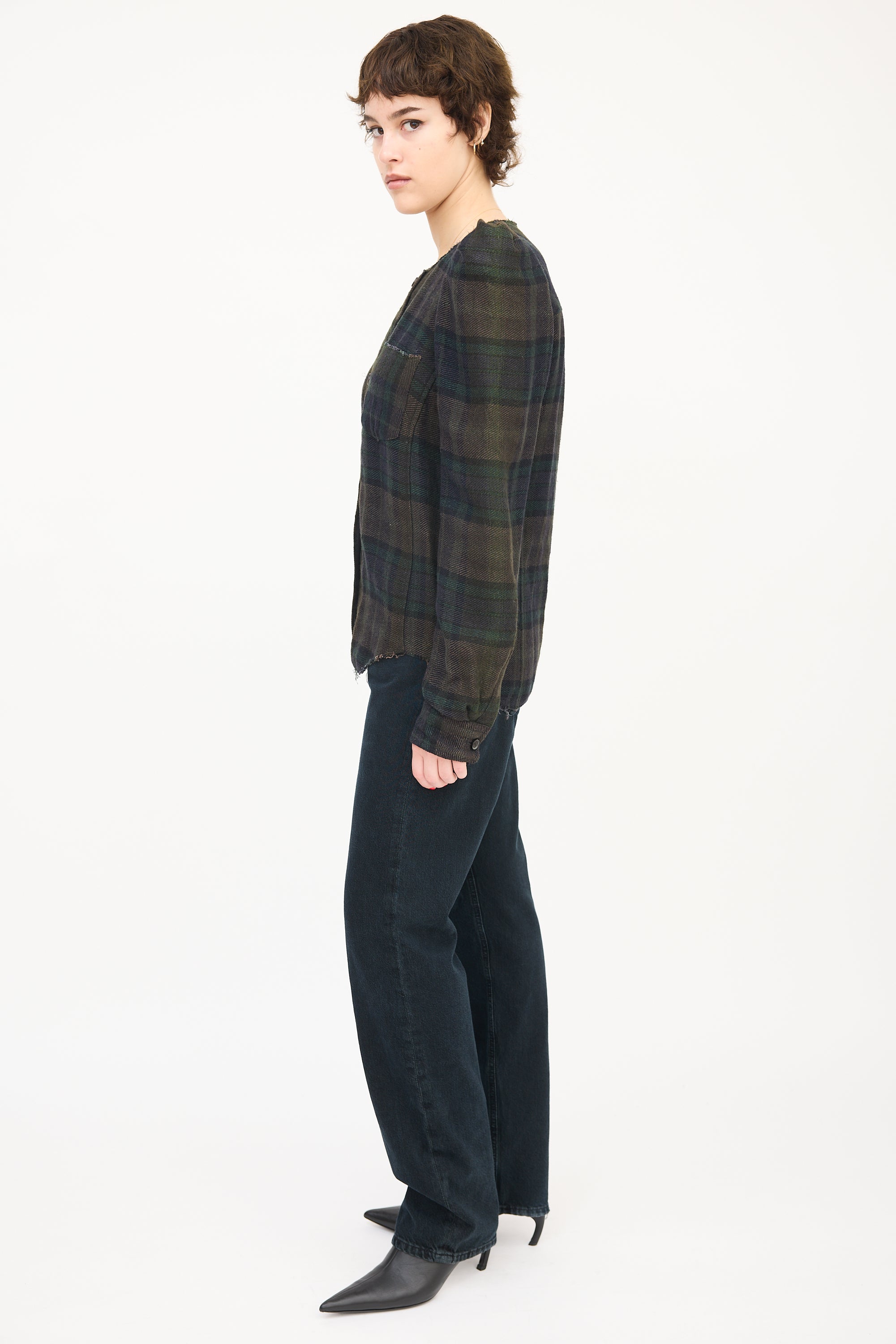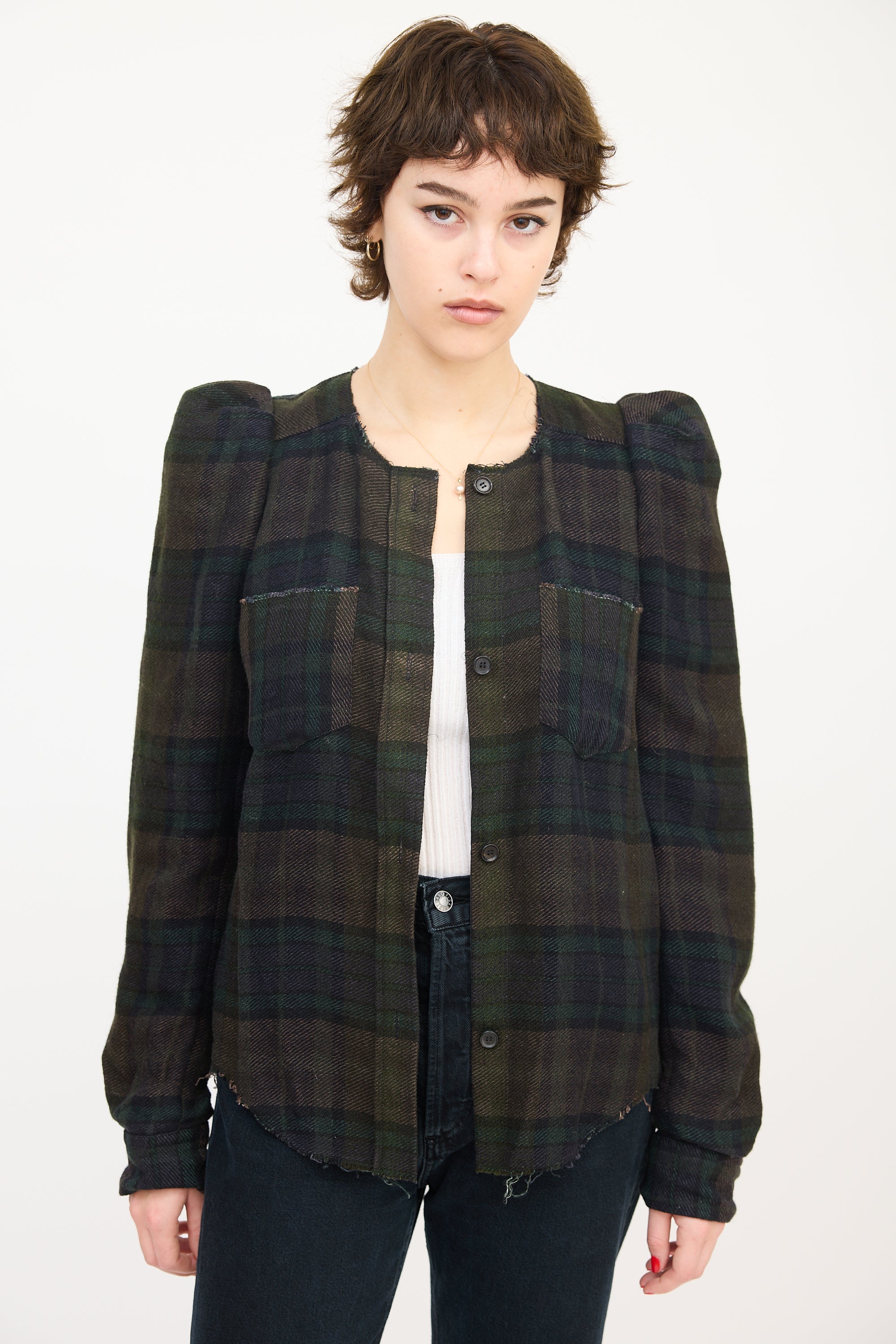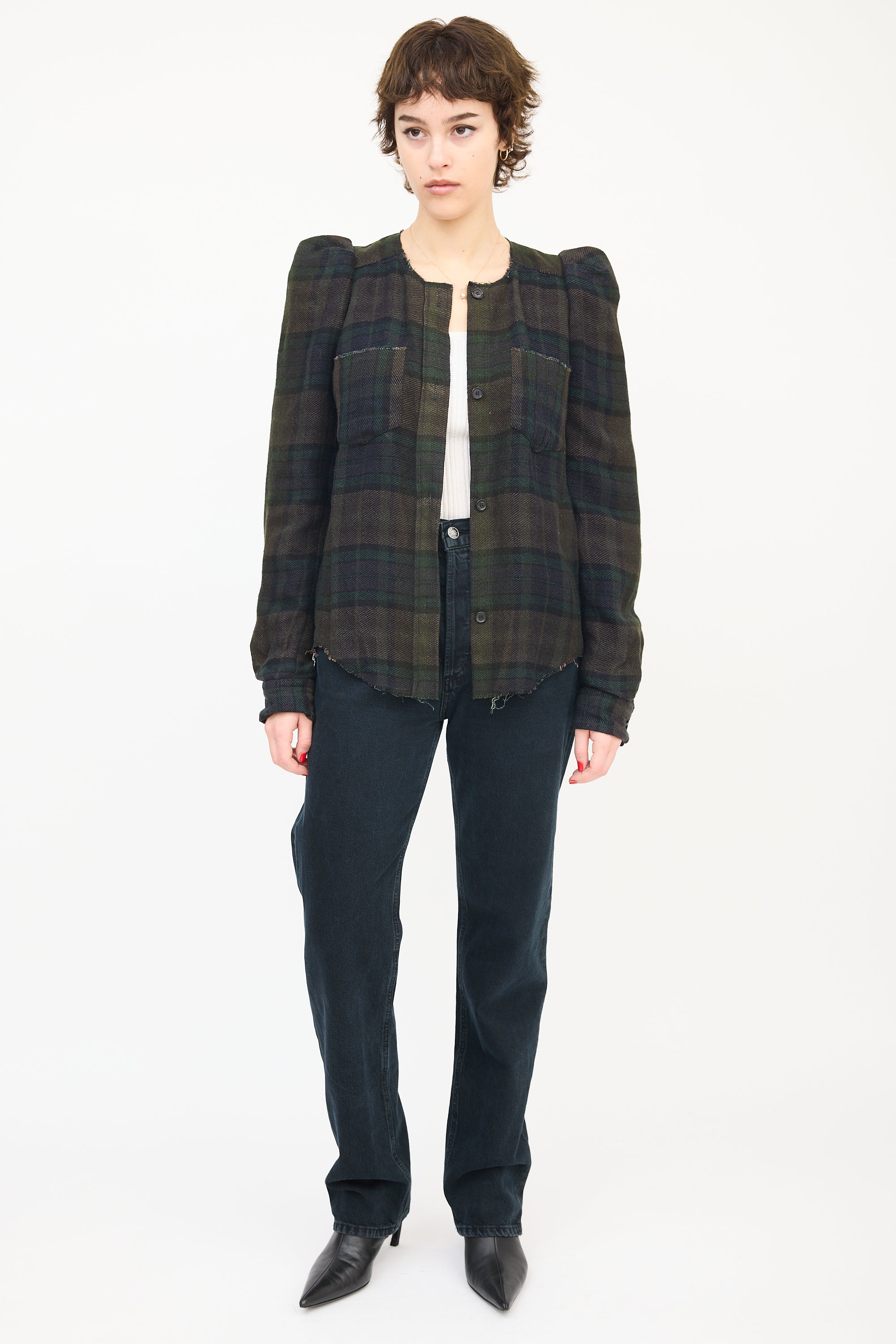 Dark Green Linen & Wool Puff Sleeve Plaid Shirt FR 38 Size Guide