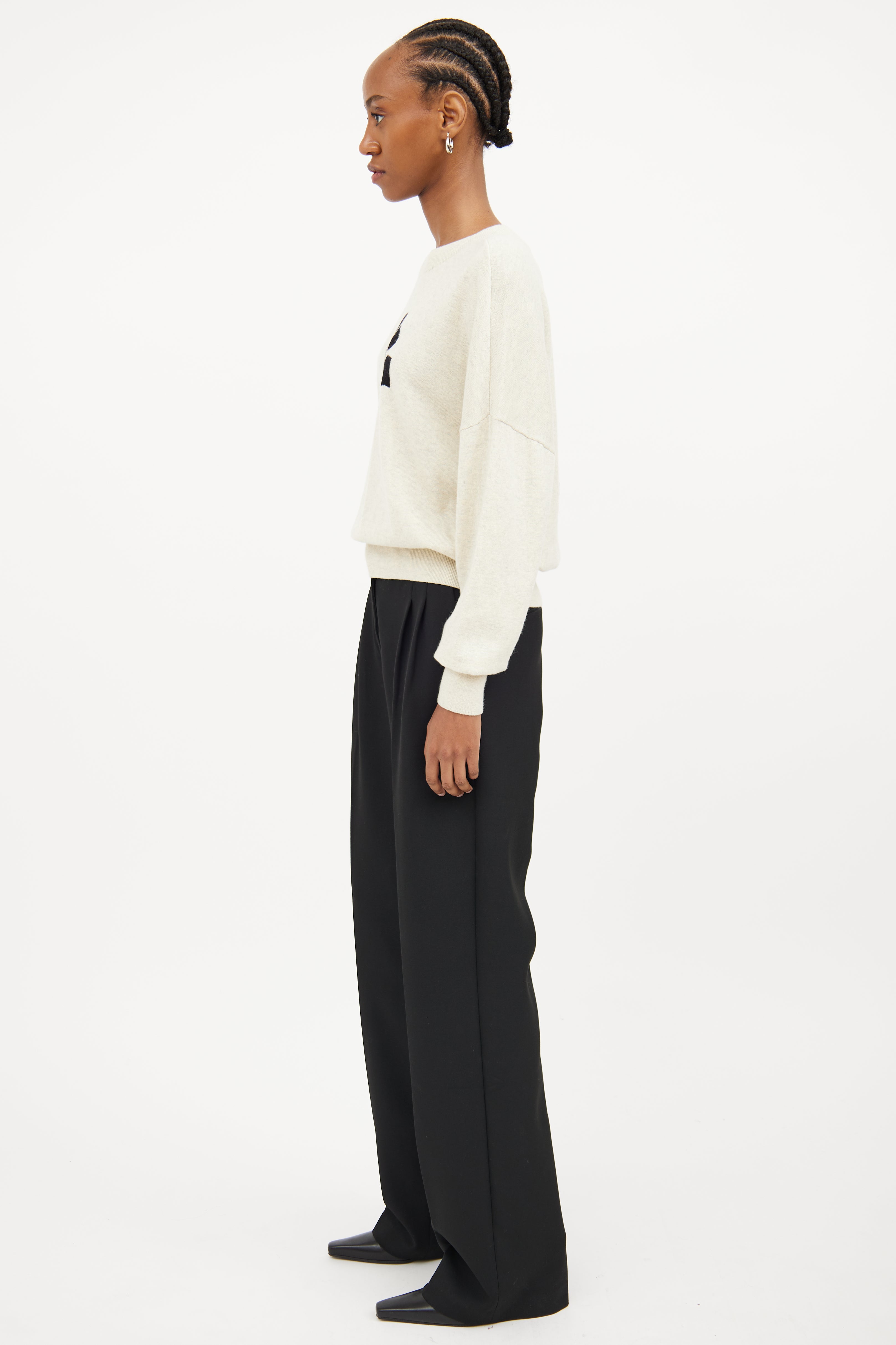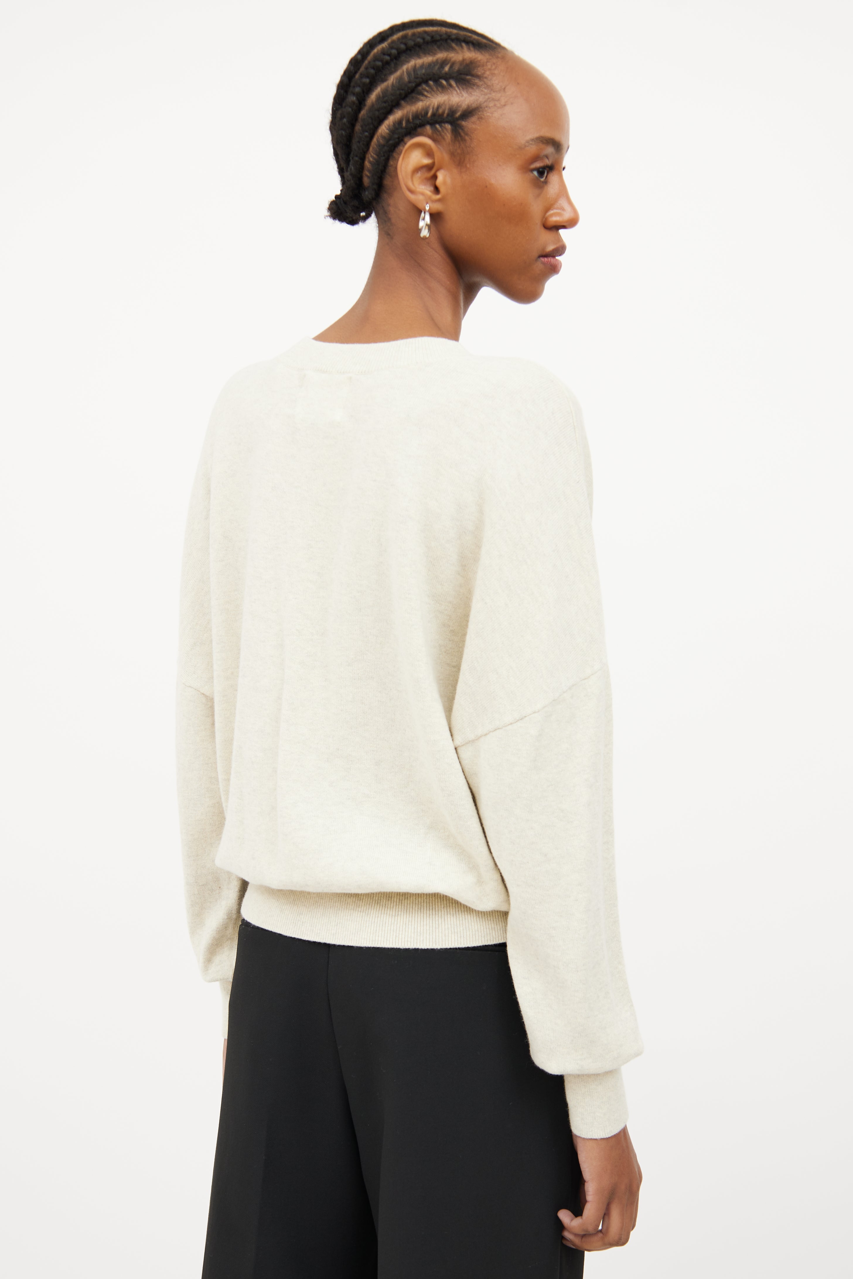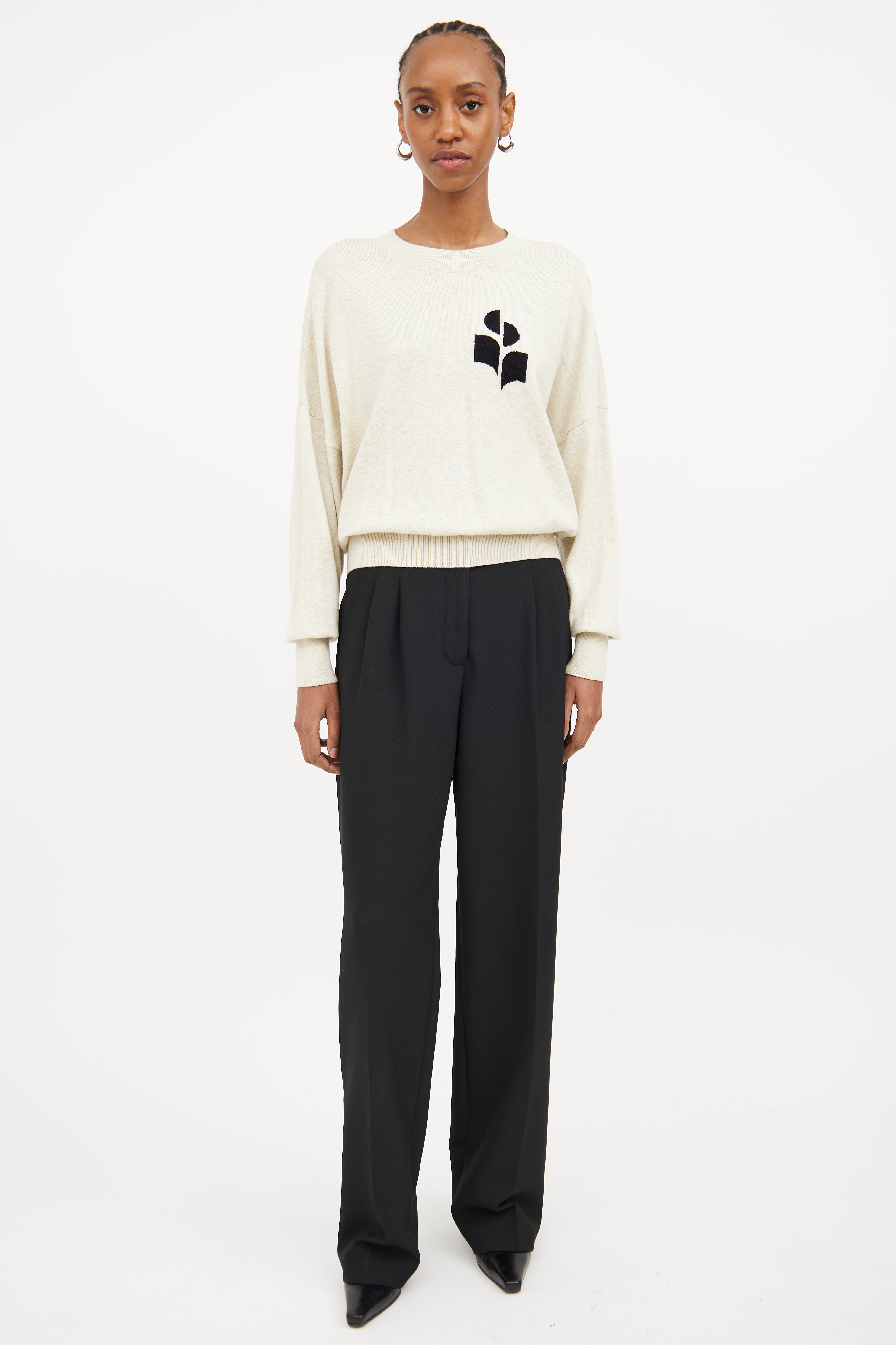 Pre-owned Isabel Marant Étoile cream long sleeve sweater featuring ribbed crew neckline, black logo patch on left chest and ribbed cuffs and hem.