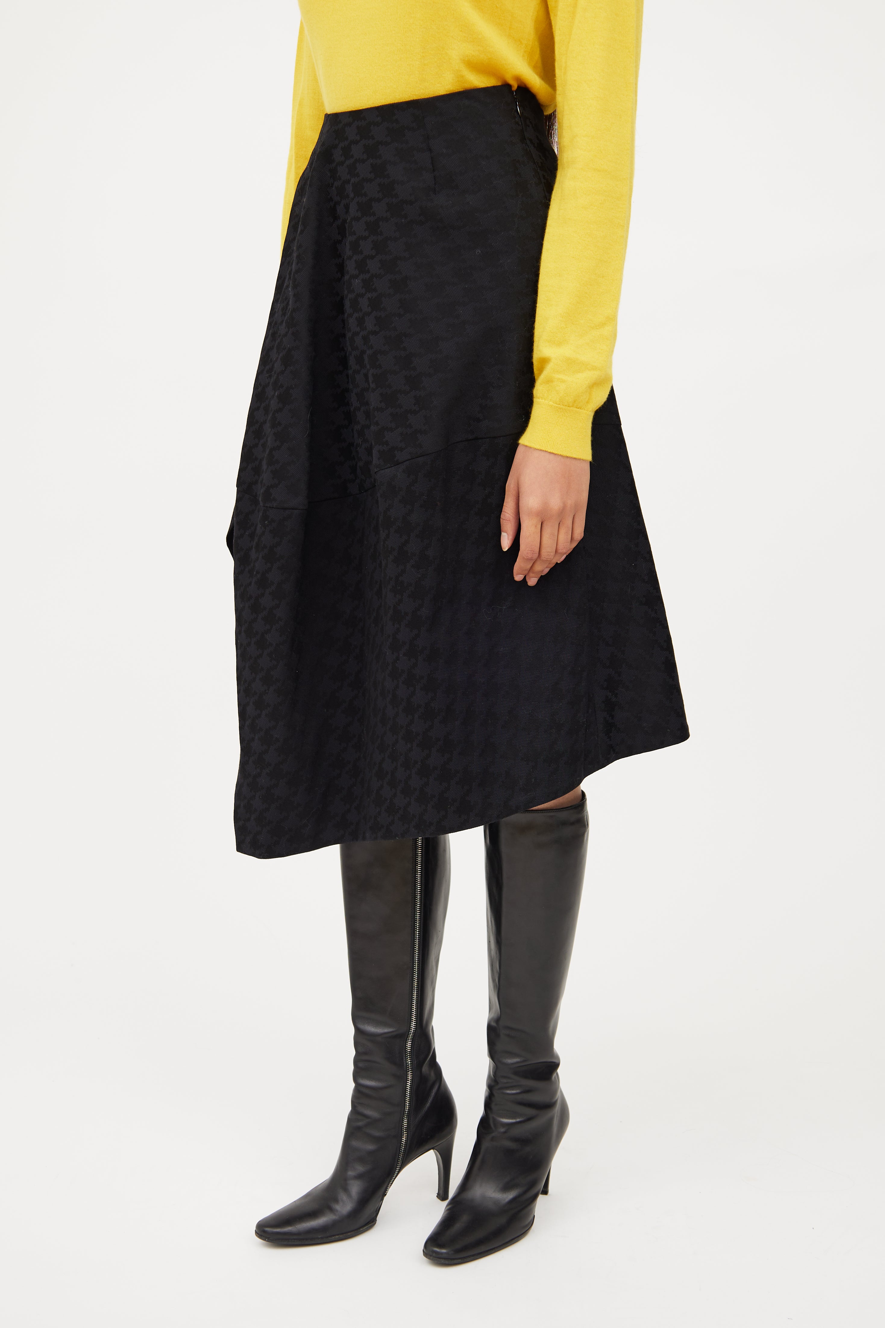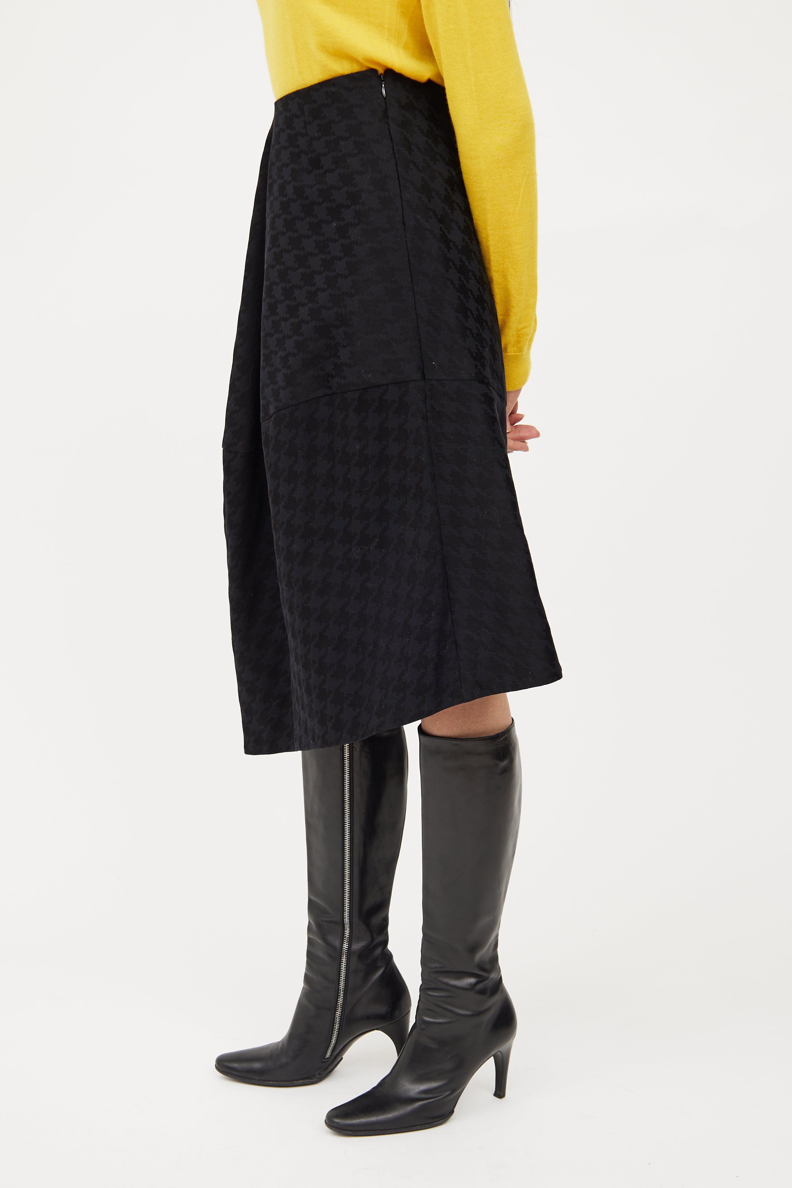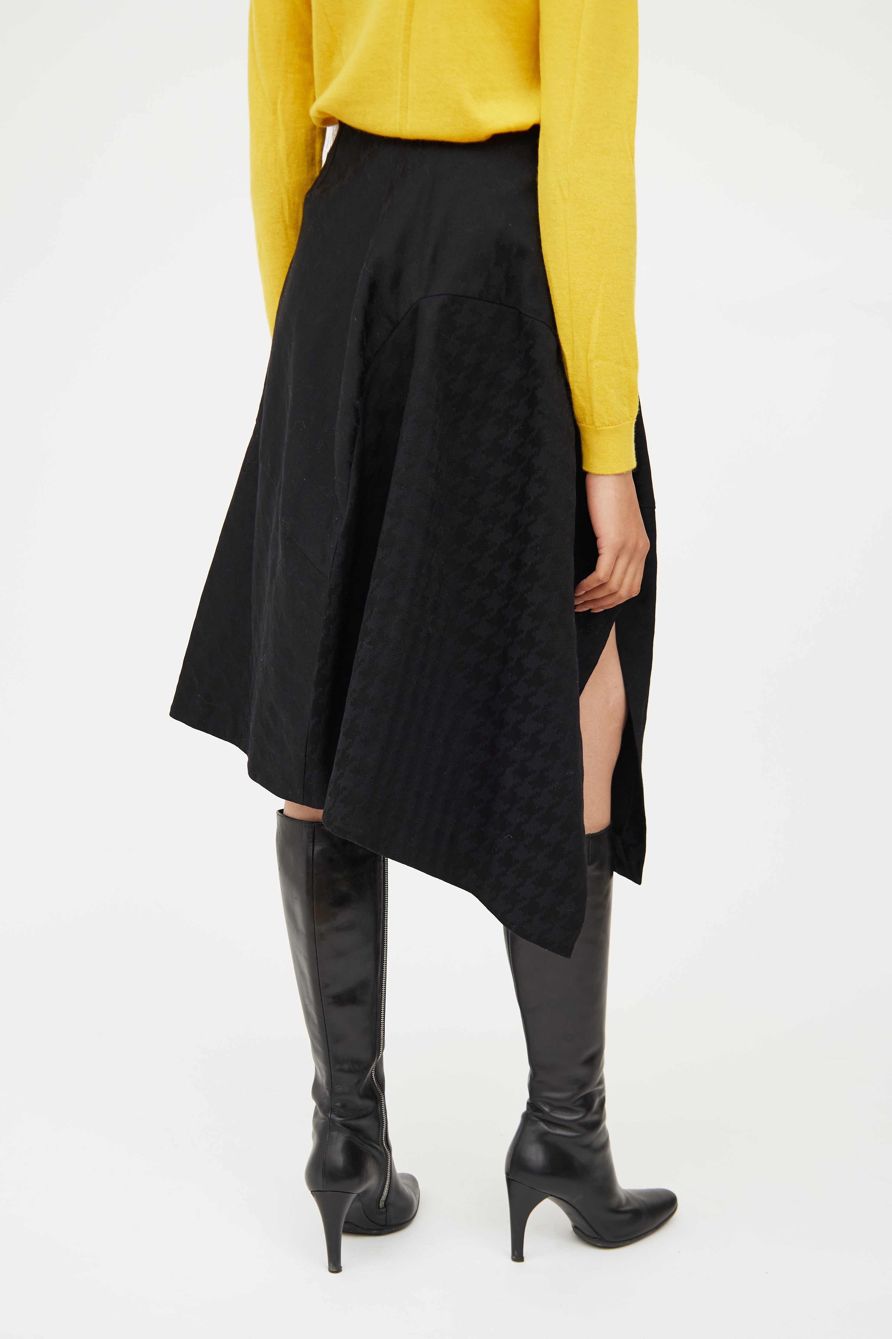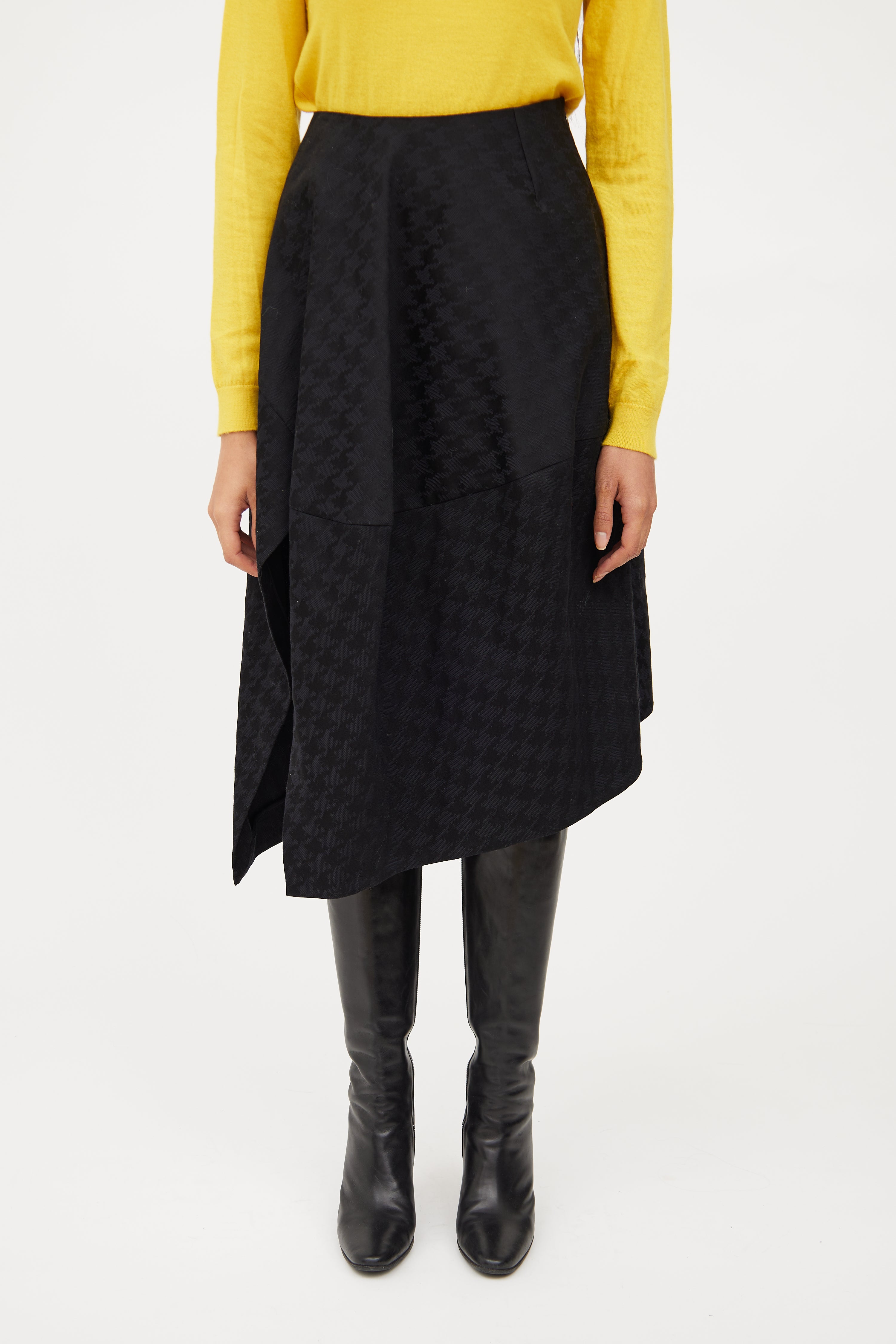 Pre-owned Stella McCartney black asymmetrical skirt featuring tonal houndstooth pattern, slit on front and concealed back zip entry.