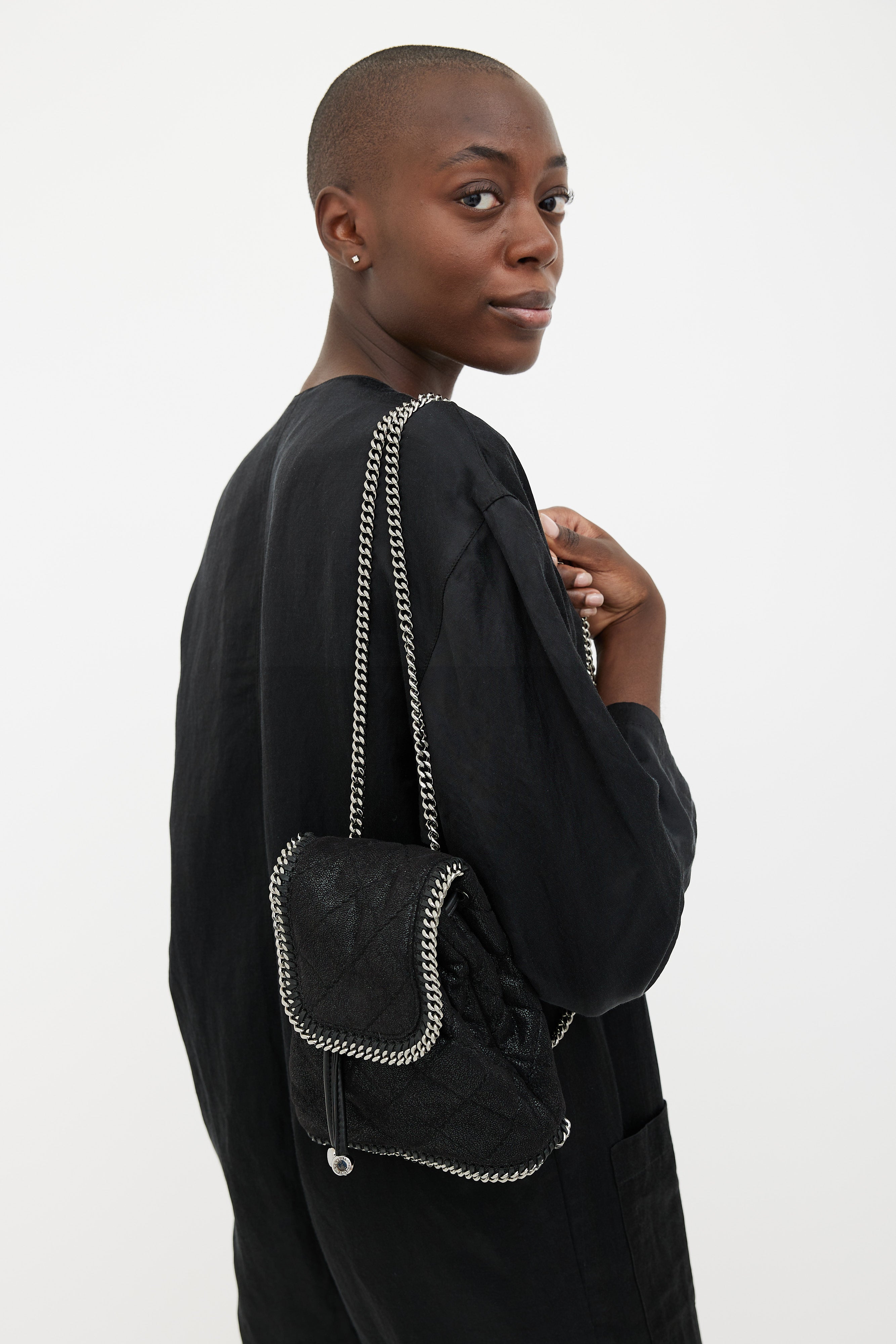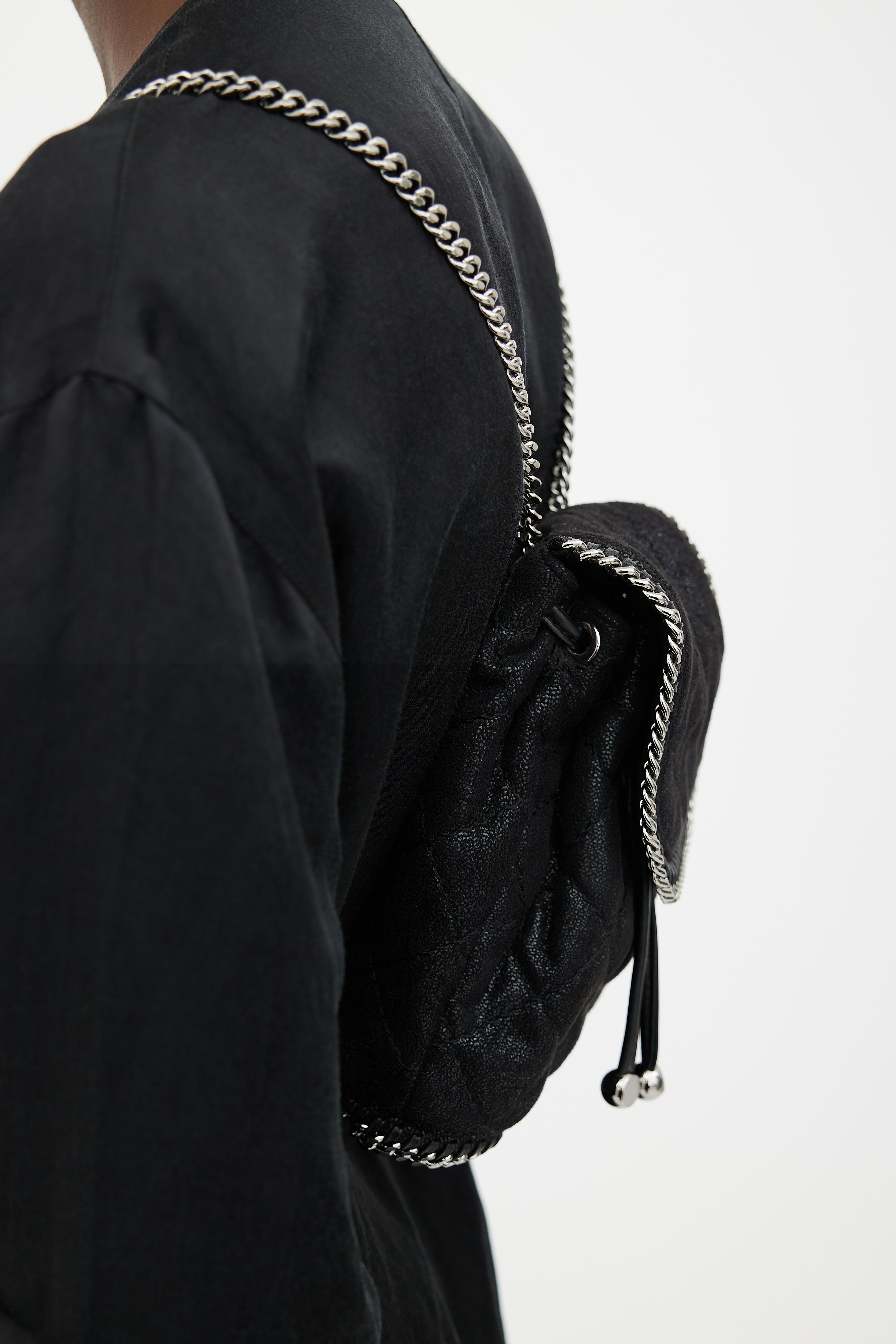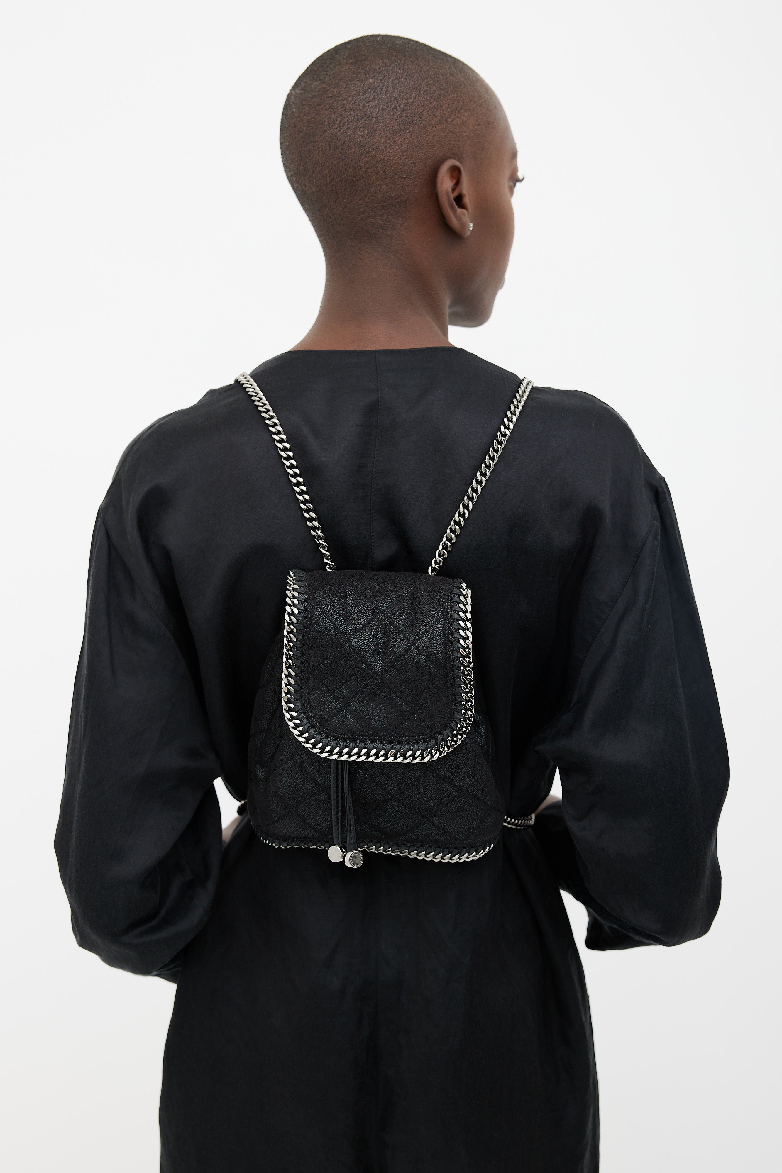 Black Quilted Mini Falabella Backpack