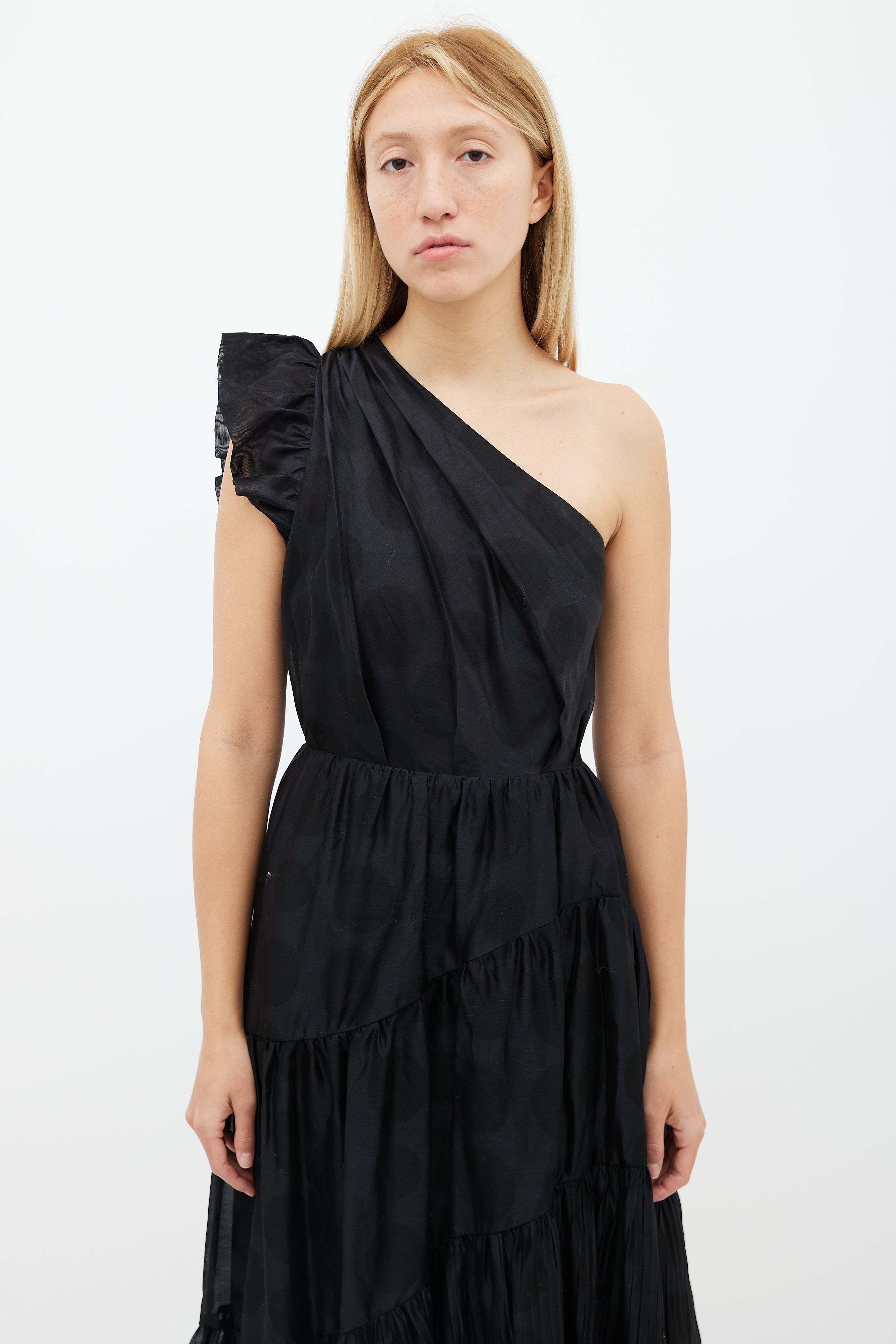 Black One Shoulder Gathered Ruffle Maxi Dress US 6 Size Guide