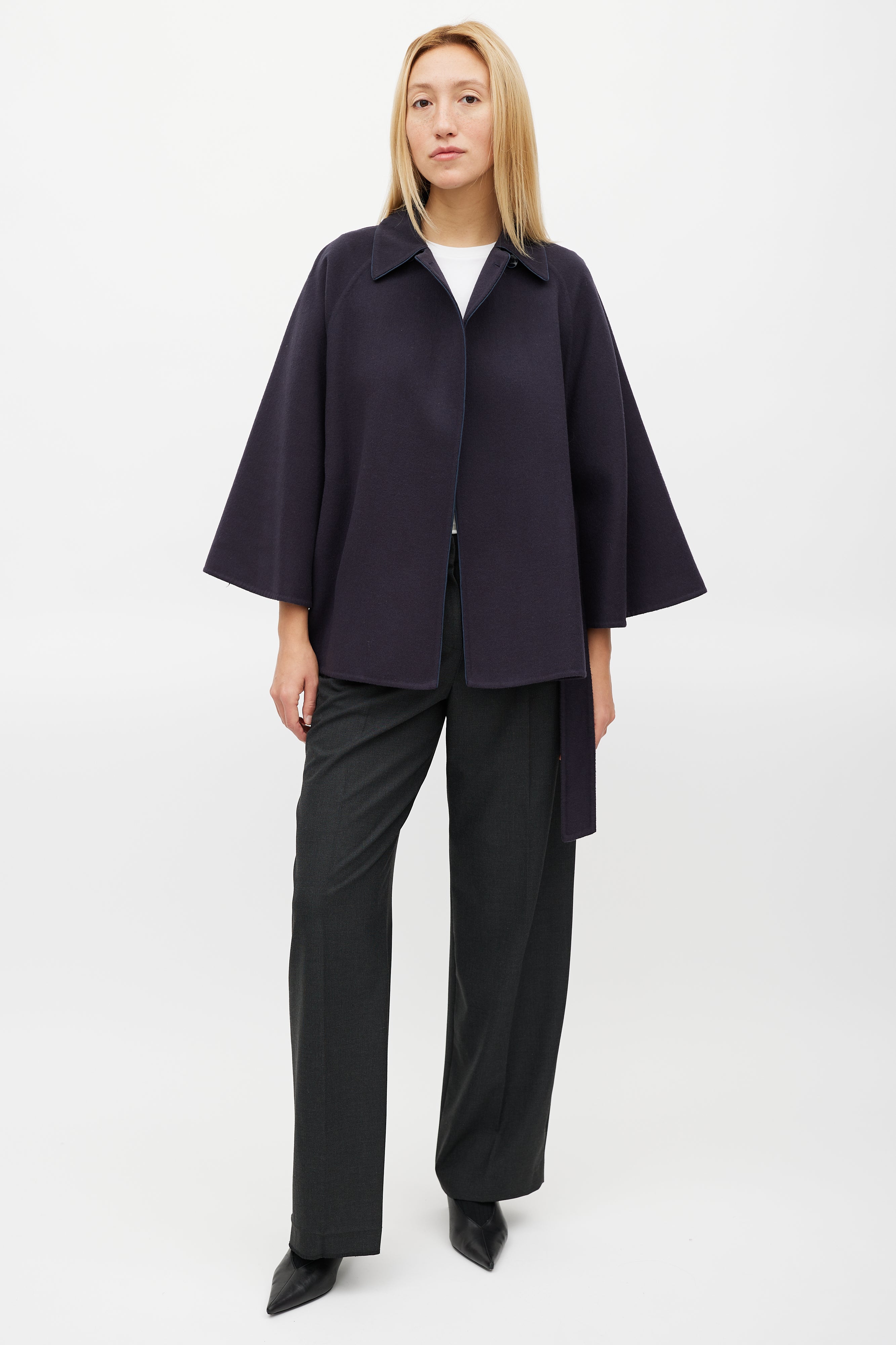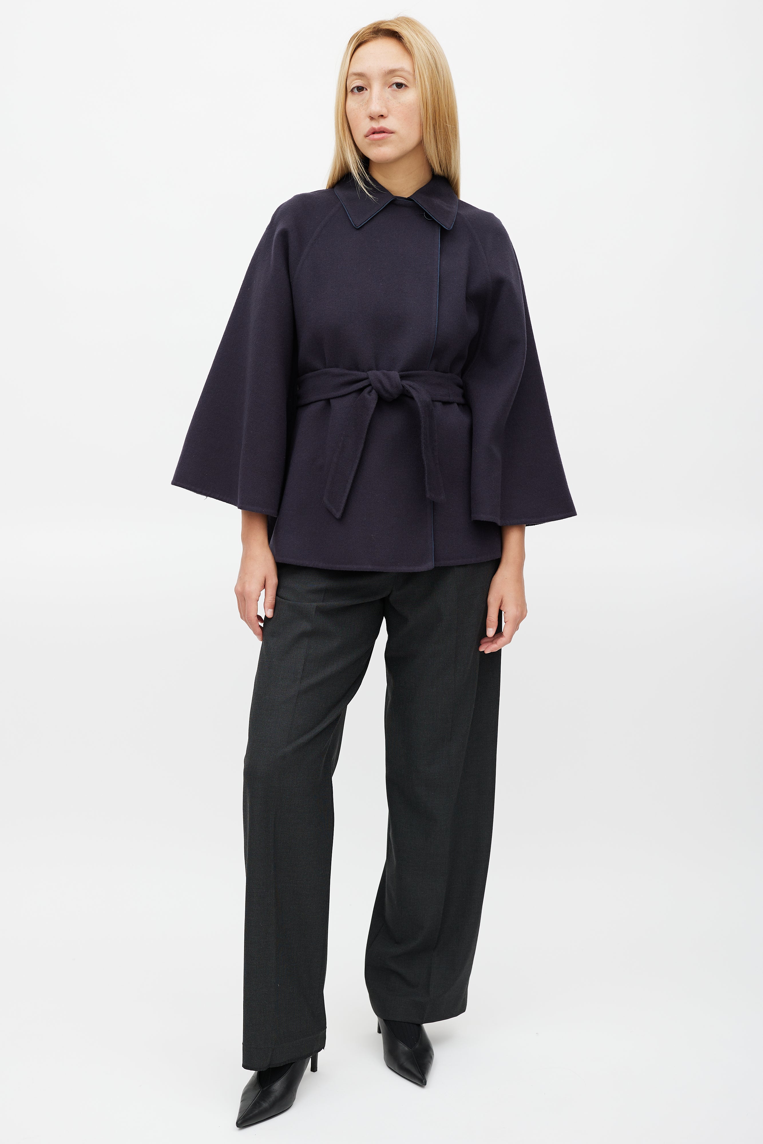 Navy Wool Belted Cape US 4 Size Guide