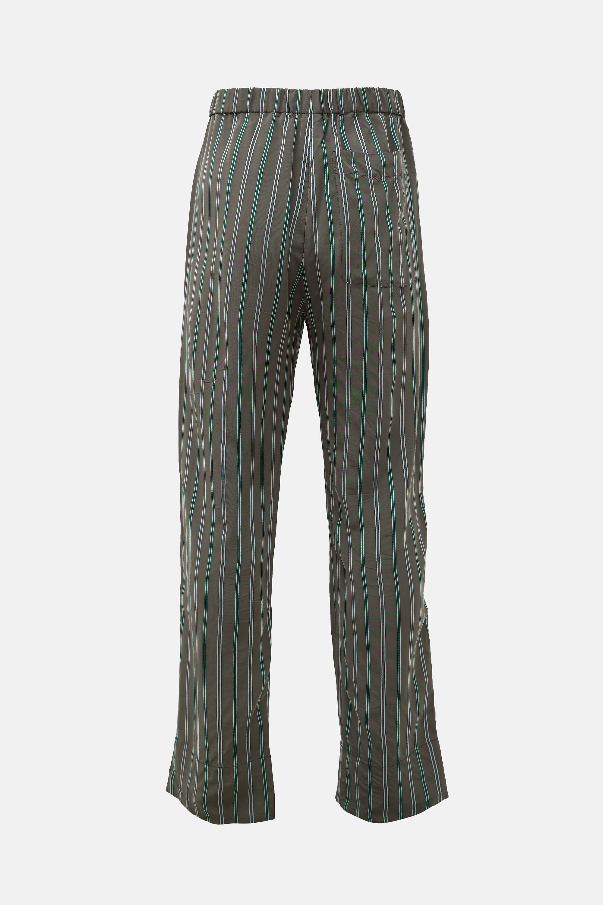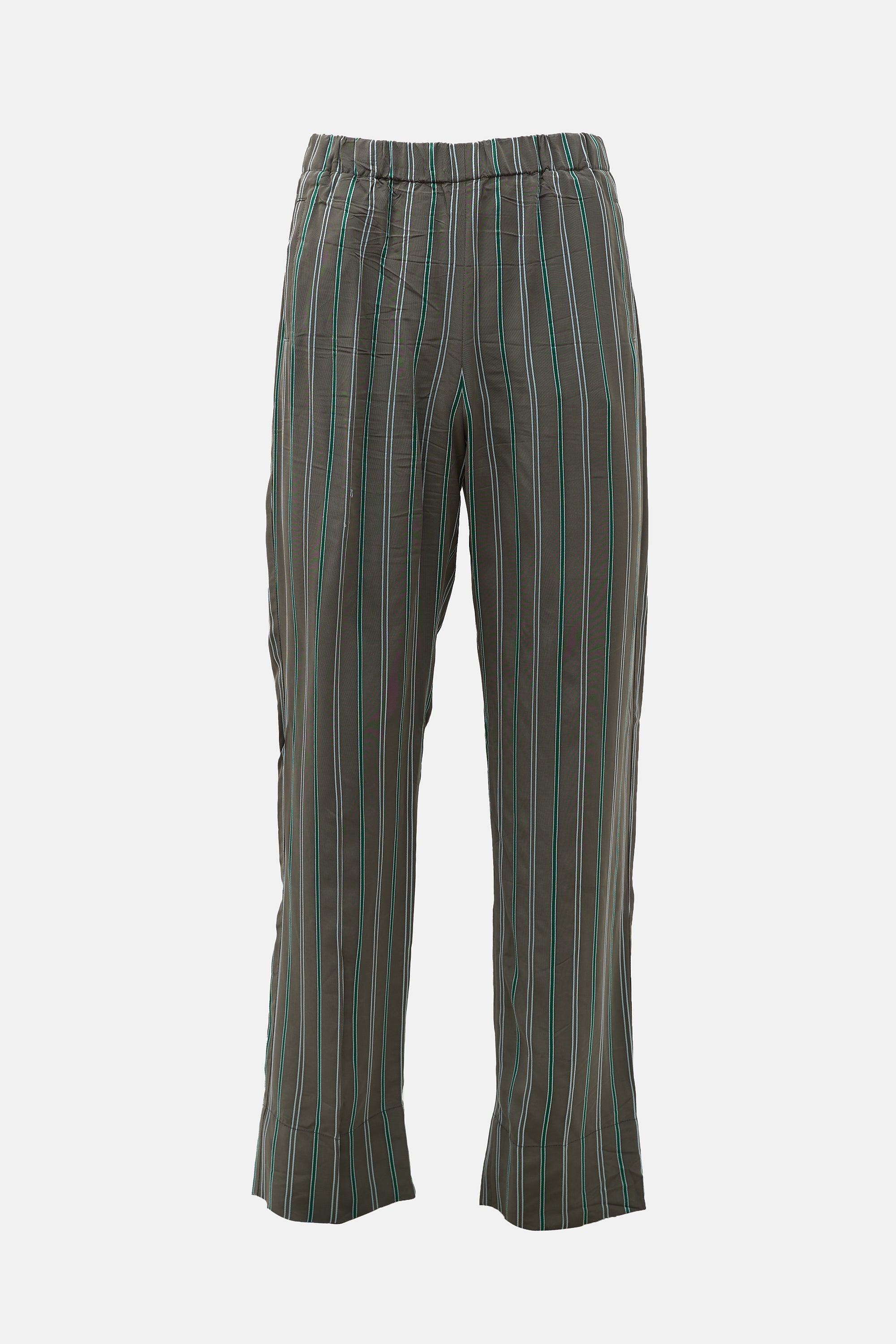 Pre-owned Wales Bonner Fall Winter 2020 grey and green striped Lover's Rock pant featuring a drawstring waist, two slip pockets at hip, one patch pocket at back, and a straight leg.