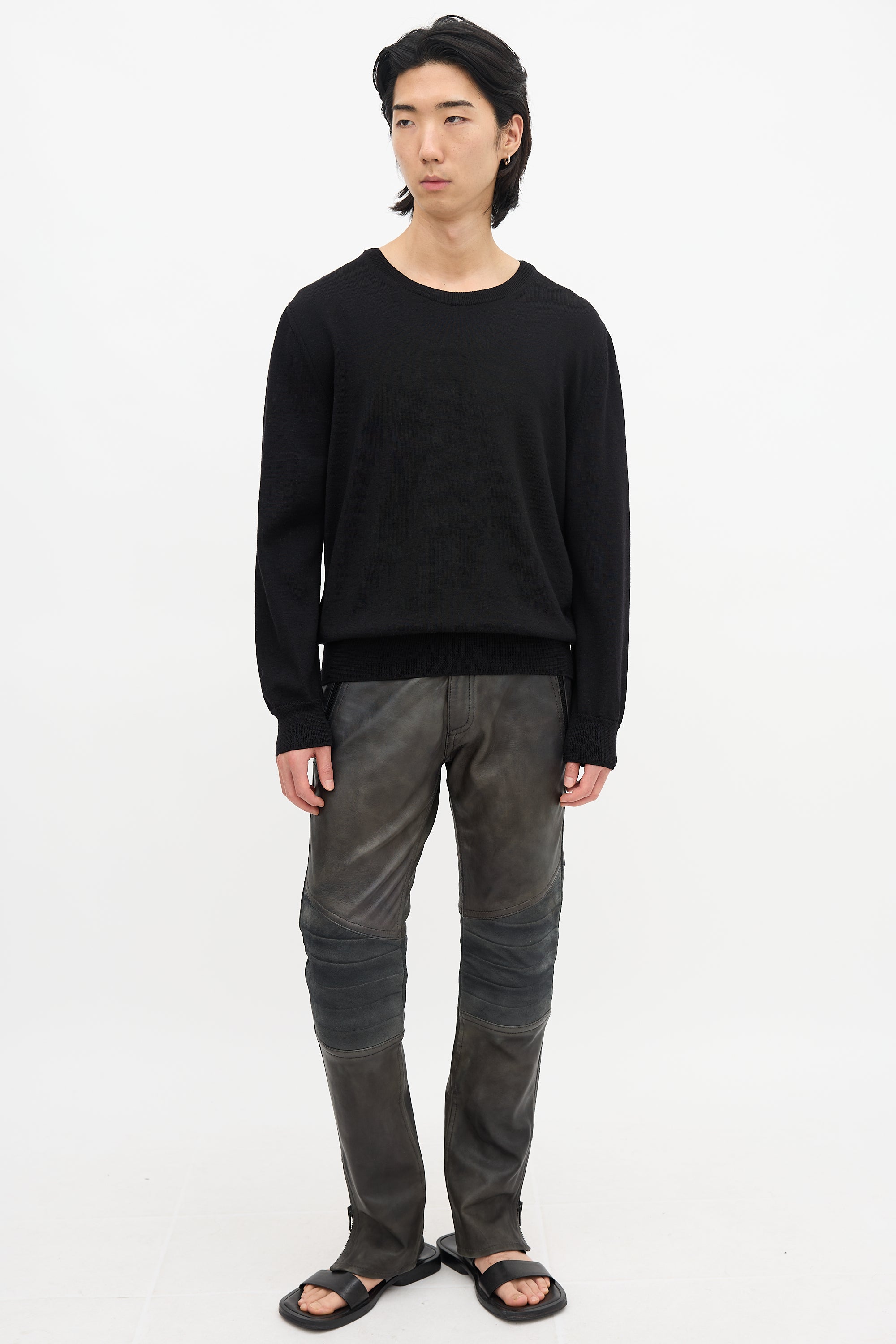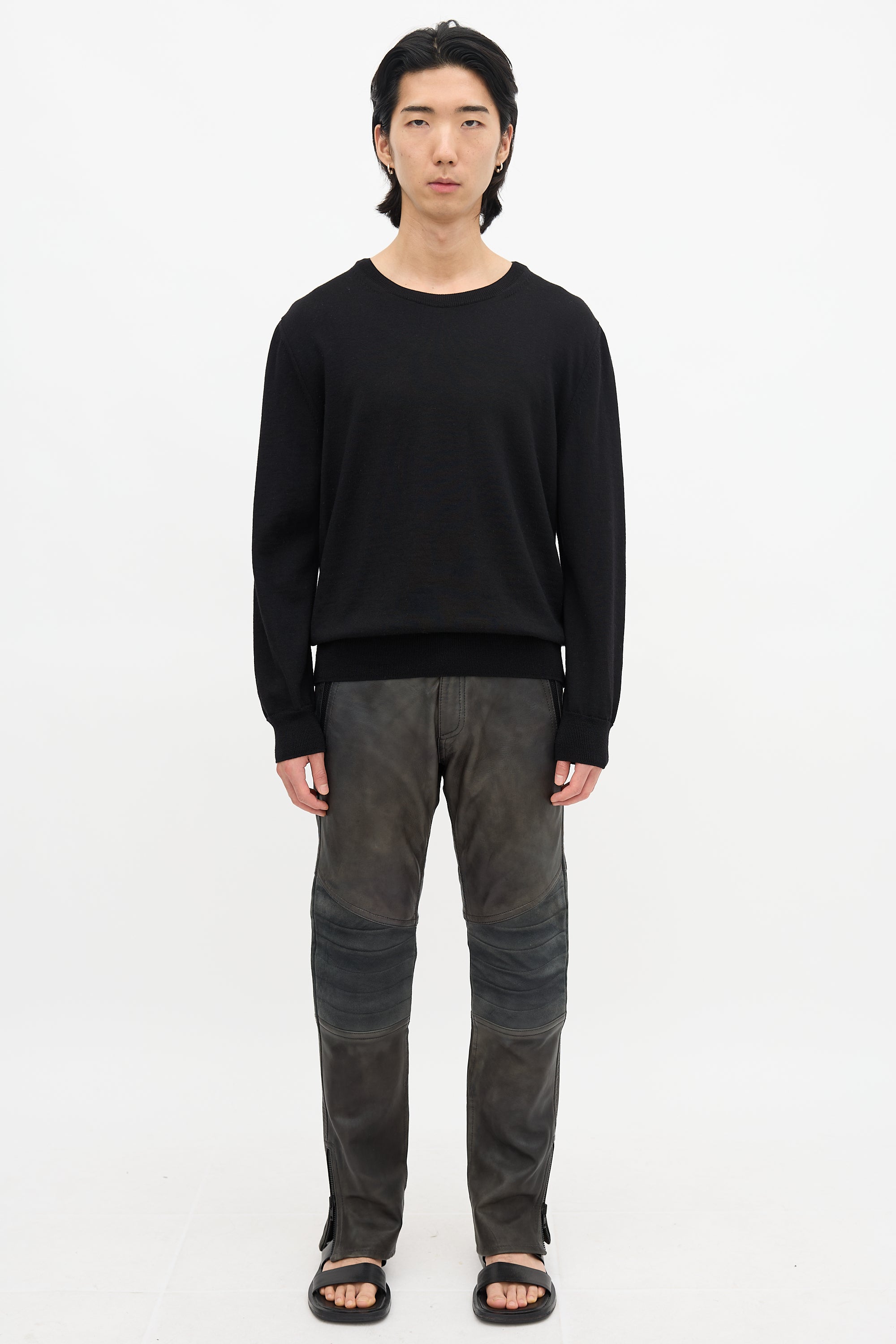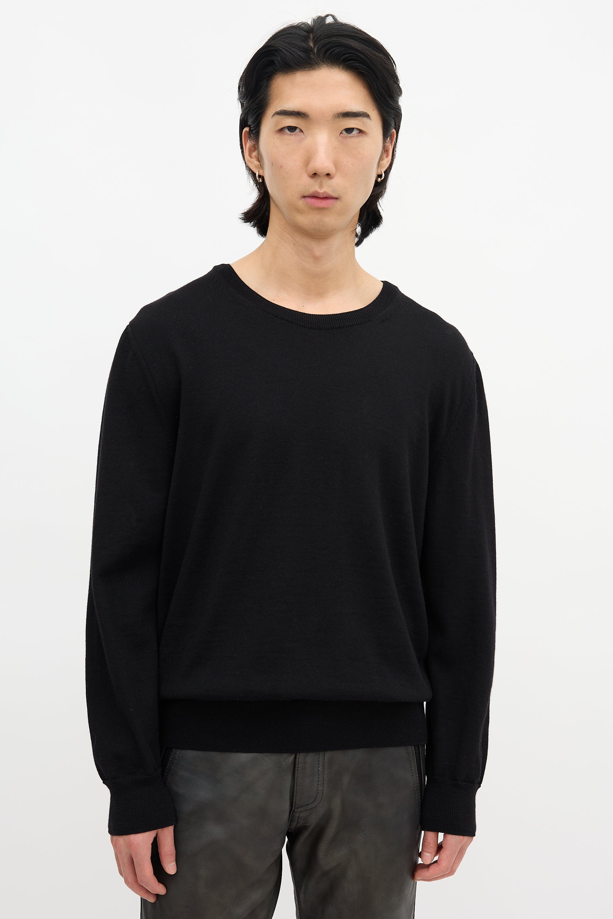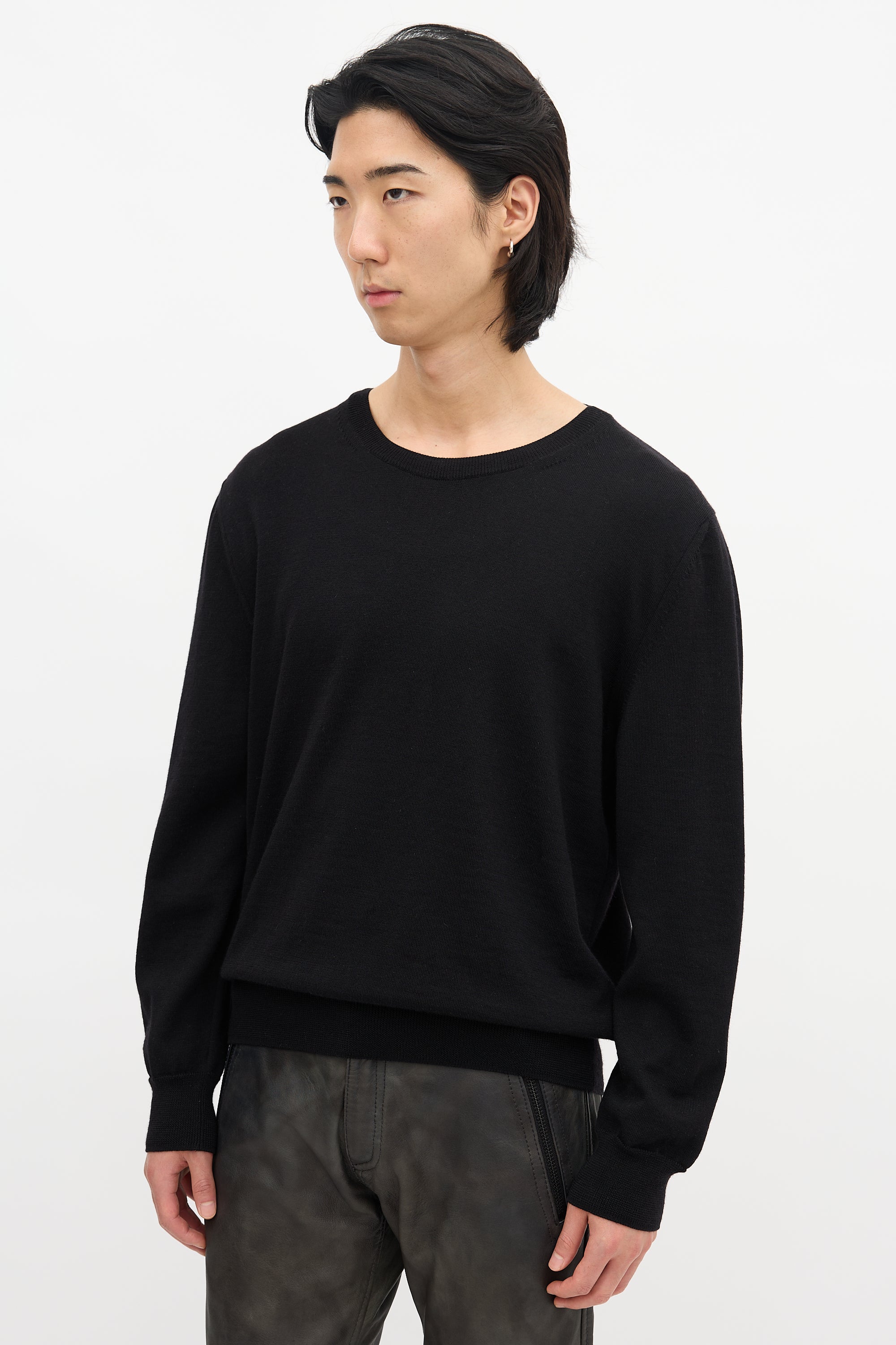 Pre-owned Dries Van Noten black merino wool sweater featuring crew neckline and ribbed hem.