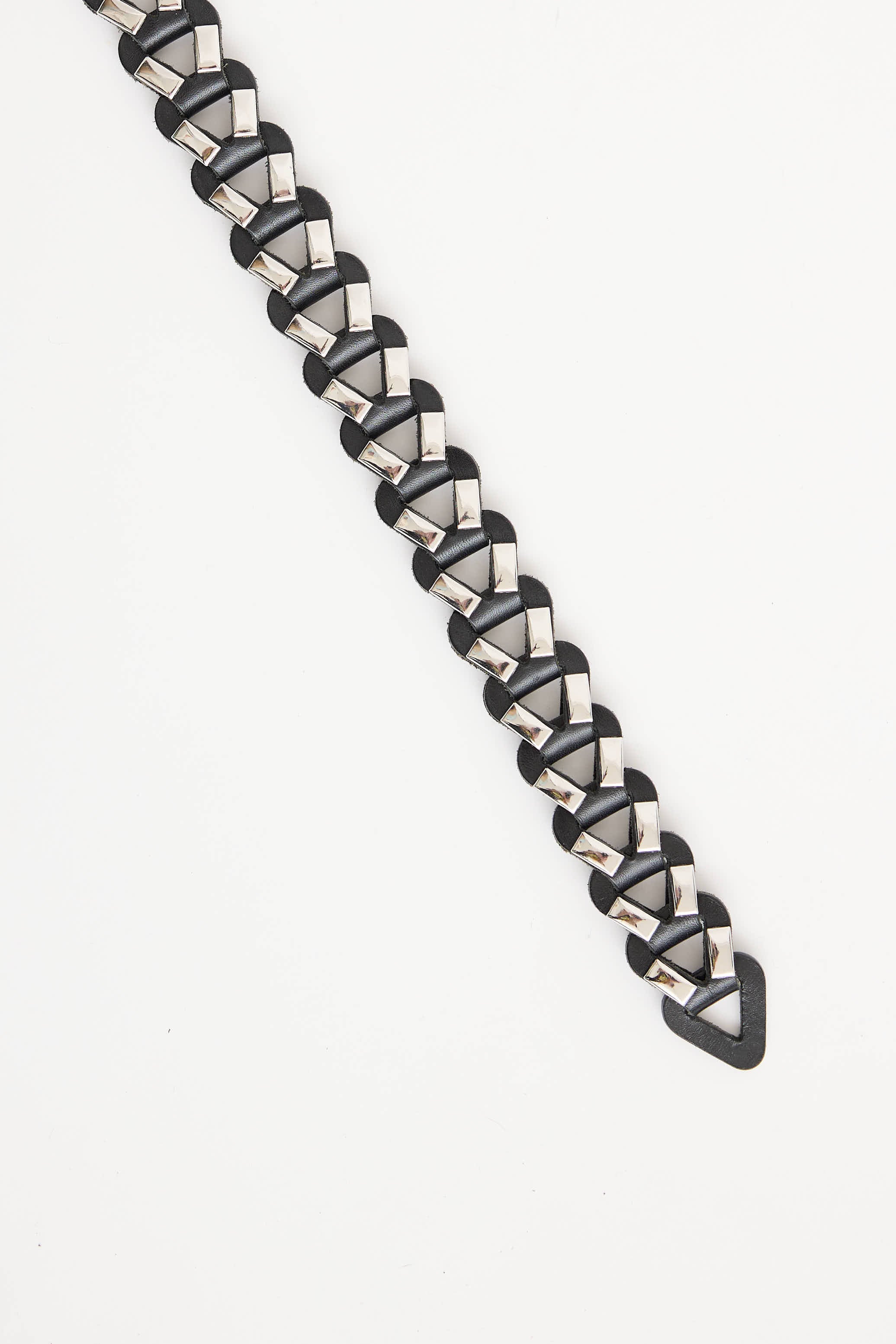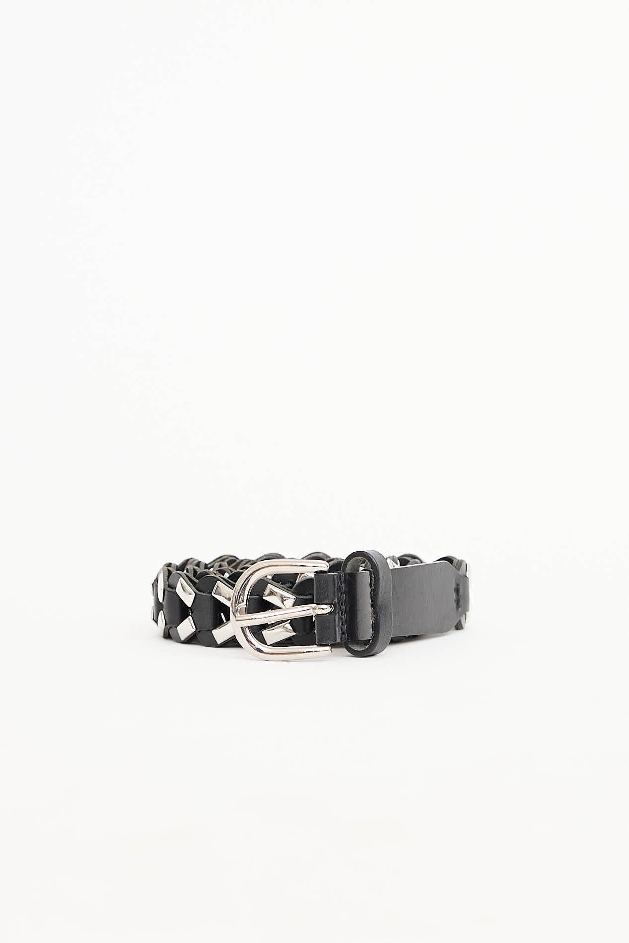 Pre-owned Isabel Marant black studded woven belt featuring silver tone hardware and round buckle.