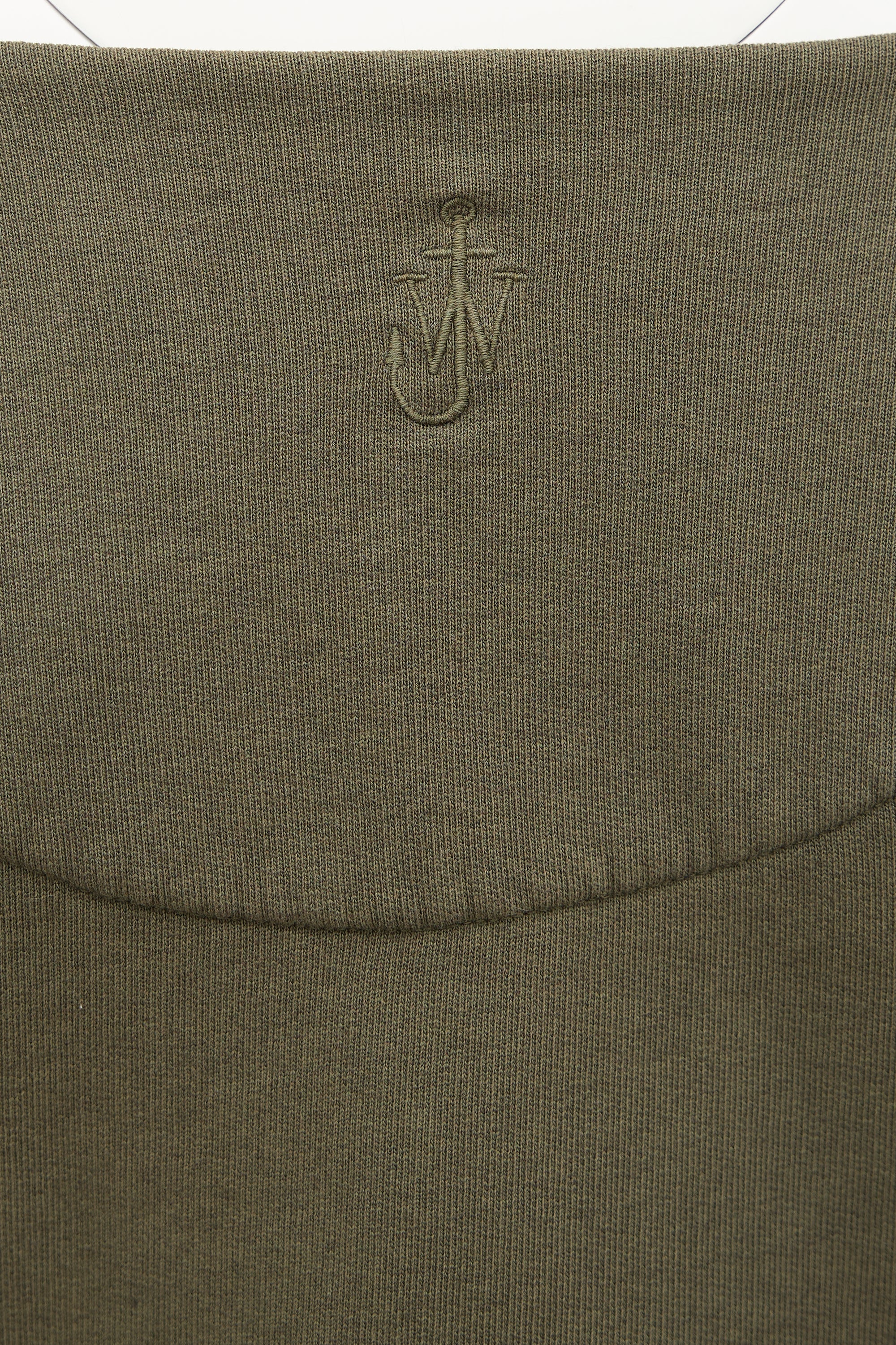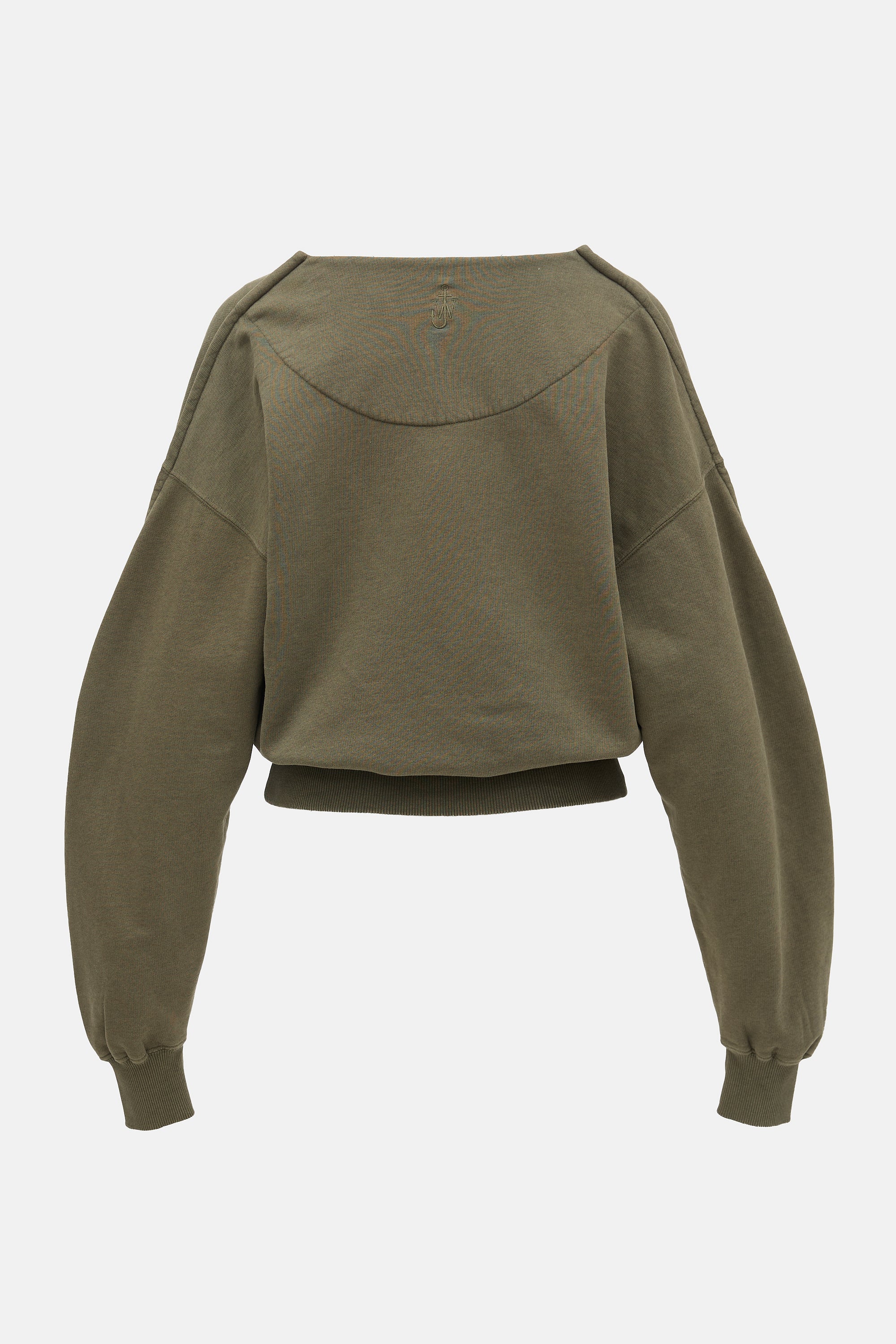 Pre-owned JW Anderson green sweater featuring surplice neckline, wrap front, tonal embroidered logo at upper back, and ribbed hem and cuffs.