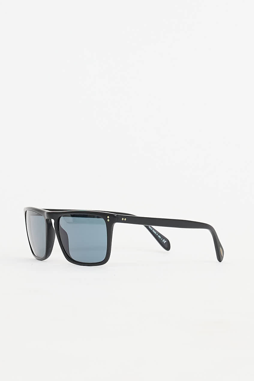 Pre-owned Oliver Peoples black OV 5189-S sunglasses featuring black tinted photochromic lens and matte finish rectangular frames.