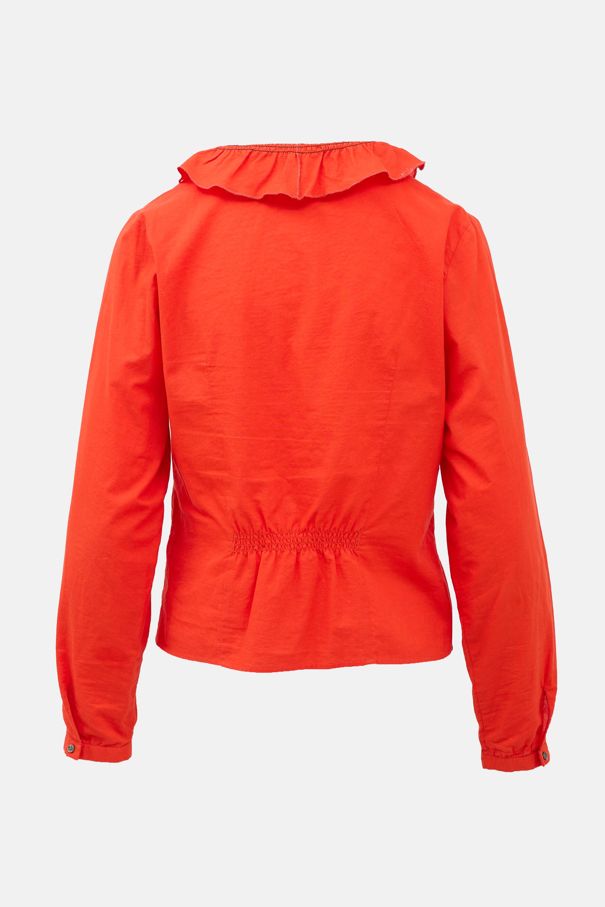 Pre-owned Our Legacy orange shirt featuring ruffled front, snap hook closure, and snap buttoned cuffs.