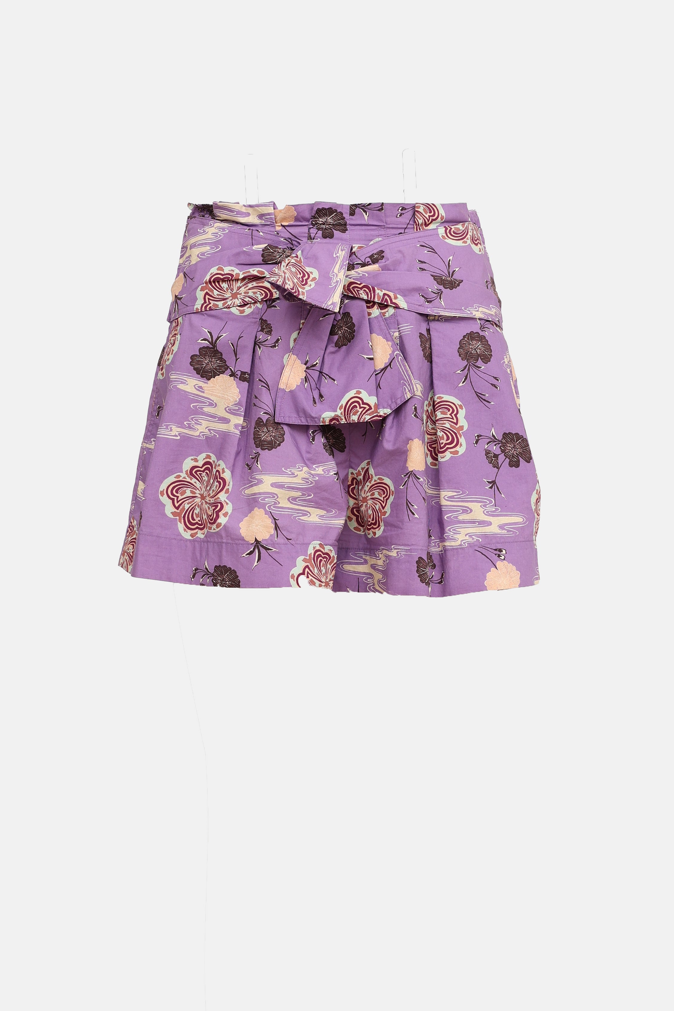 Pre-owned Ulla Johnson purple and multicolor floral shorts featuring pleated tie waist, concealed zip at side, and slip pockets at hip.