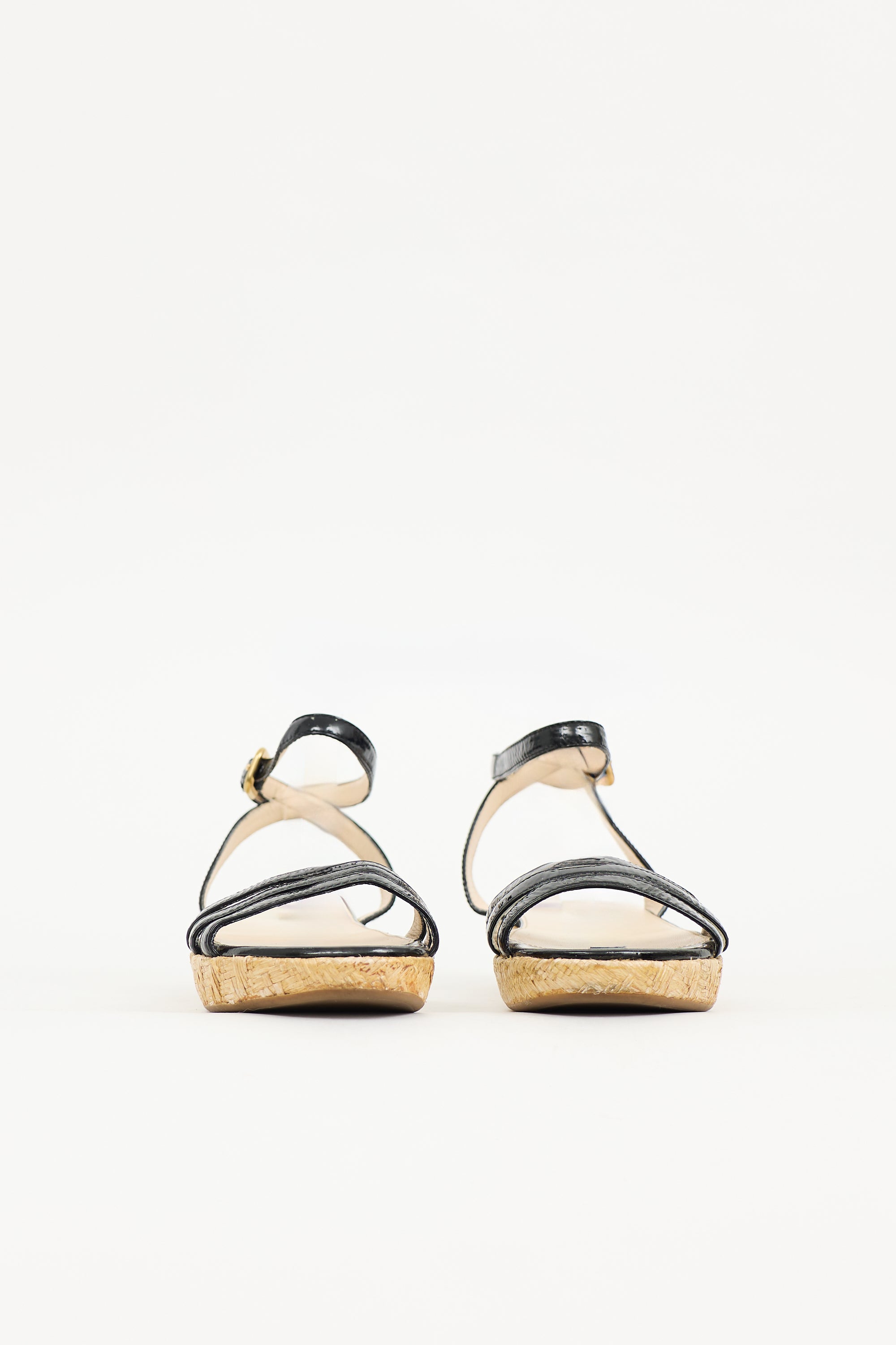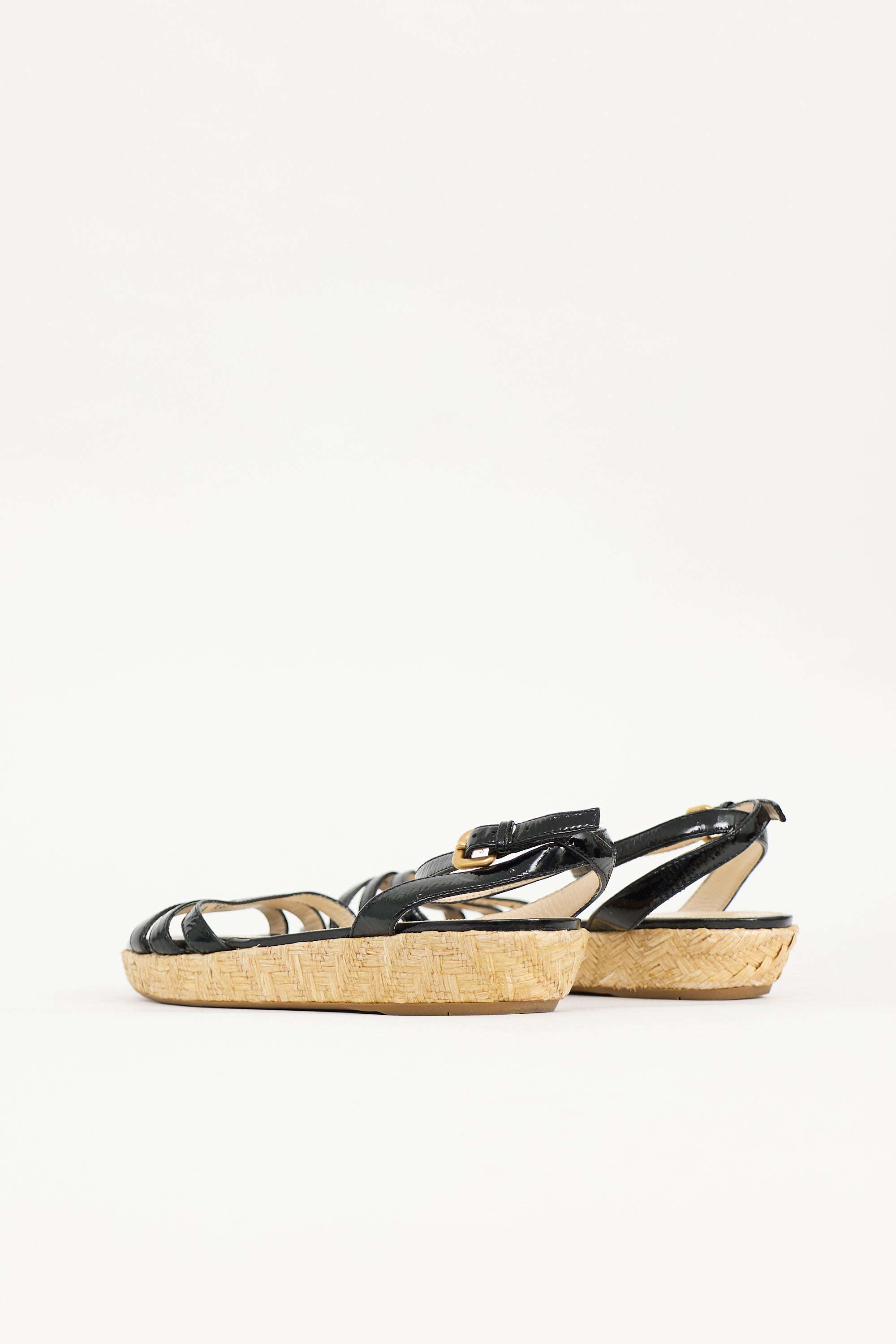 Prada Patent Leather & Straw Sandal IT 39.5