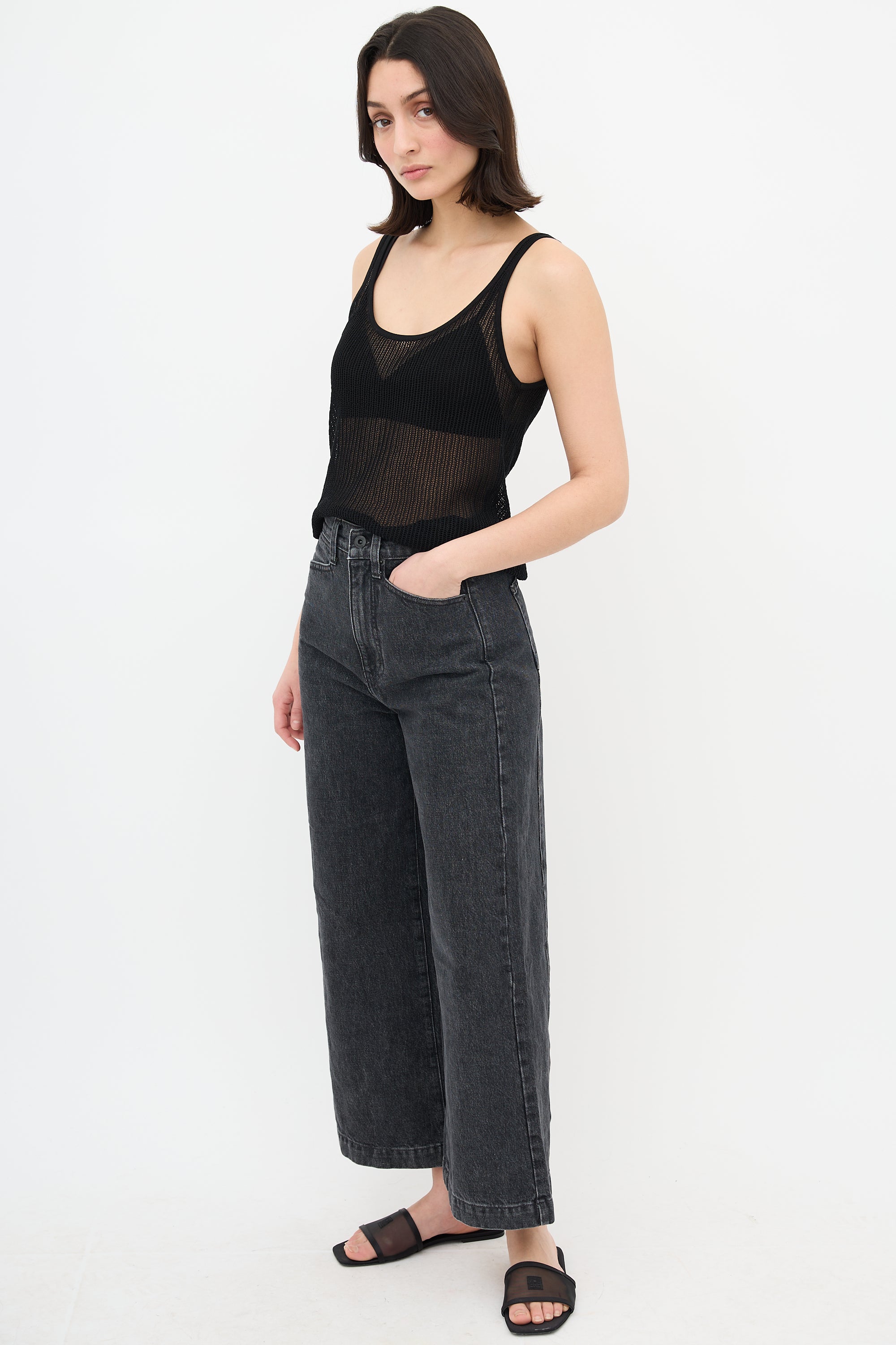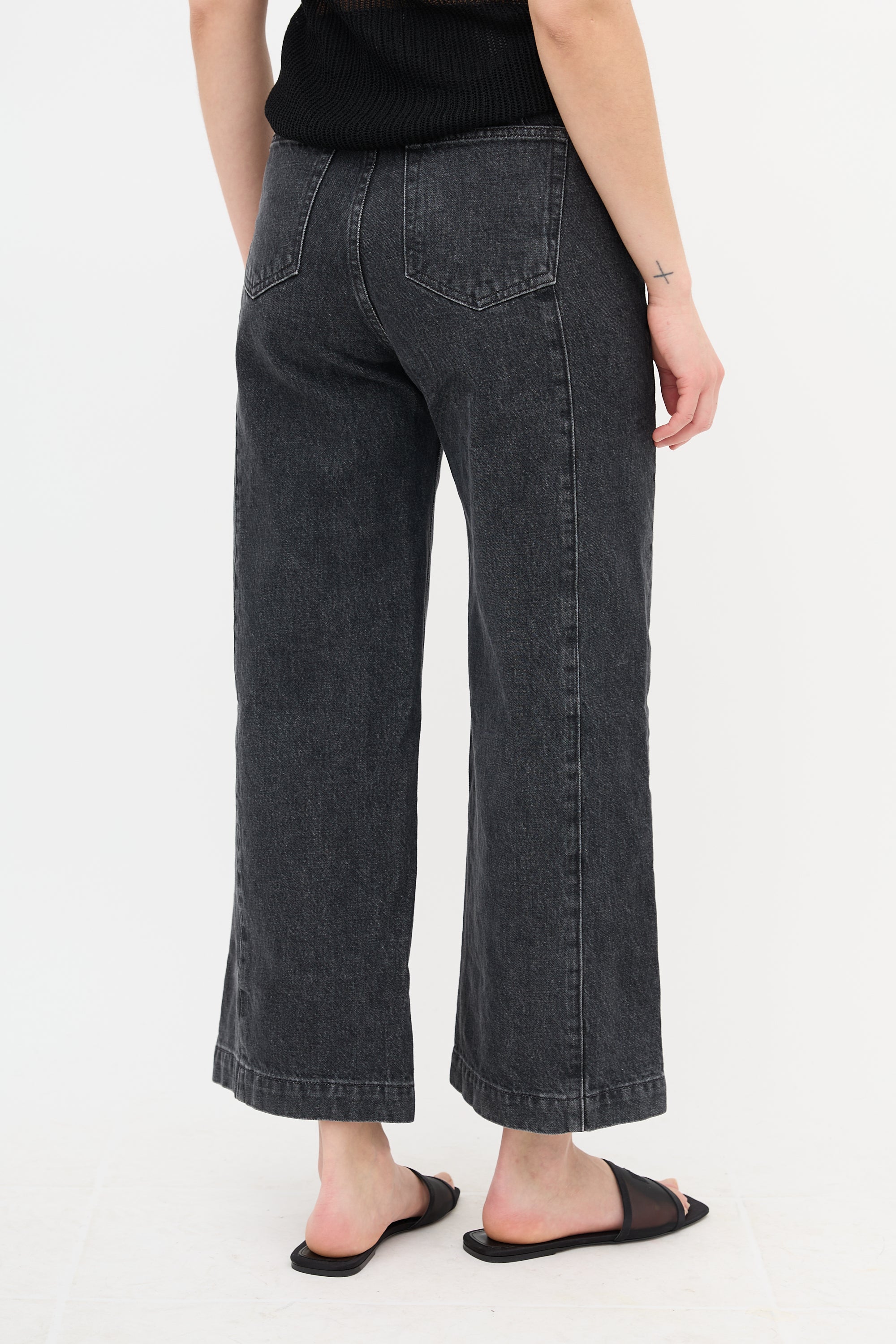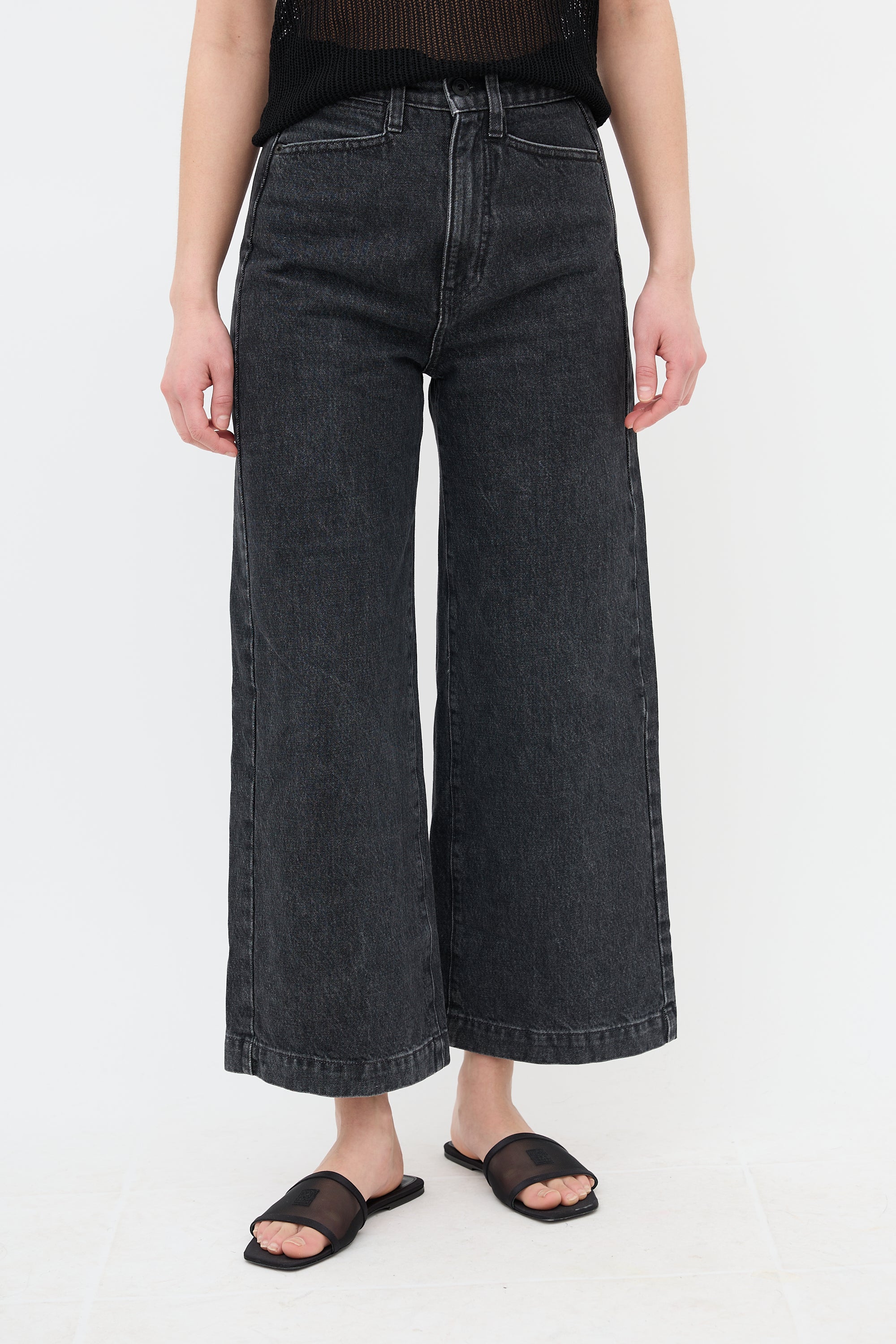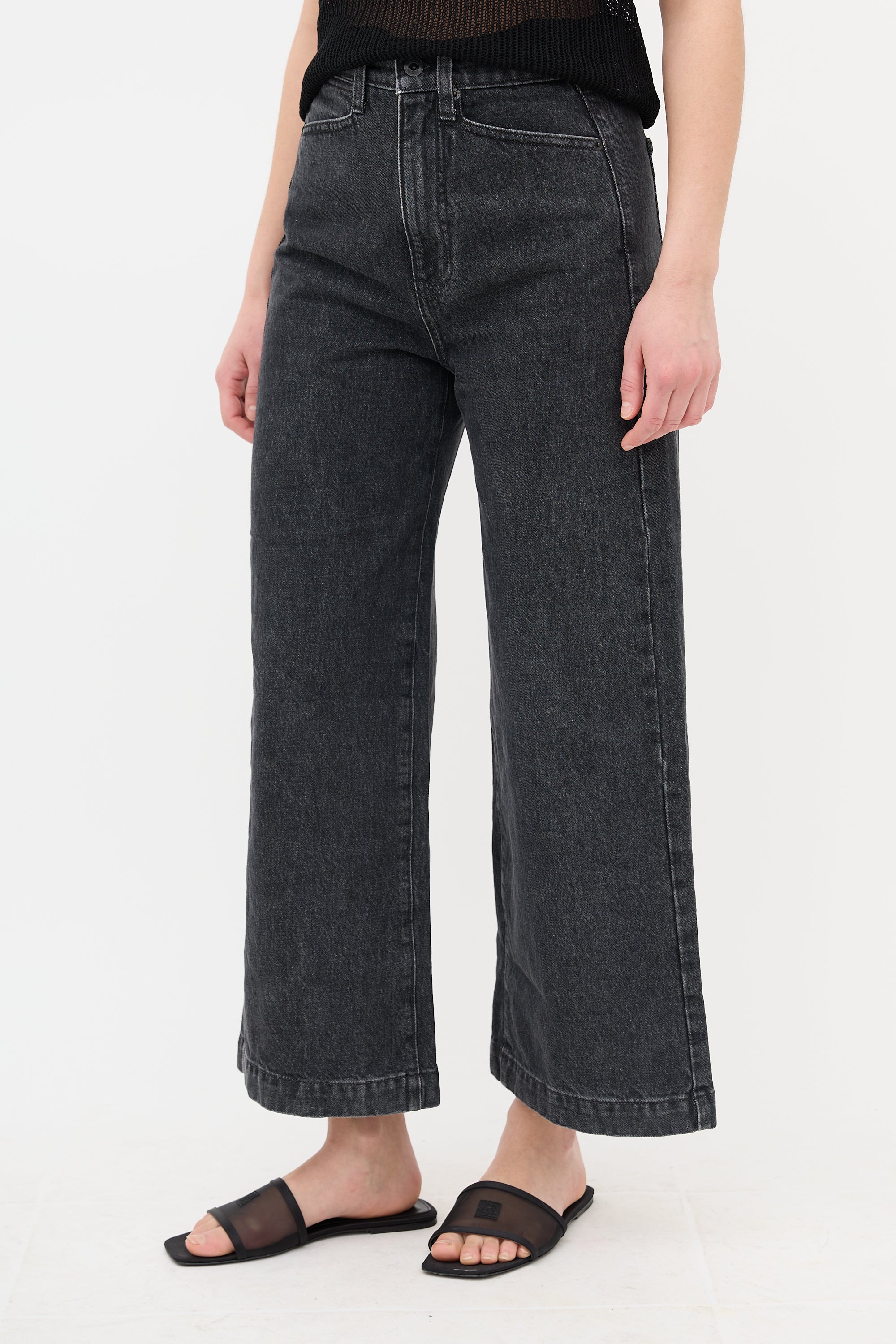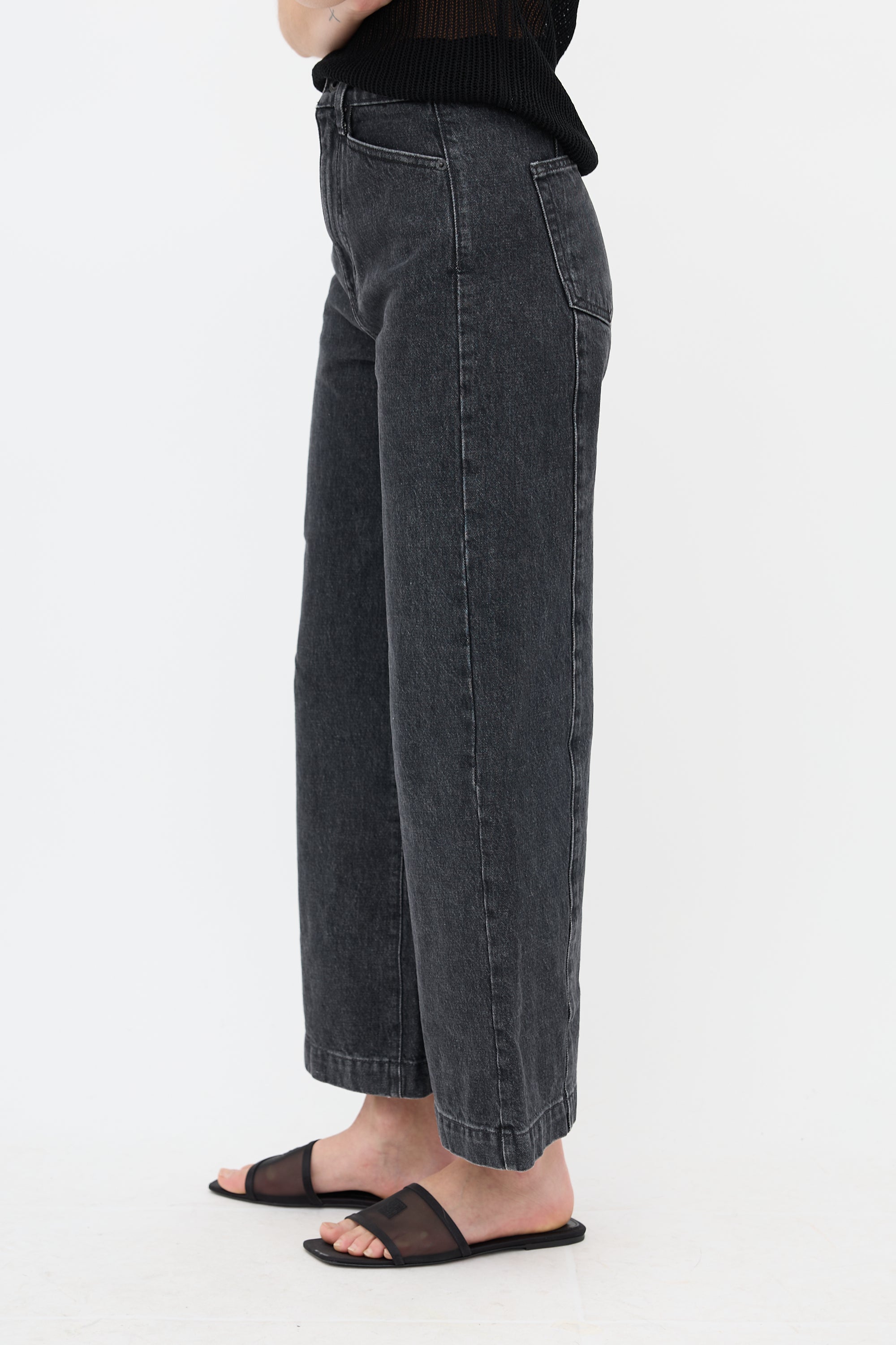 Pre-owned Proenza Schouler washed black Wide Leg Crop jeans featuring four pocket styling, belt loops, zip fly with button closure, and a jacron patch at waist.