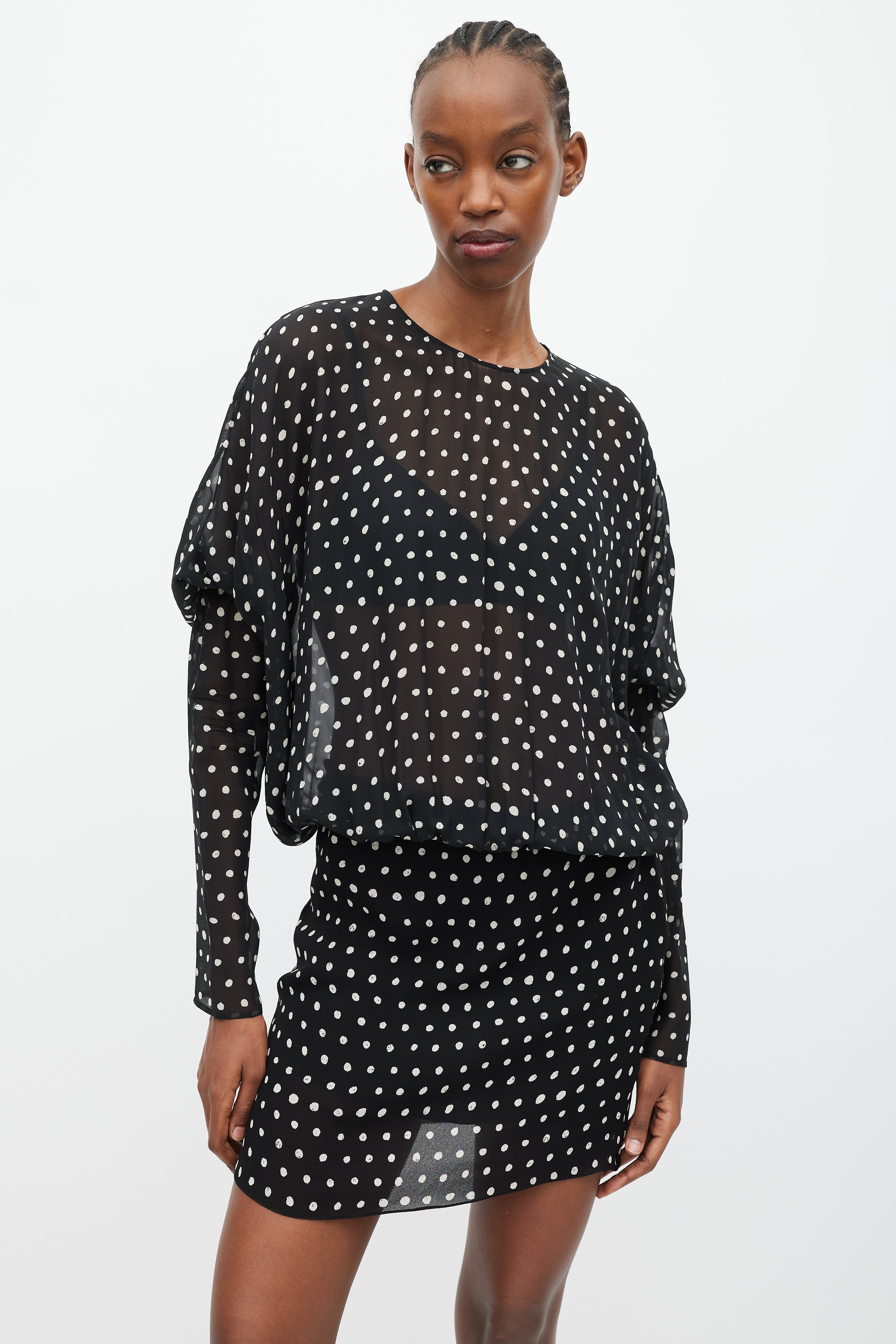 Black & White Silk Sheer Polka Dot Dress FR 36 Size Guide