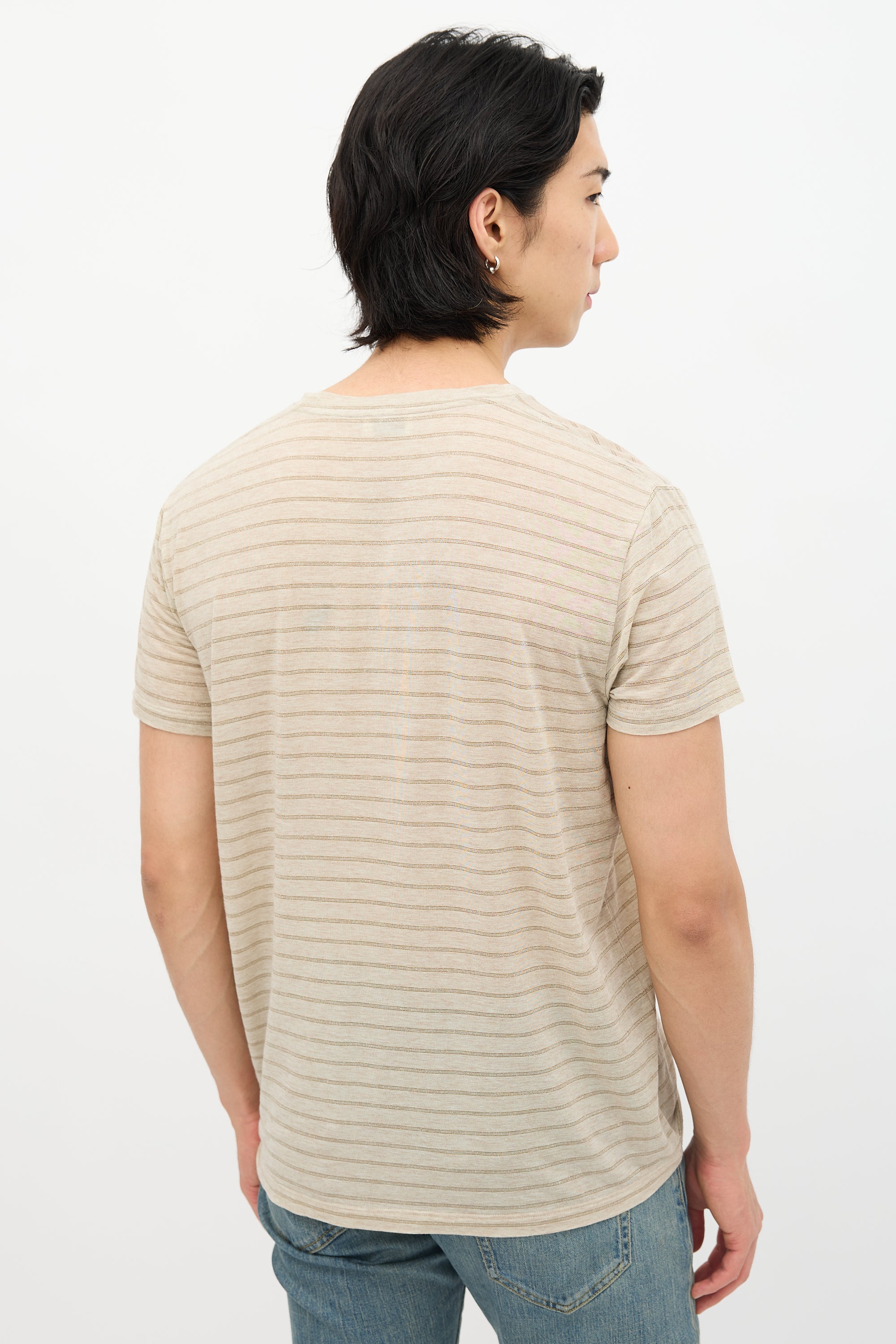 Pre-owned Saint Laurent beige melange T-shirt featuring round neckline and sparkly horizontal stripes.