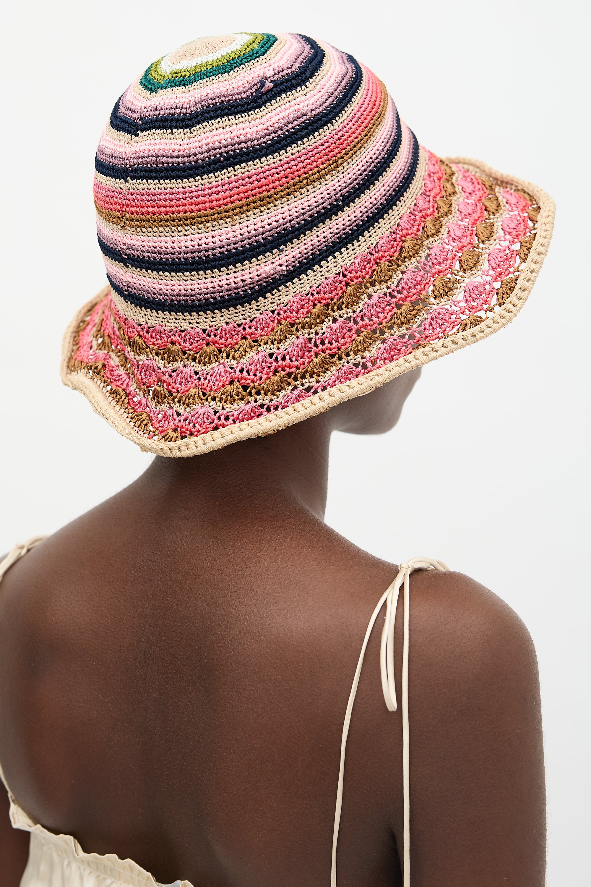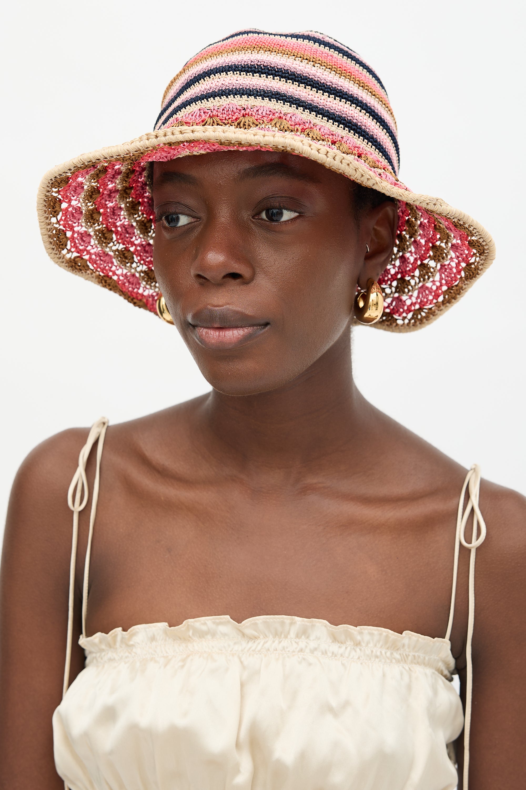 Pre-owned Missoni pink and multicolour striped crochet bucket hat featuring a wired brim and unstructured crown.