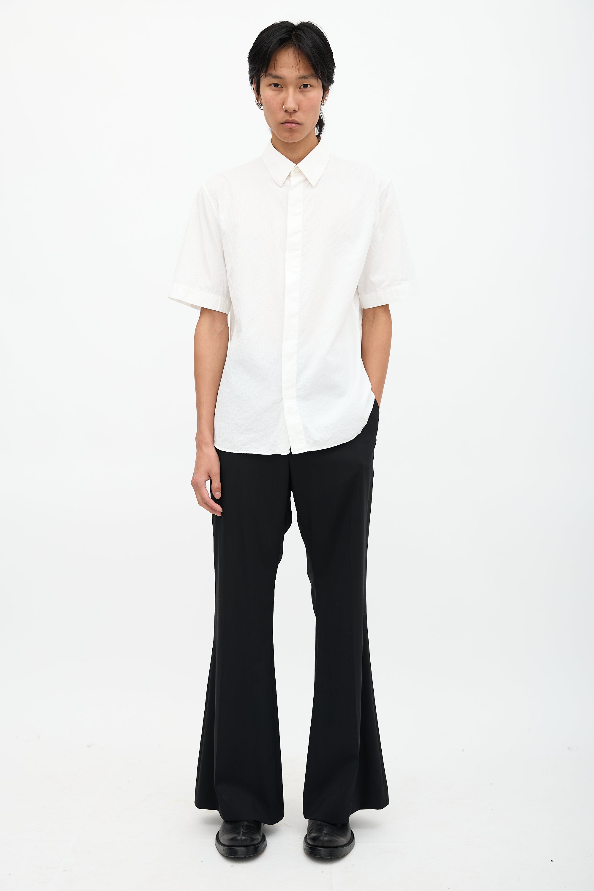 Pre-owned Dior white shirt featuring tonal Oblique jacquard, straight collar, and concealed button up front.
