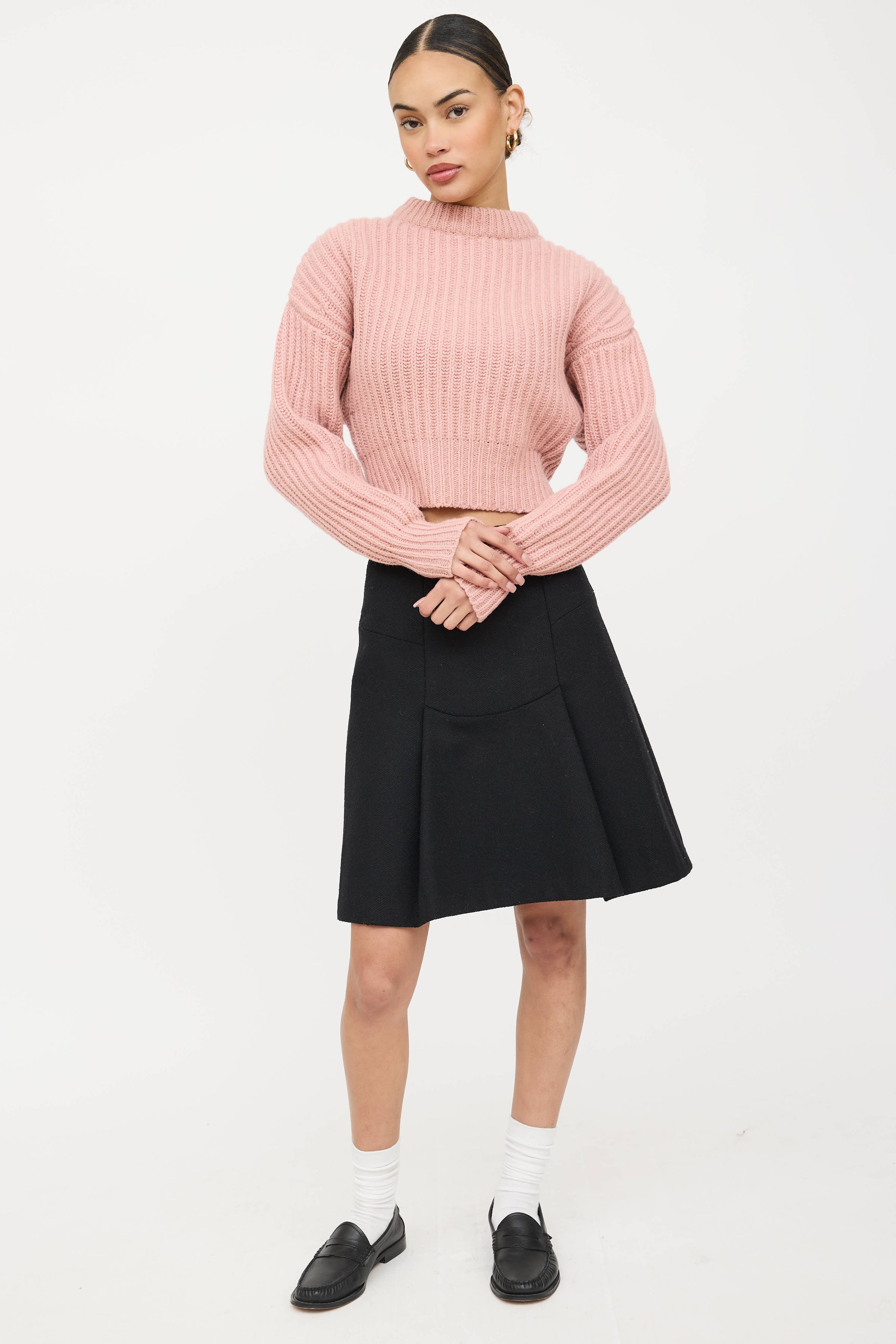 Pre-owned Lee Matthews pink wool knit sweater featuring a crew neckline, long sleeves, and ribbed hem.