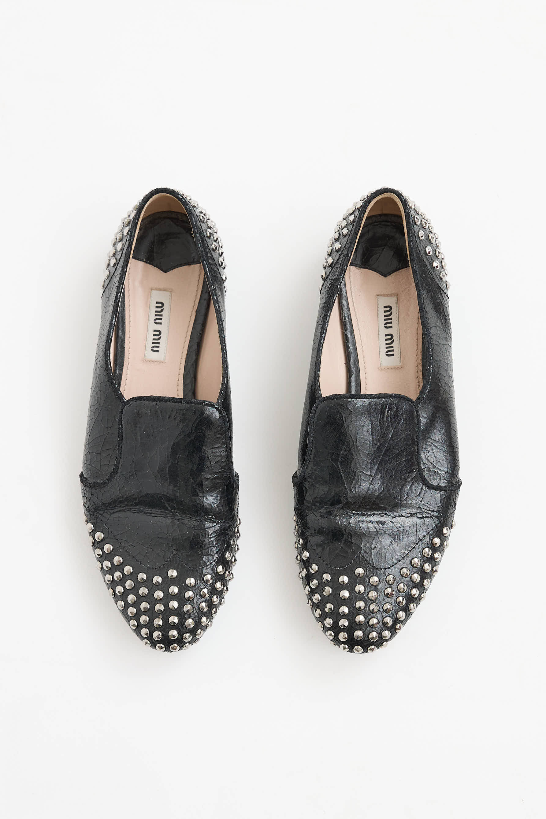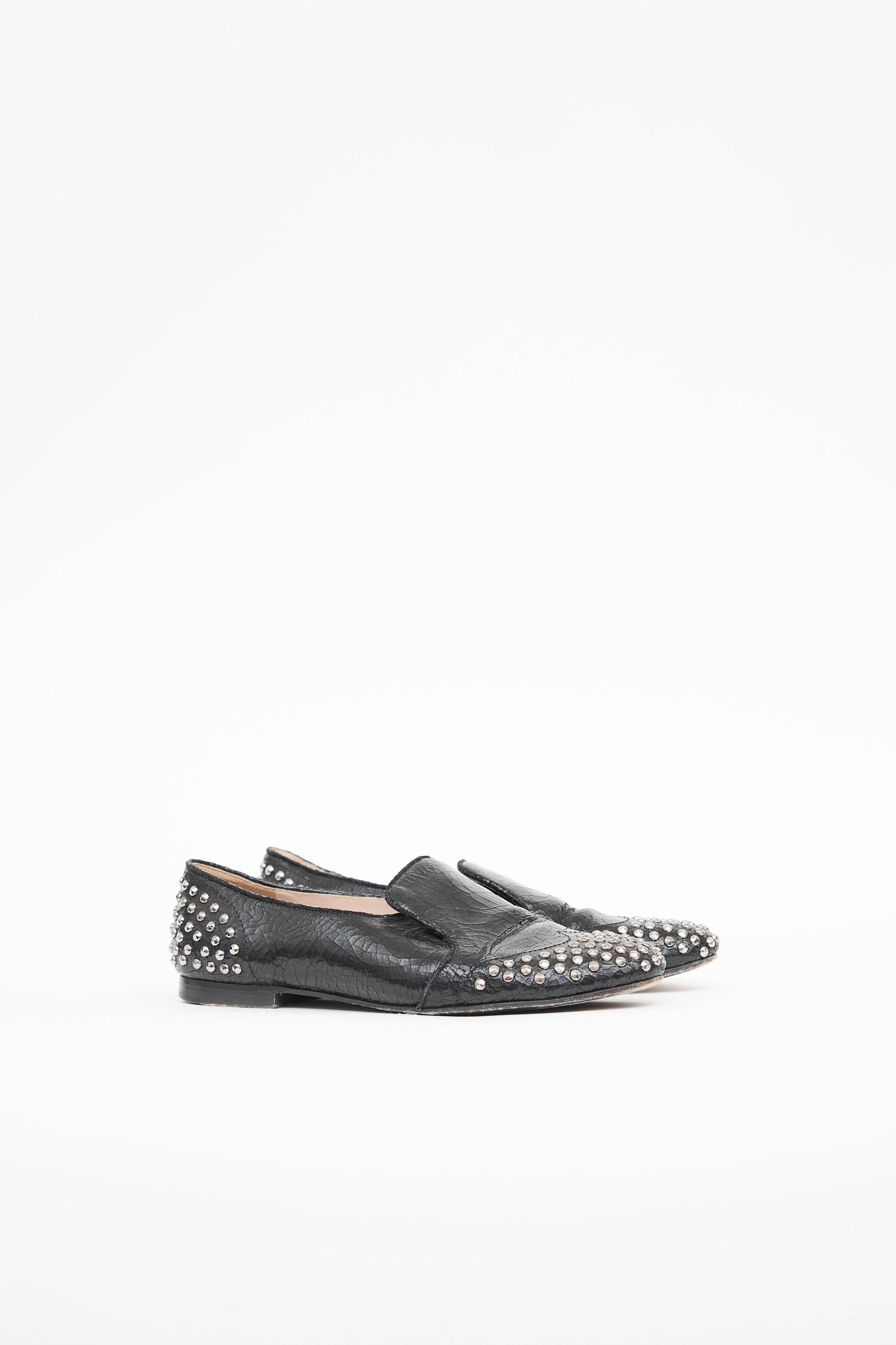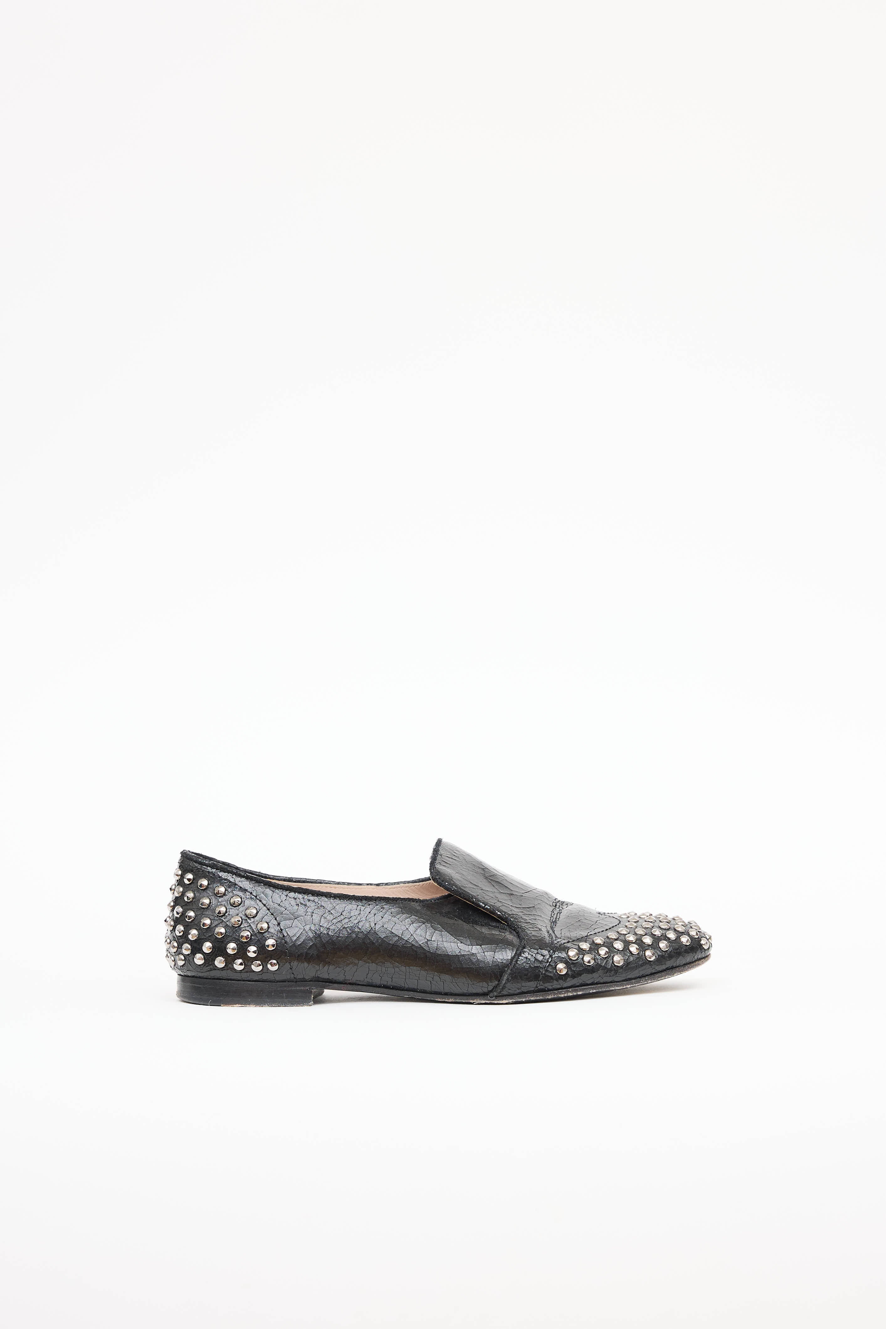 Miu Miu Cracked Leather Studded Loafer IT 37.5