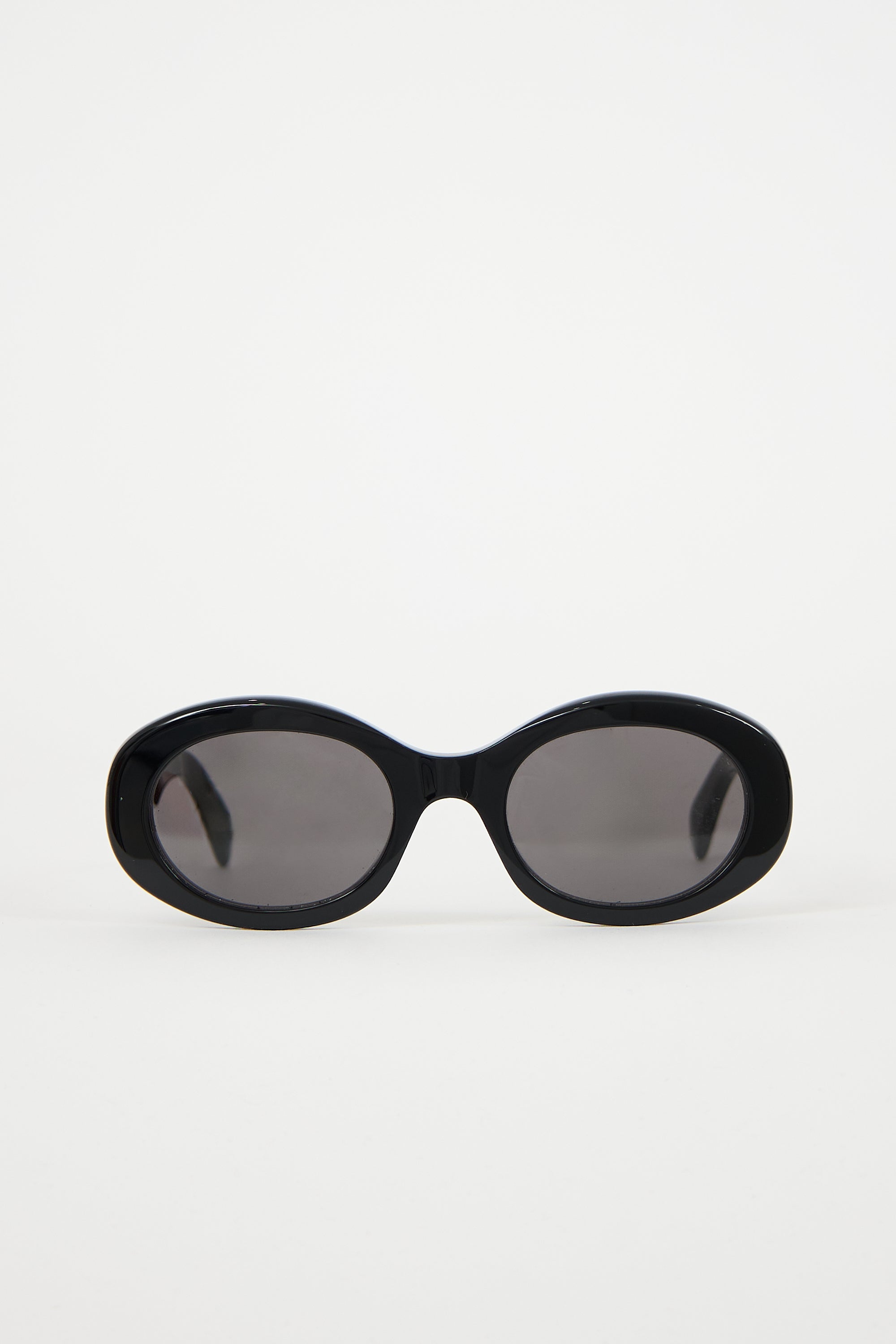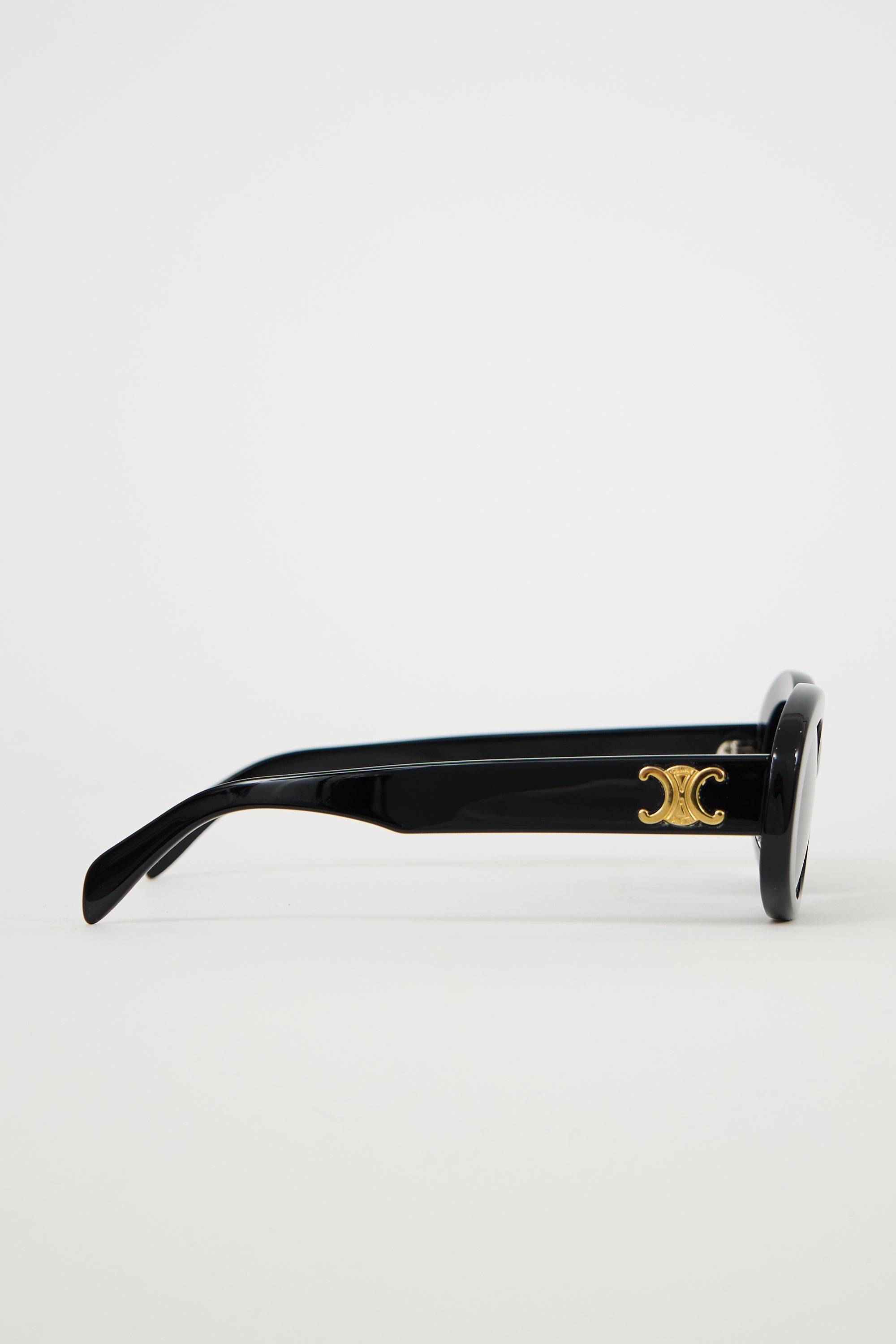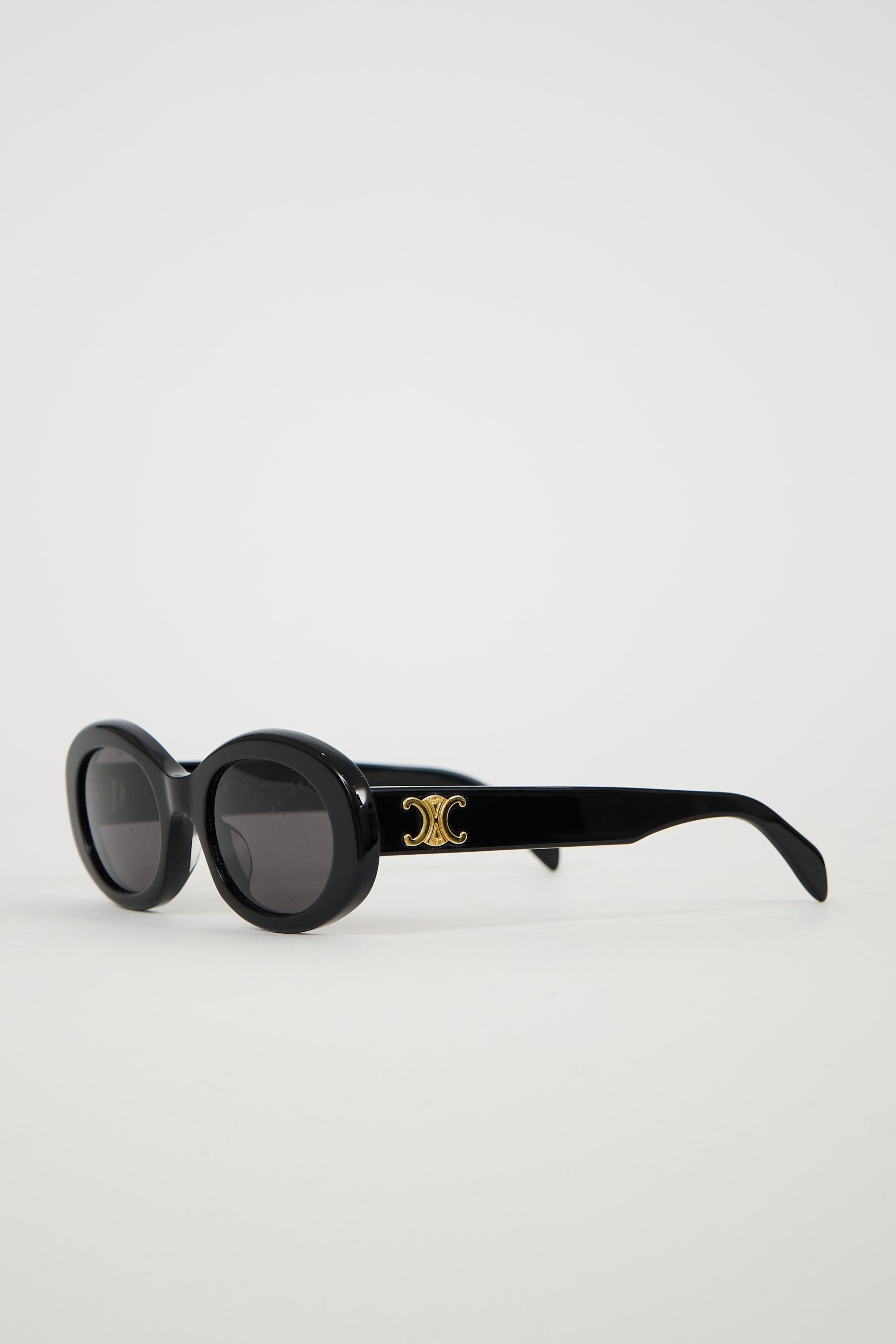 Pre-owned Celine CL40194U sunglasses featuring grey tinted lenses, black oval frame and gold tone Triomphe accent at temples. Comes with original case and wipe cloth.
